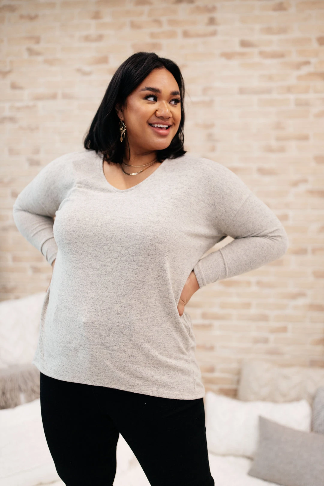 The Let It Be Top is prepared for just about anything! This marled, lightweight knit top has a v-neckline, drop shoulder sleeve, and a relaxed, wide-cut bodice with a rounded hem. Pair with cropped denim and your favorite sneakers for a chic and minimalist look!