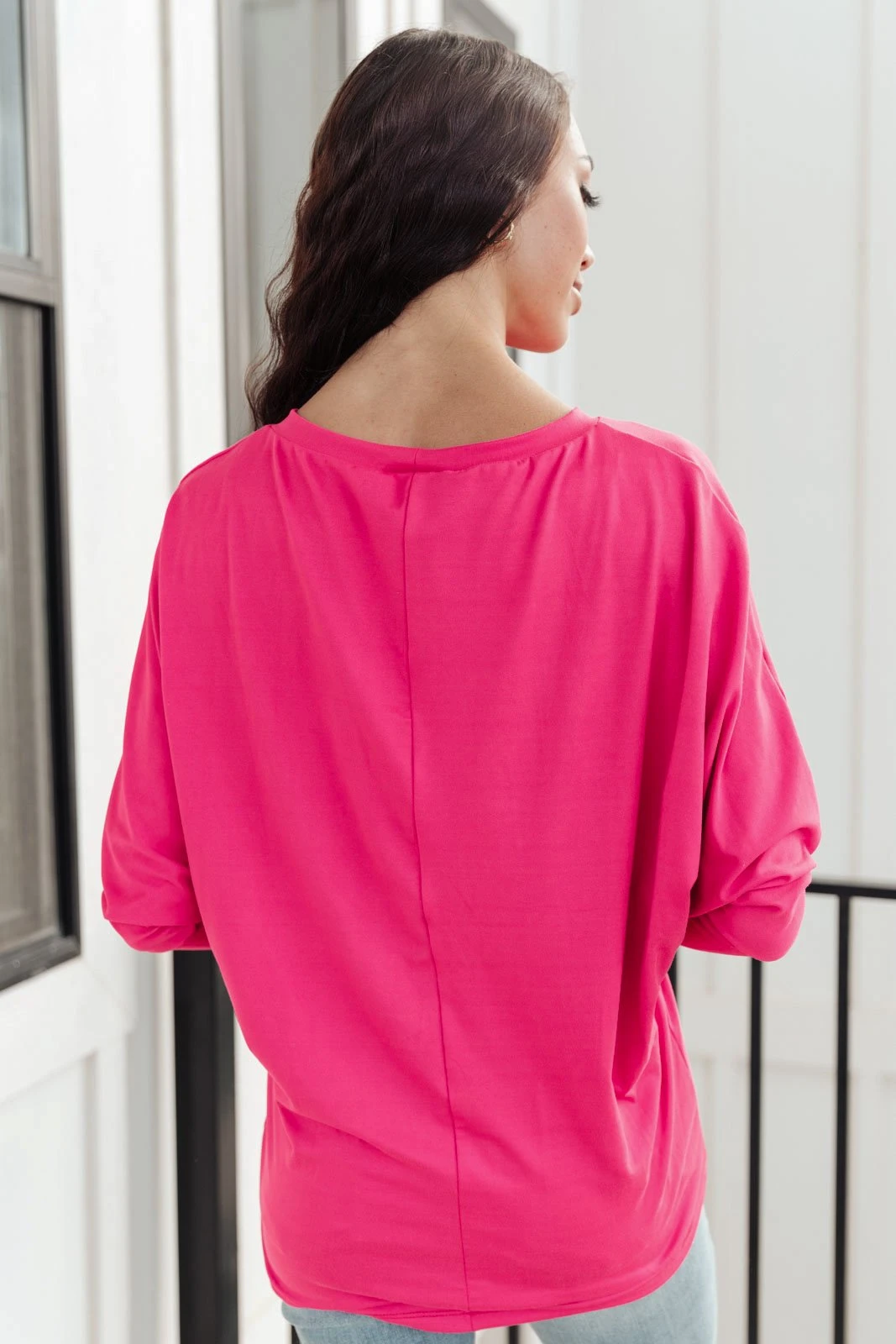 Keywords: Hot Pink Top, Long Sleeve, V neck
