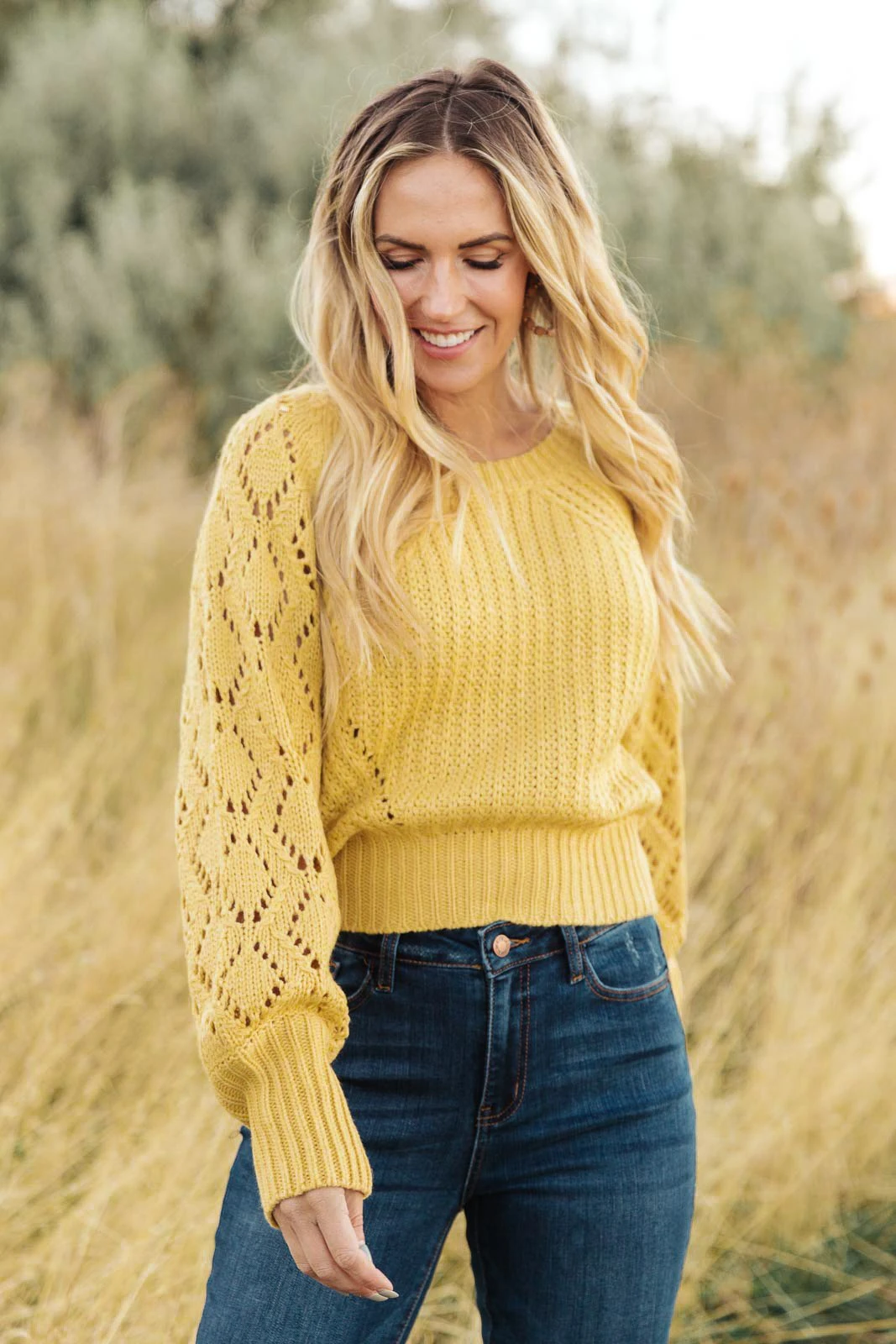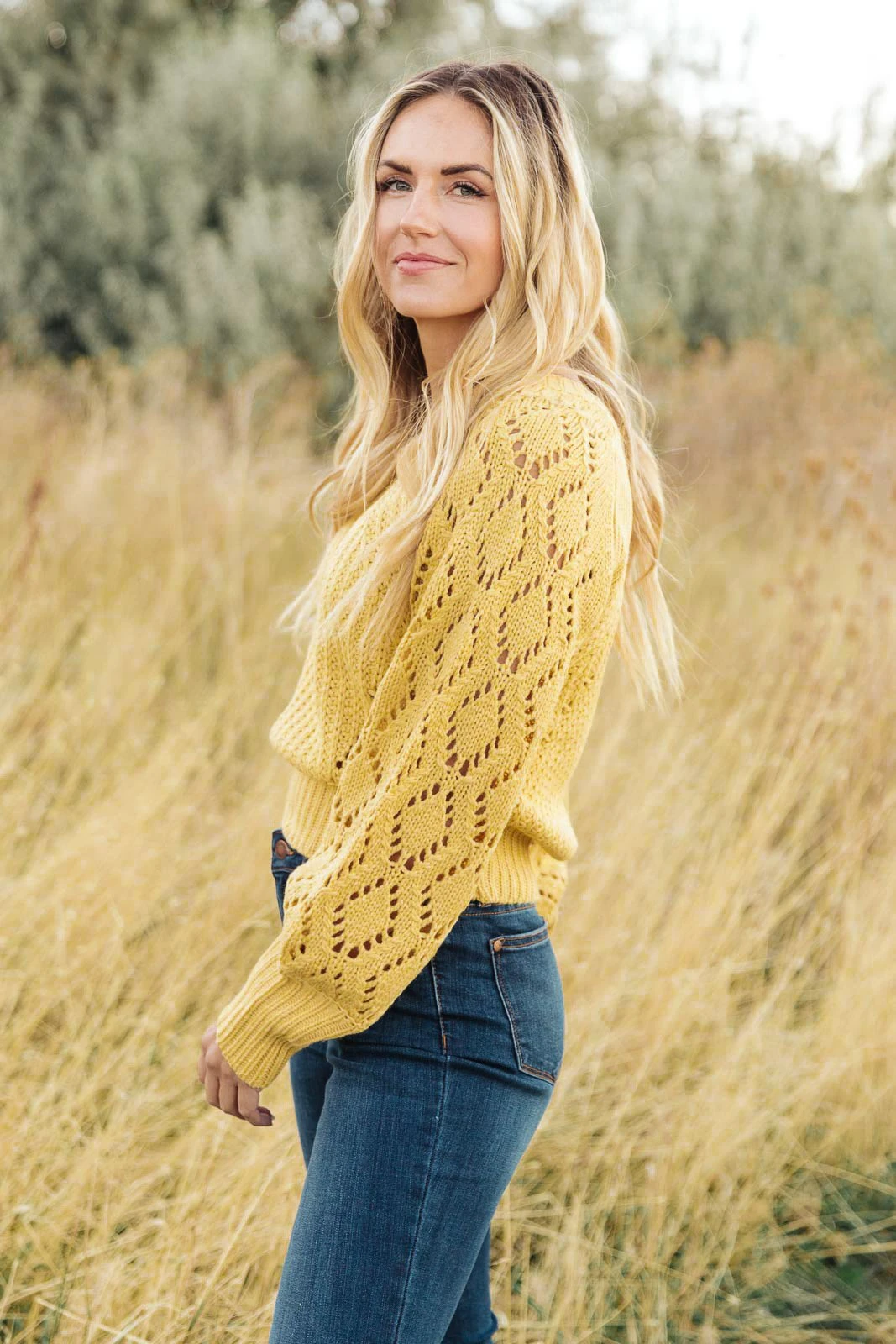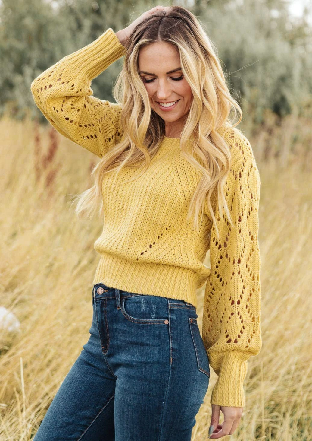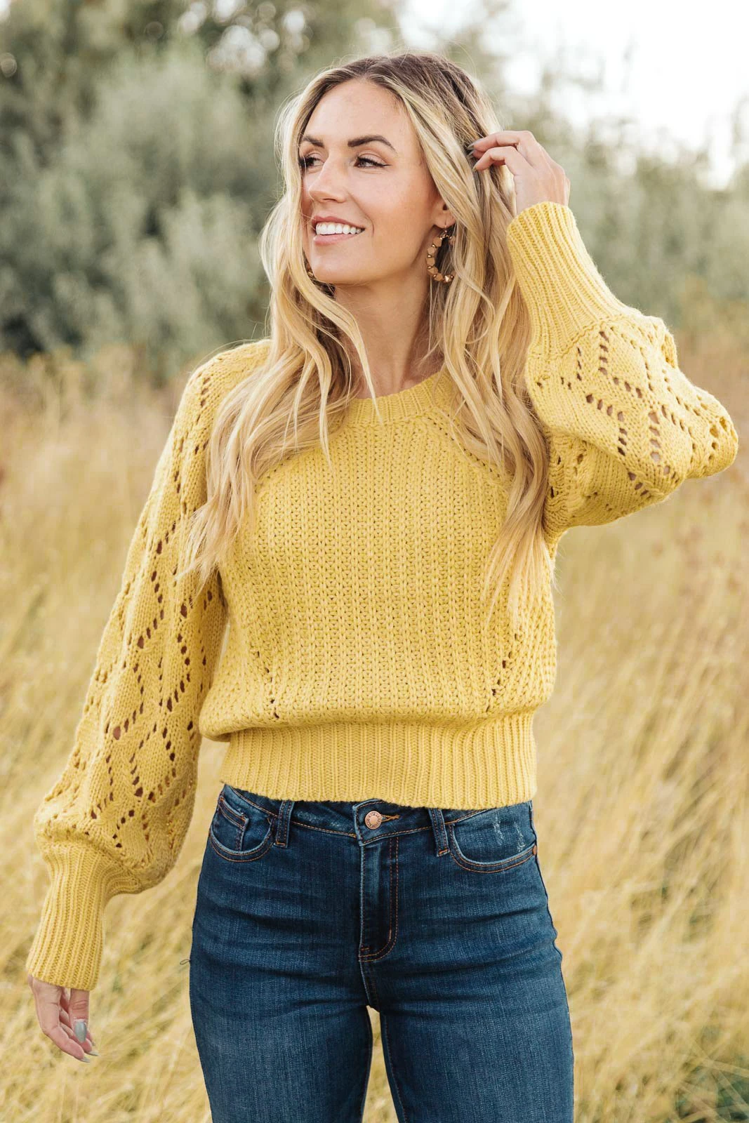 Keywords: Yellow Top, Yellow Sweater, Long Sleeve Top