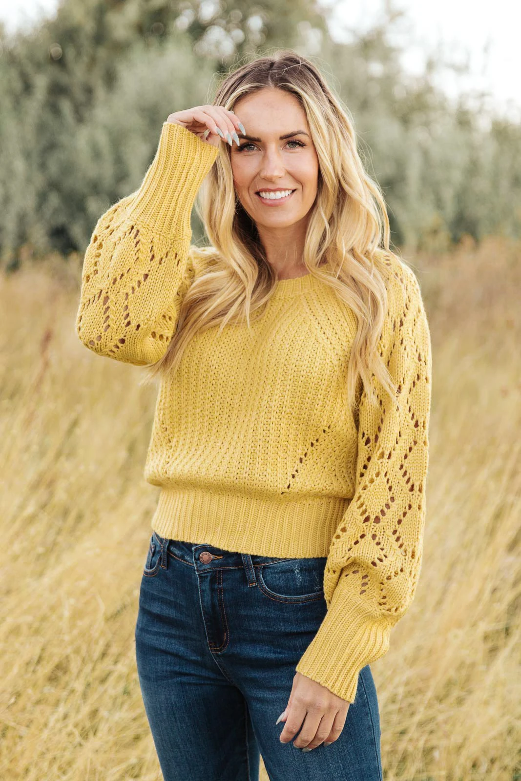 Make a statement in the Marley Cropped Sweater! This gorgeous bright sweater is a show stopper and has so many fun elements. From the intricate sleeve design to the rounded neckline, you’ll love this cropped sweater. Pair it with a high waisted jean and boots.
