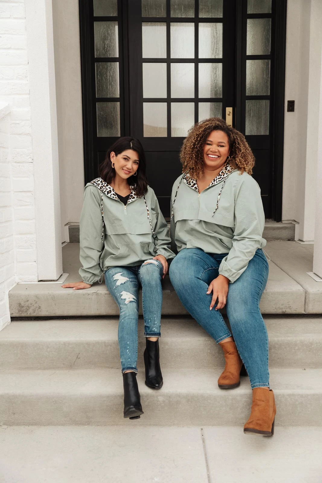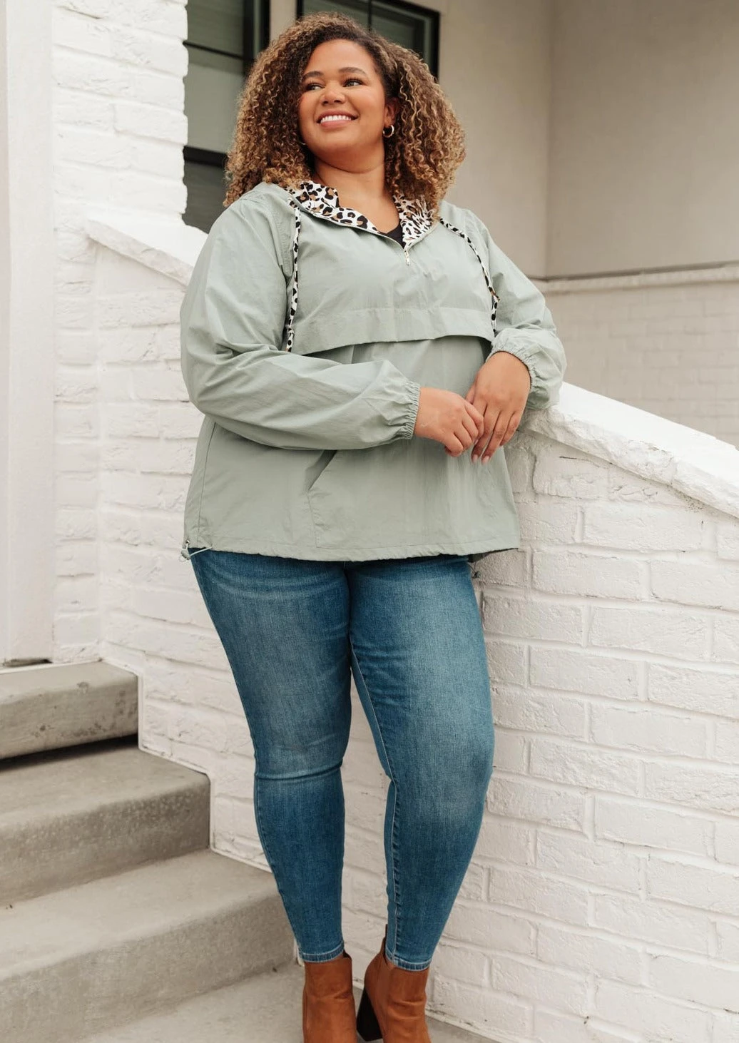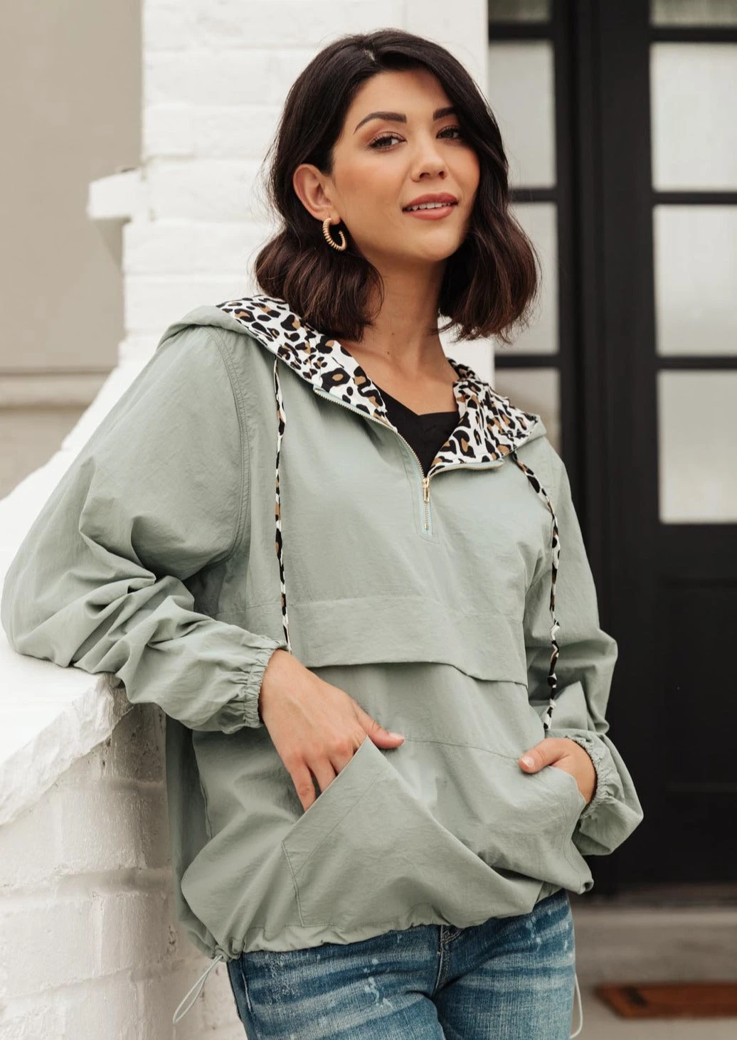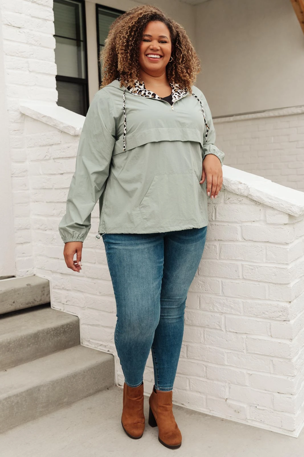Dance in the rain in the Wild Card Windbreaker! This lightweight jacket is perfect for layering on cool weather days. This cute pullover features a front pocket and animal print details in the hood and drawstrings! Pair it with jeans and your rain boots.