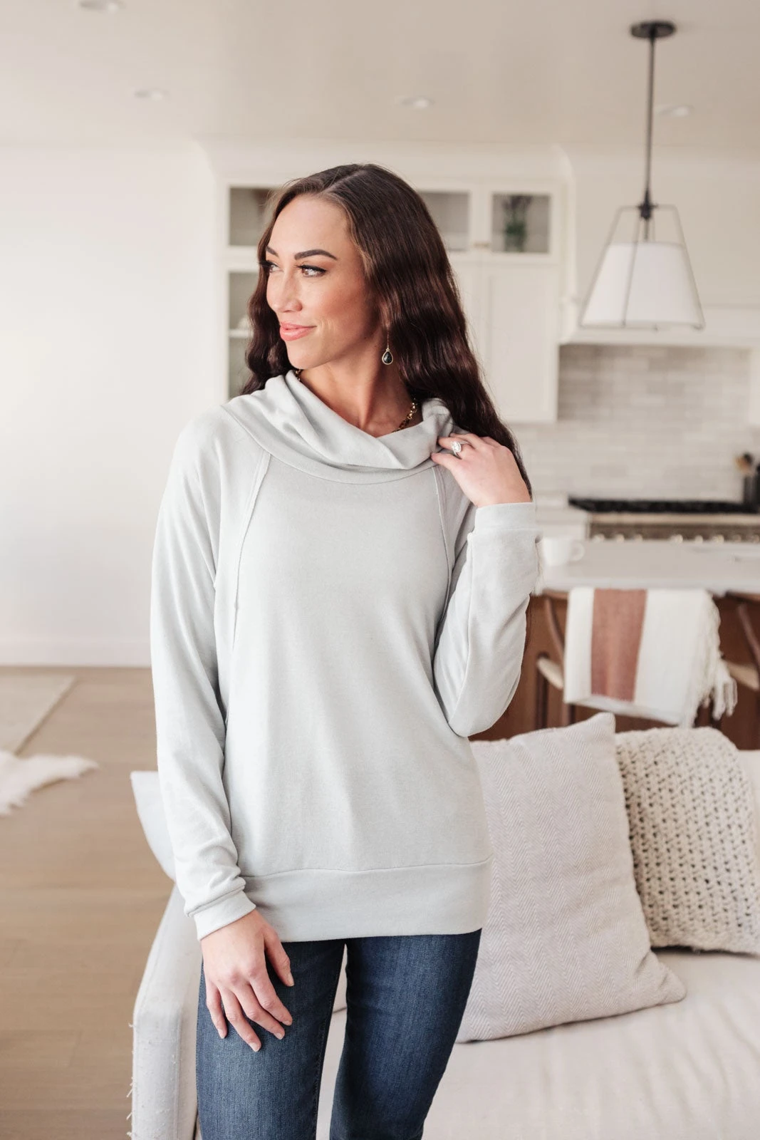 Keywords: Cowl Neck, Gray, Sweater, Long Sleeve