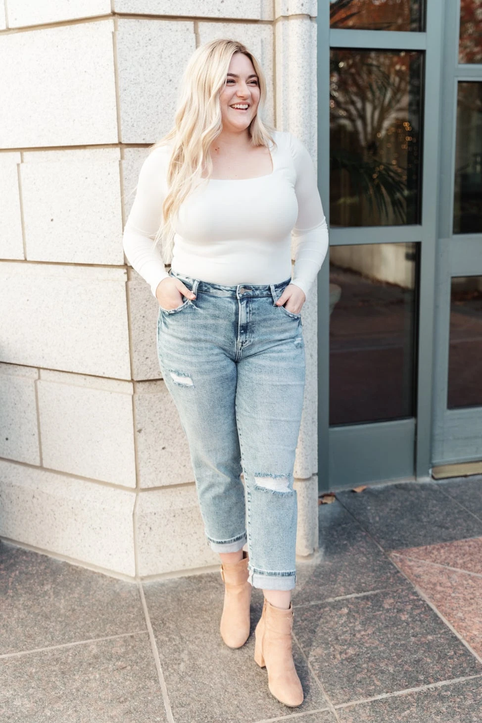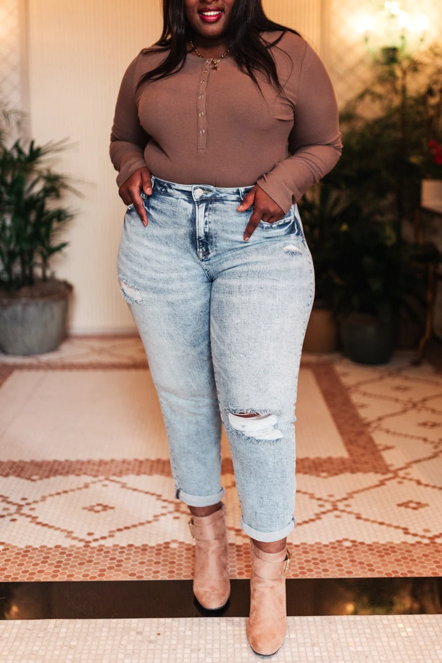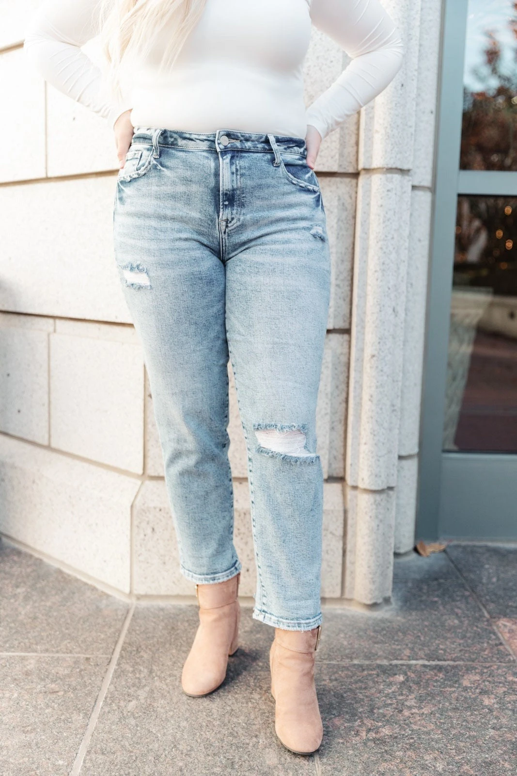 The My Way Boyfriend Jeans give you a fashion-forward silhouette, perfect for running errands or getting brunch, with a comfortable style that you can wear all day long. The slight distressed knee and light wash give it a cool, modern look! Your friends will be begging to know where you got them.