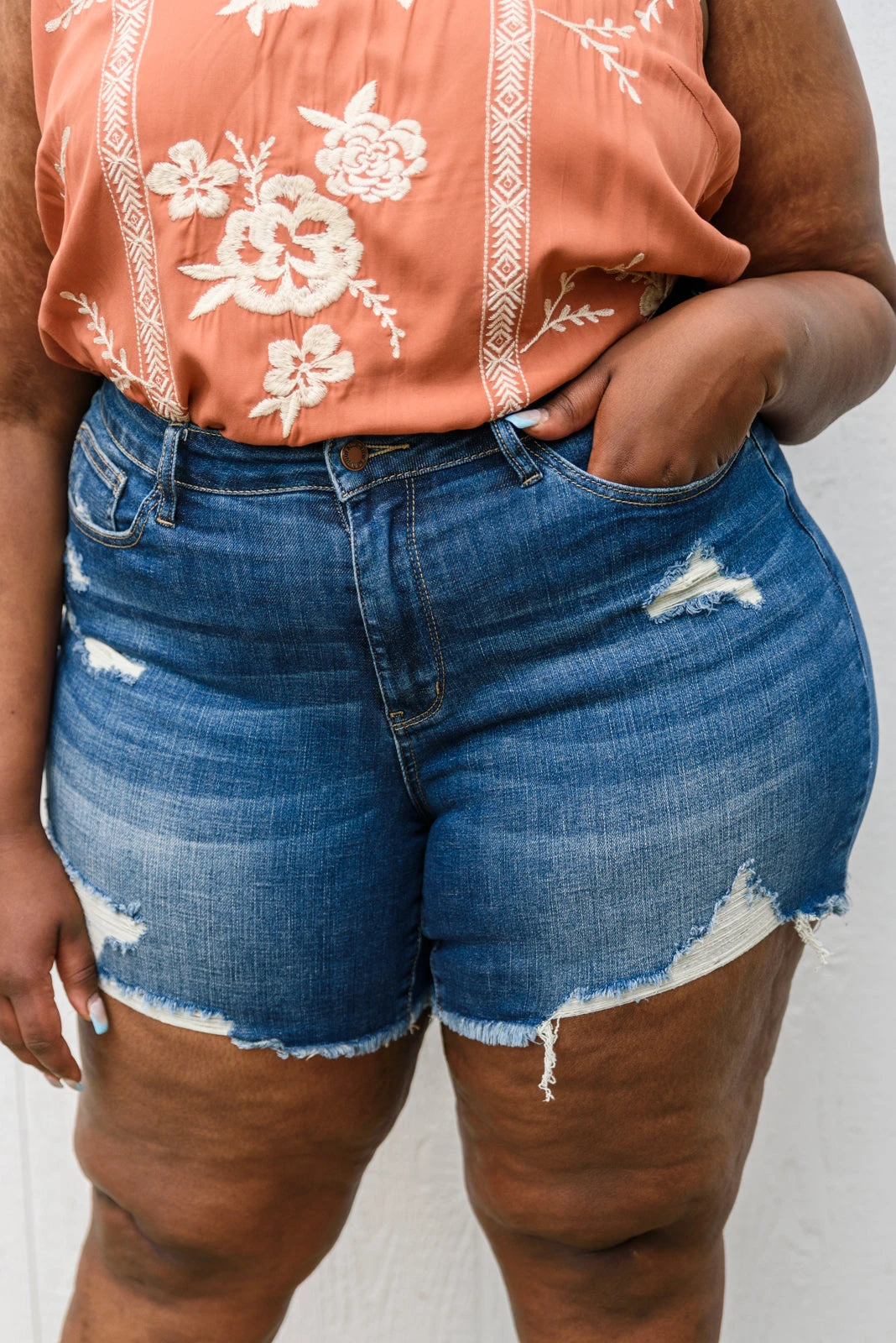 Keywords: Shorts, Denim, Raw Hem, Distressed