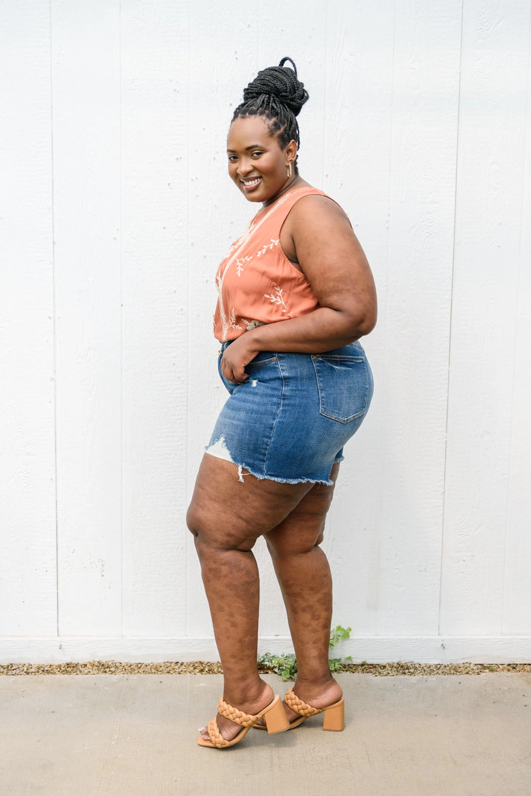 - Raw hem + Slight distressing