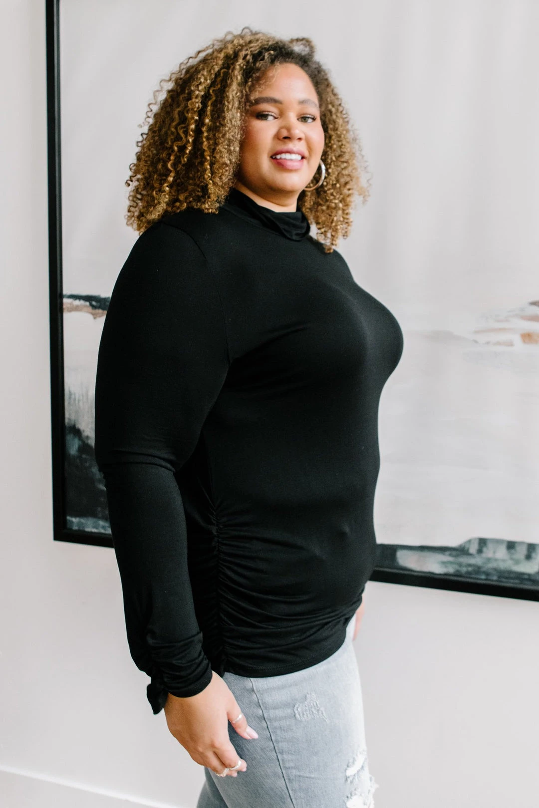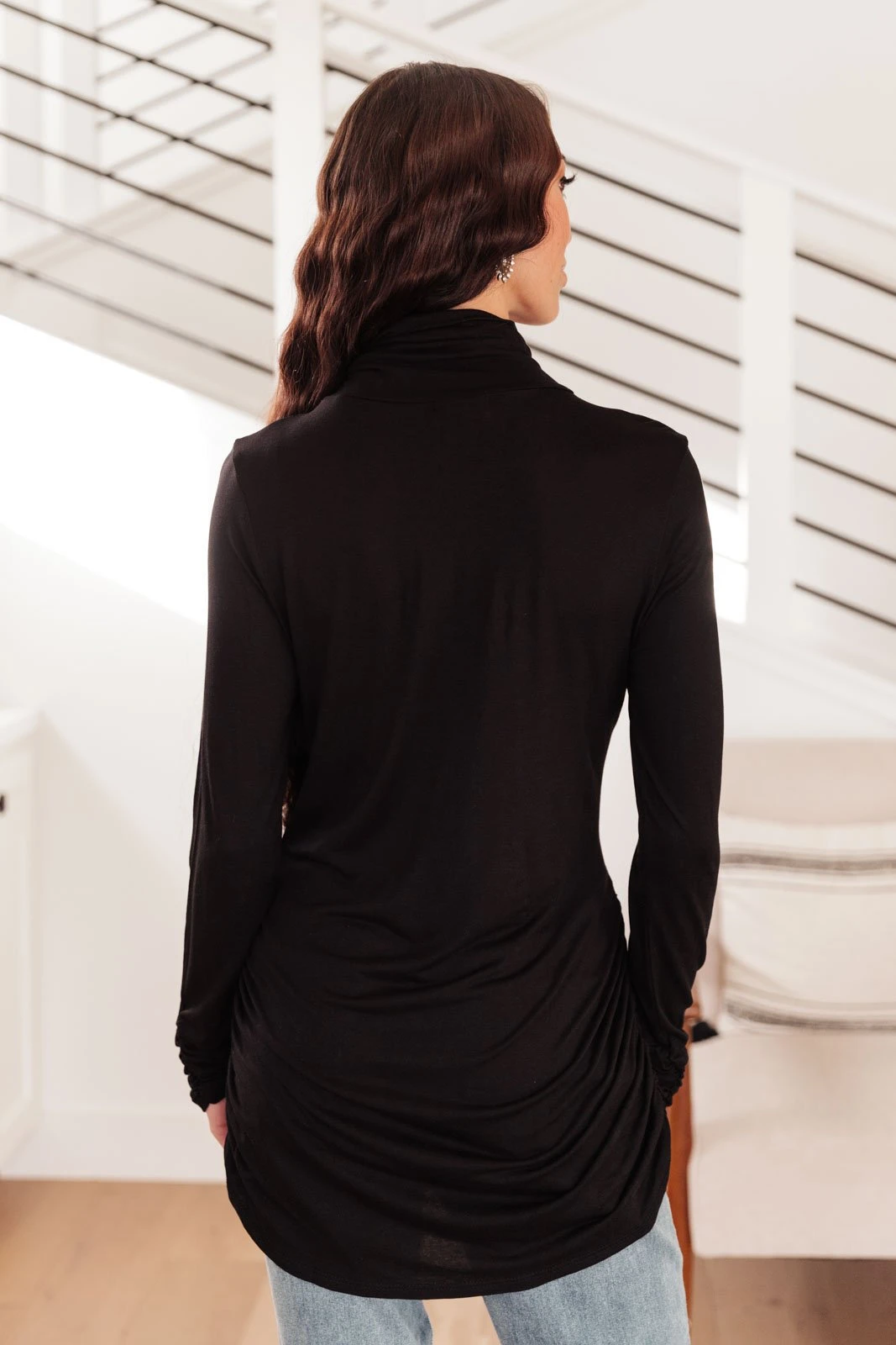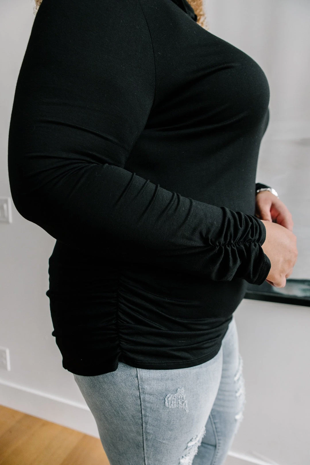 The Rushed And Ready Cowl Neck Top is a must-have item for every closet! This cowl neck top is lightweight and stretchy, which makes it perfect for wearing under jackets and coats. The rushed details on the hips and sleeves help to create a form fitting, flattering silhouette. Pair this top with jeans, skirts, or leggings.