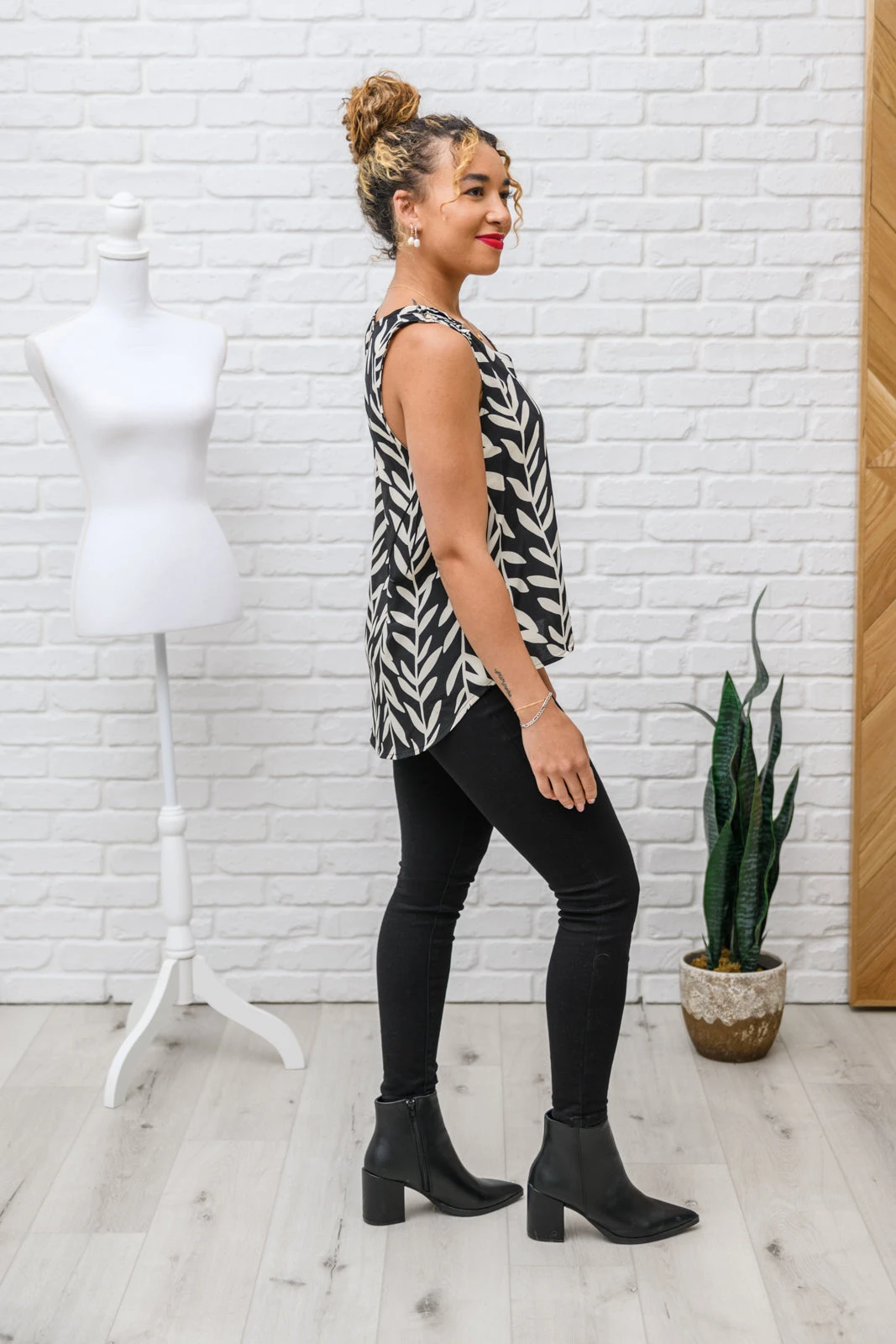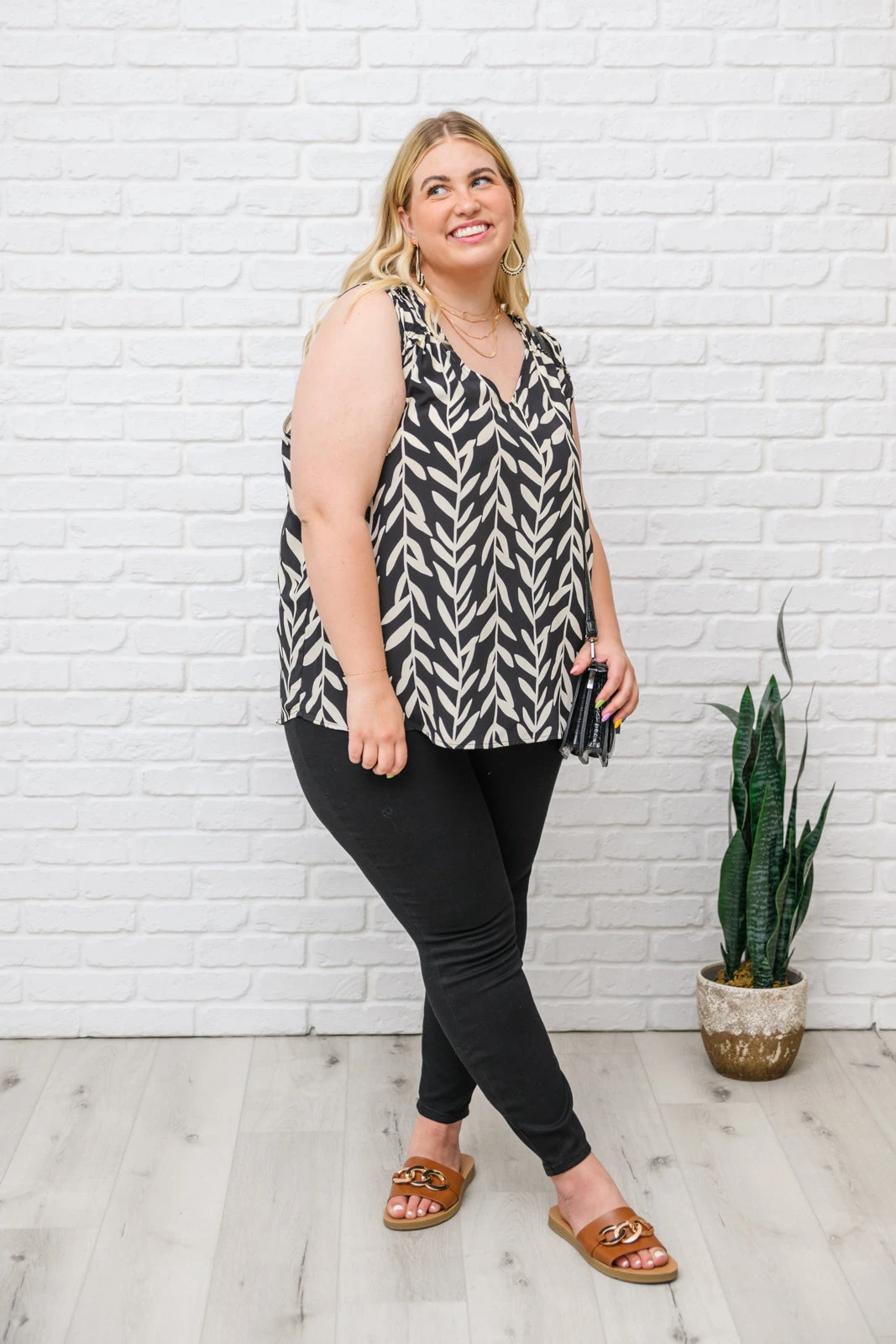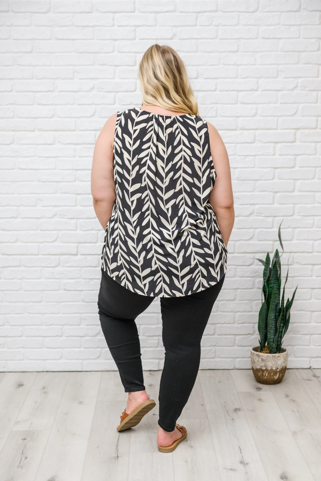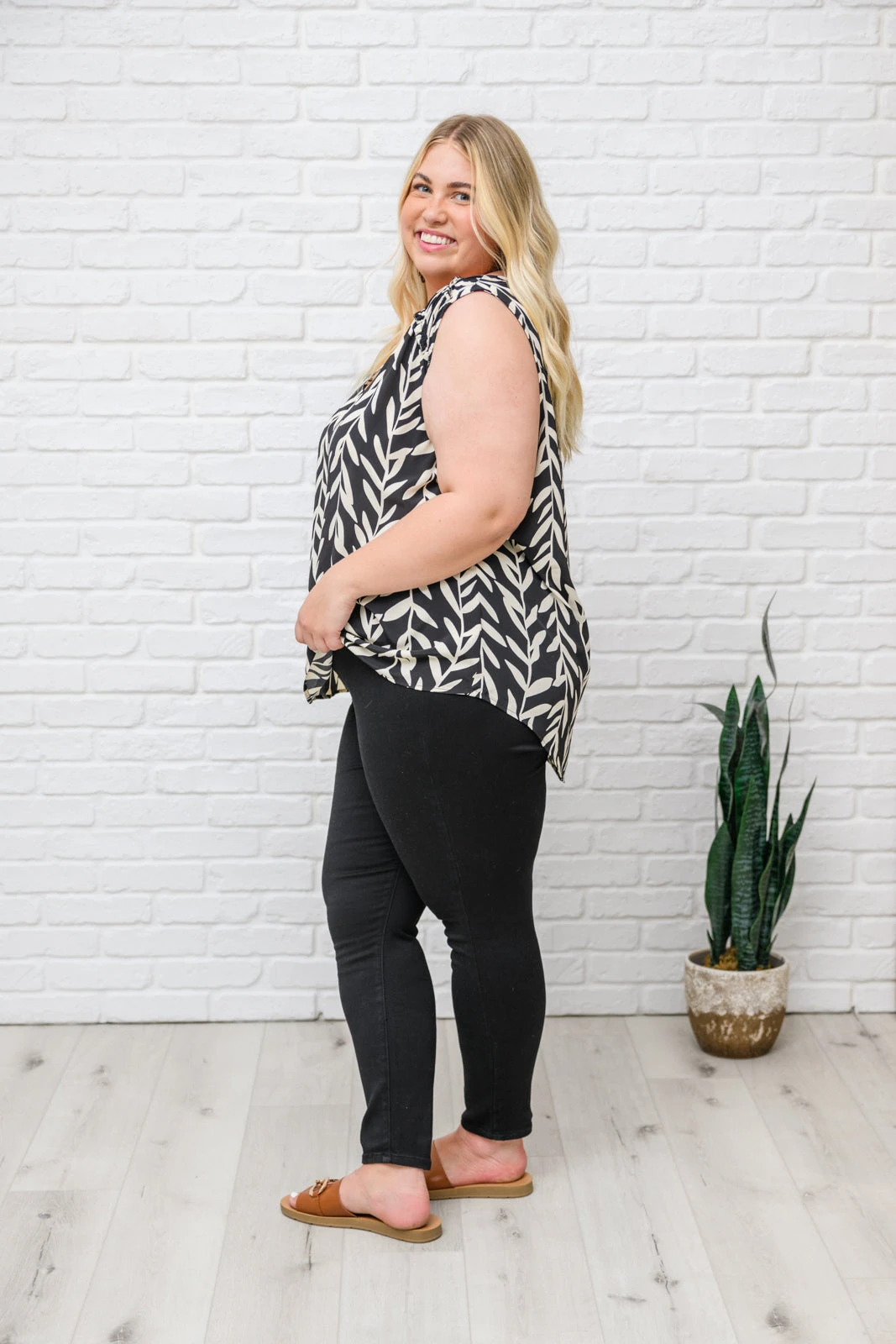Let the Office Talk Sleeveless Top make getting dressed in the mornings a breeze! We love the vertical print made up of leaf vines in a bold black and white color, that tops a sleeveless cut with a v-neckline and a-line silhouette. Add a blazer, black skirt & heels and you’ll be looking sleek as ever!