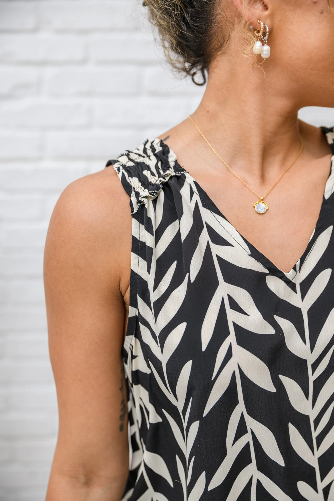 Keywords: Tank, Leaf, Black, White, Blouse