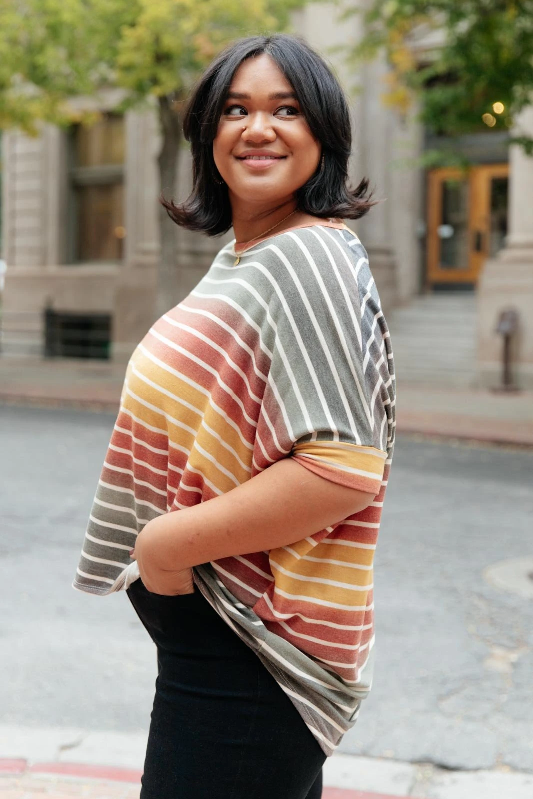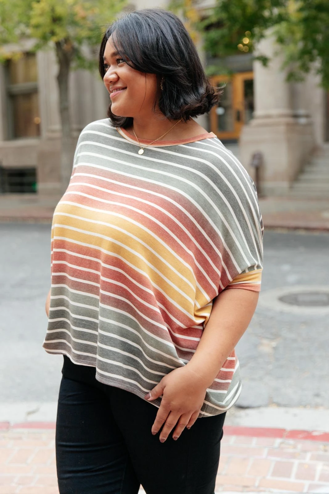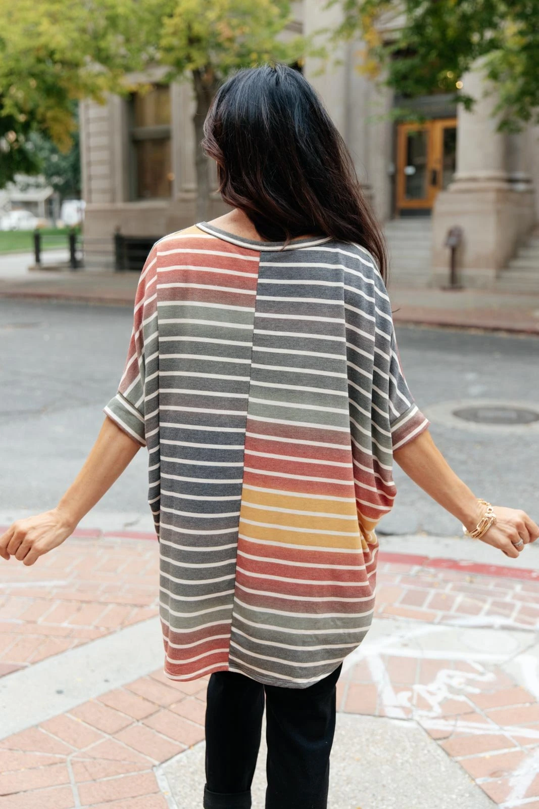 The Weekend Wonder Top is going to be your new favorite oversized tee! This adorable striped top features a dolman sleeve with a cuff at the elbow. This soft top pairs perfectly with jeans or leggings.