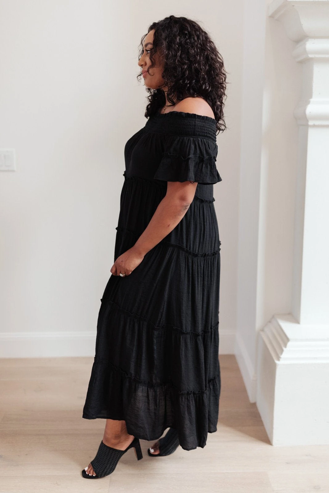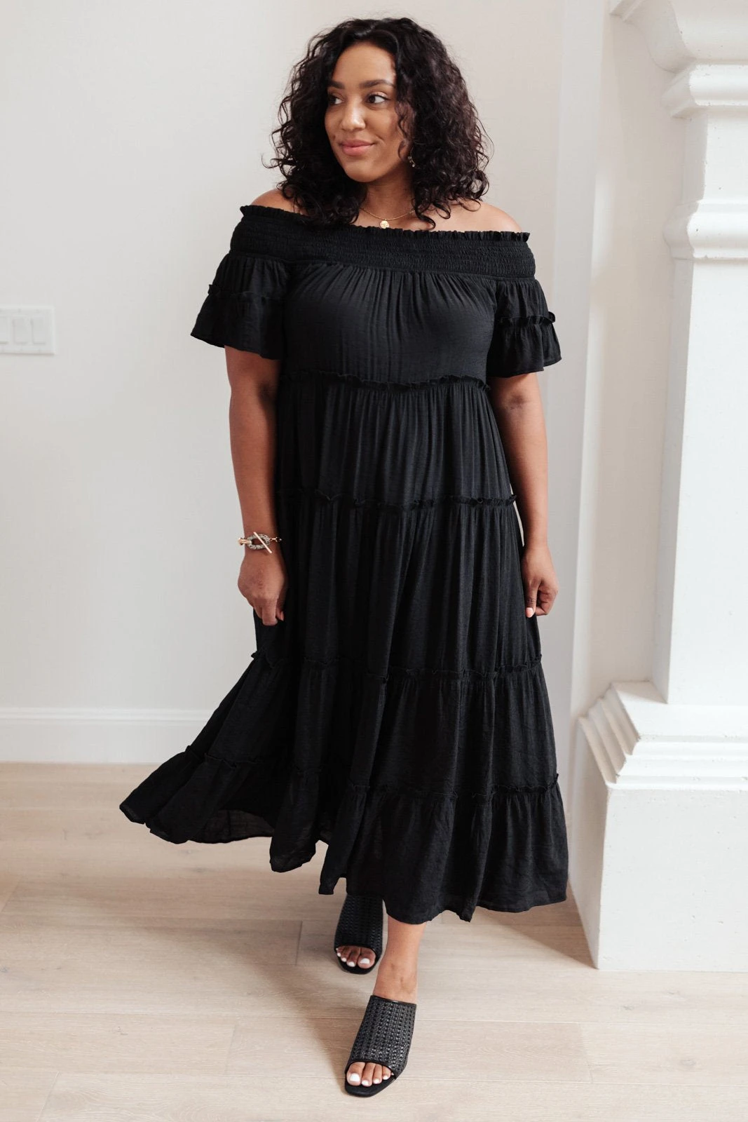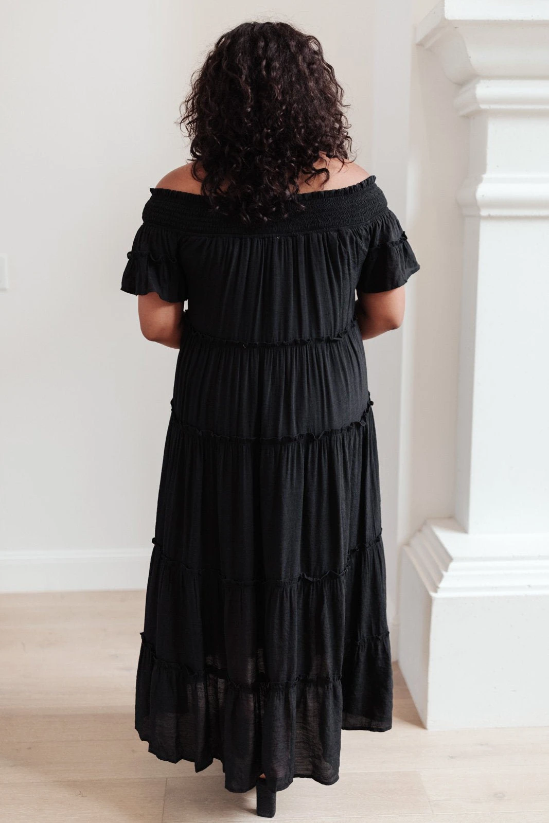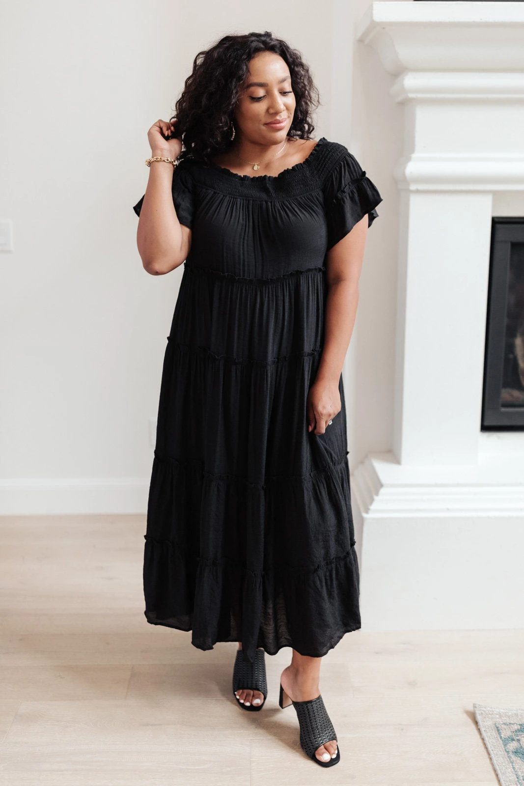 Keywords: Maxi Dress, Black Dress, Long Dress, Tiered Dress