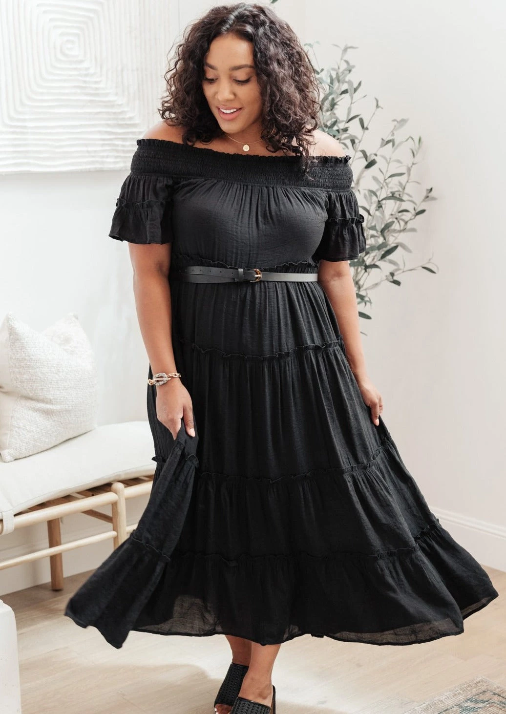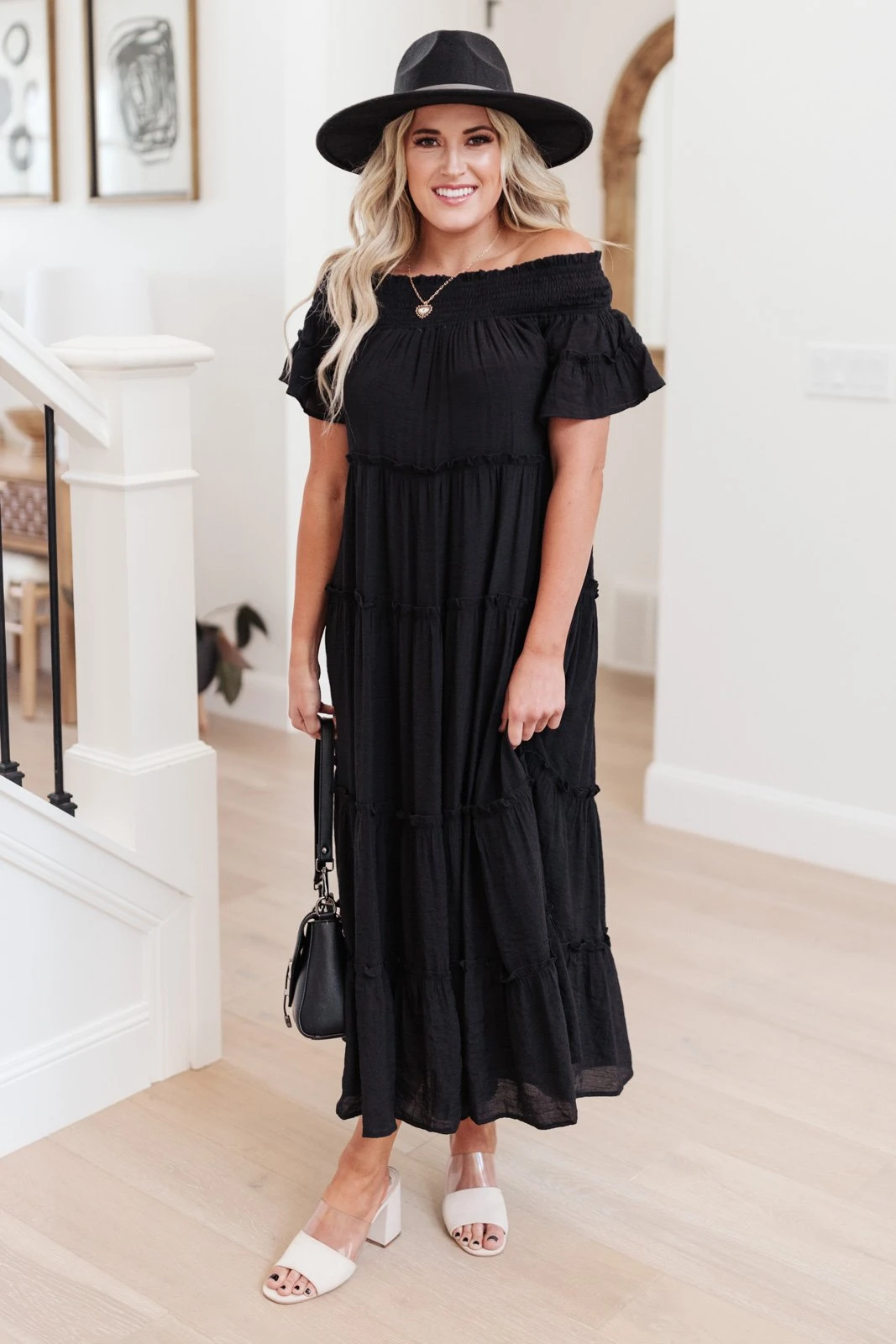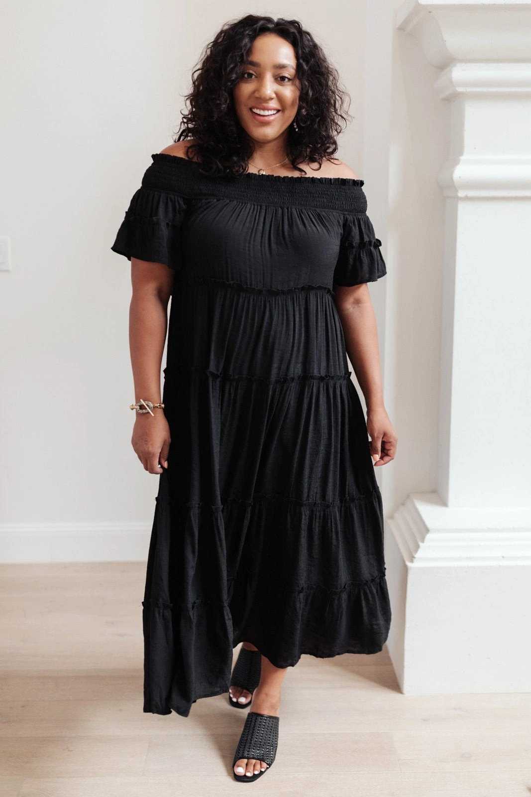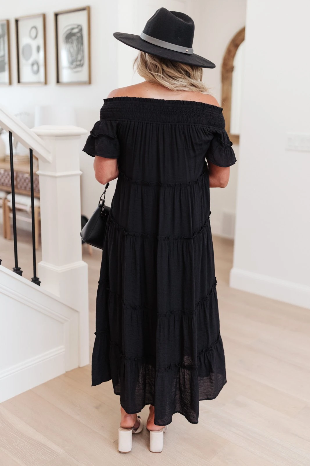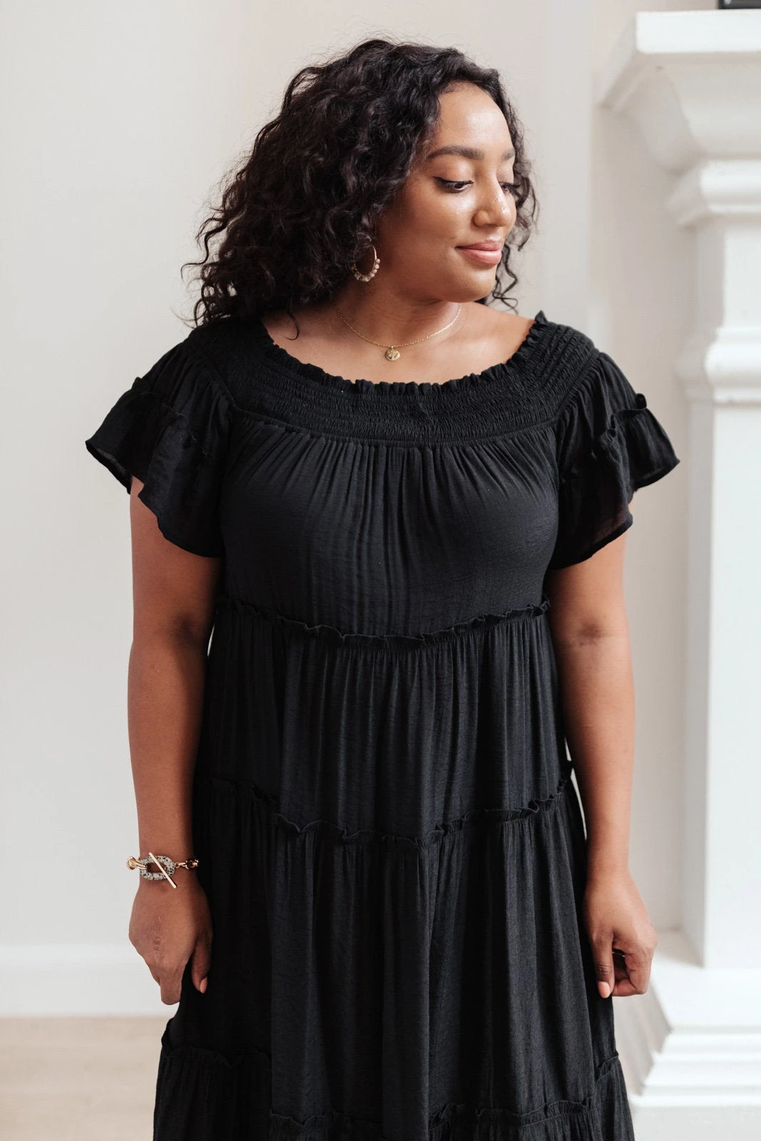 Keywords: Maxi Dress, Black Dress, Long Dress, Tiered Dress
