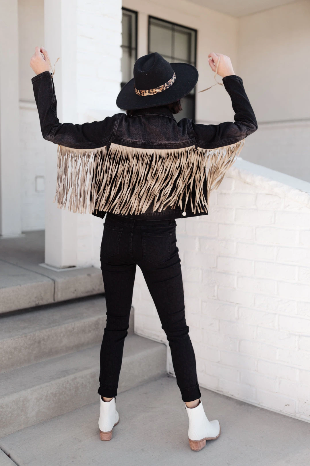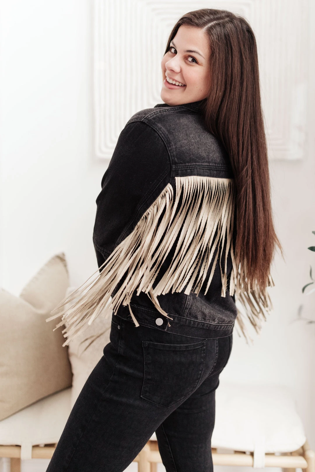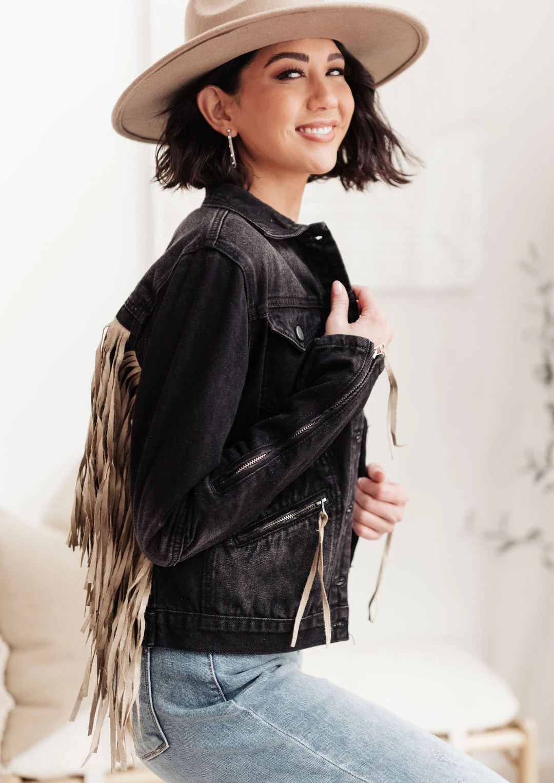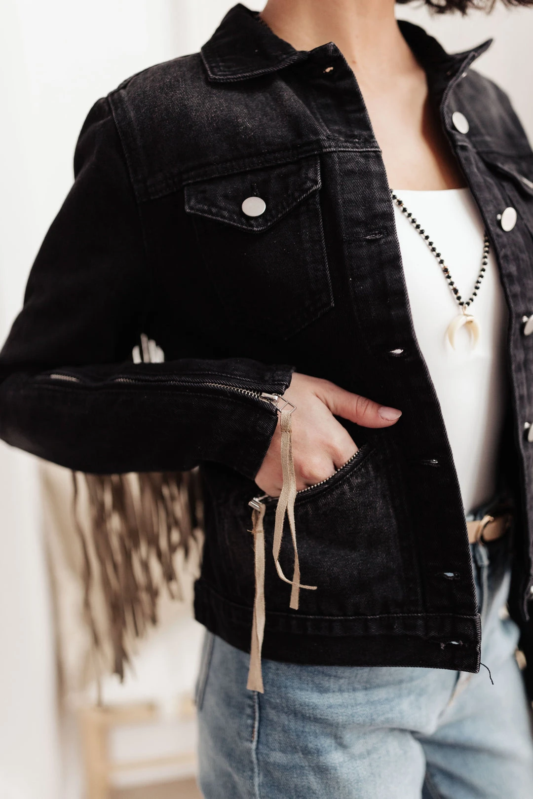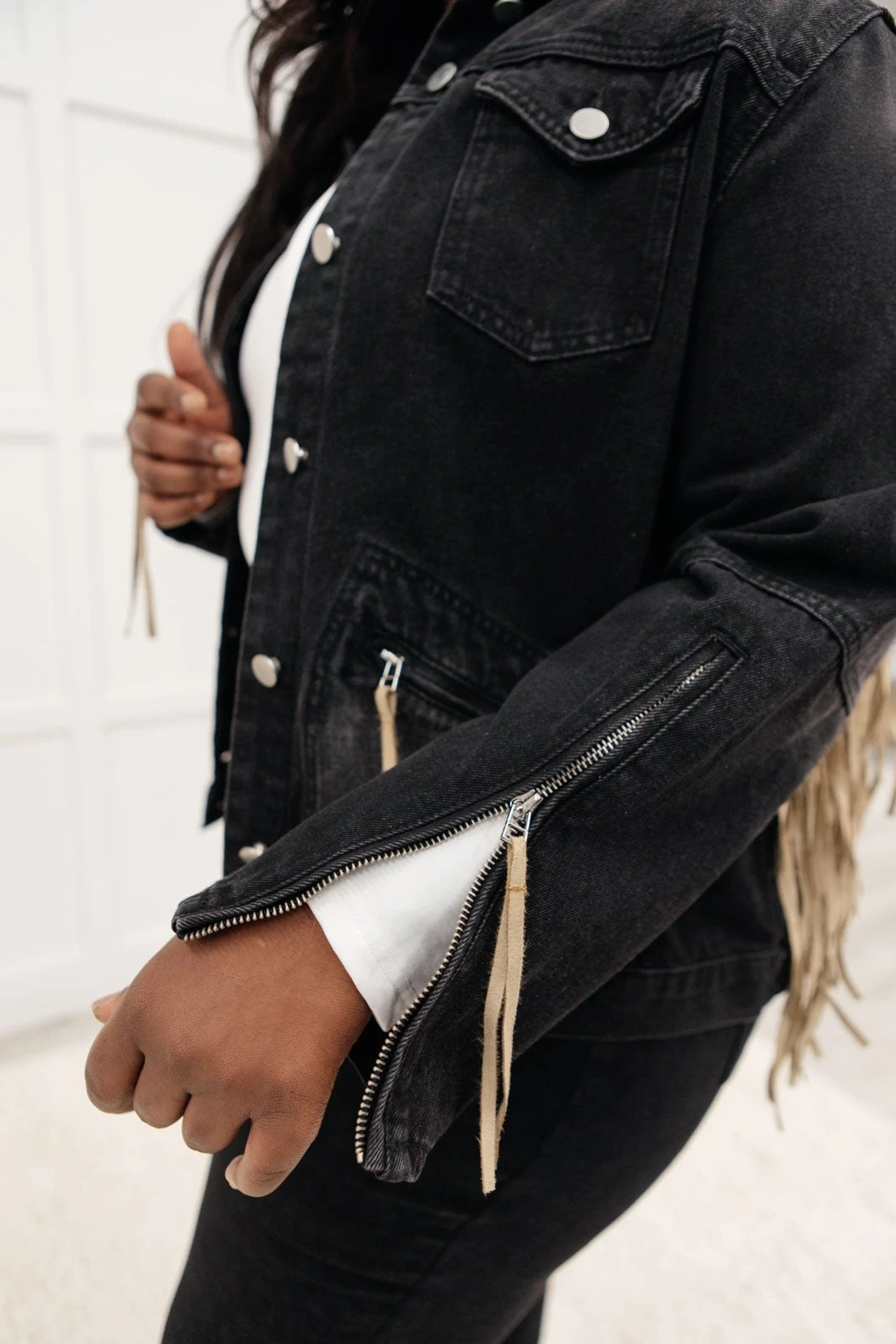 Make sure your look is on-point this season with our On The Fringe Jacket. This durable trendy denim jacket combines a classic feel with amazing fringe, button and zipper details. Pair with high-rise jeans and a graphic tee to be extra trendy!