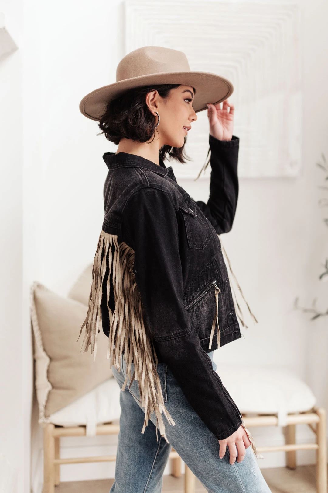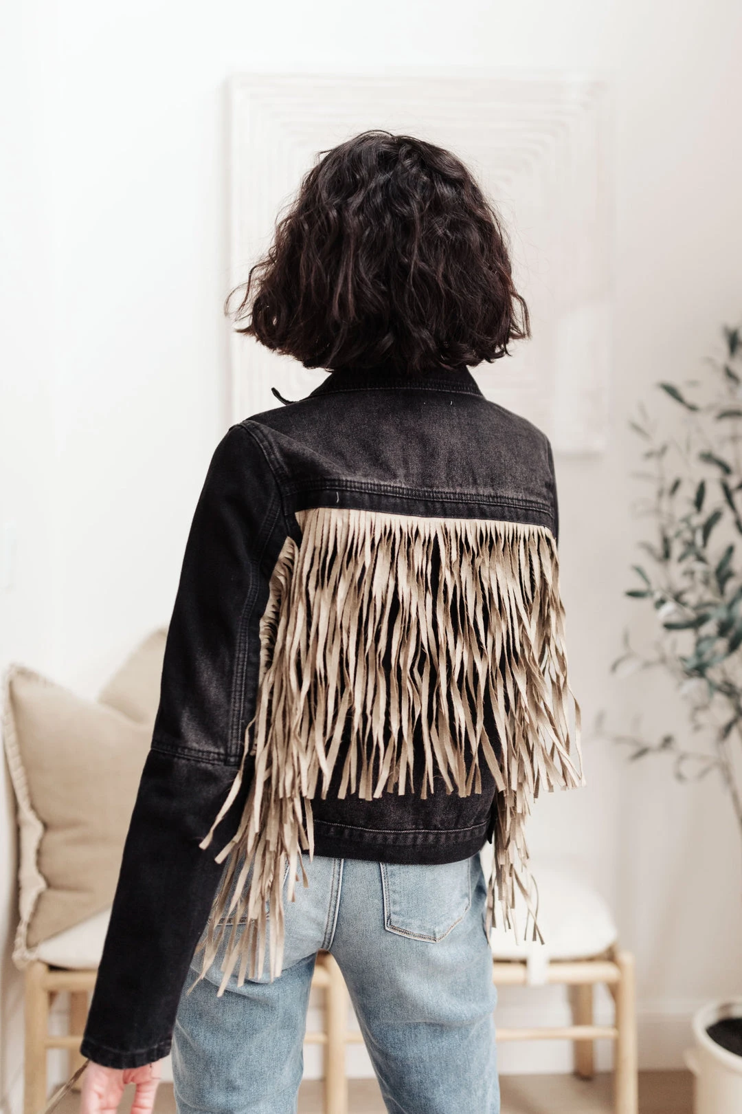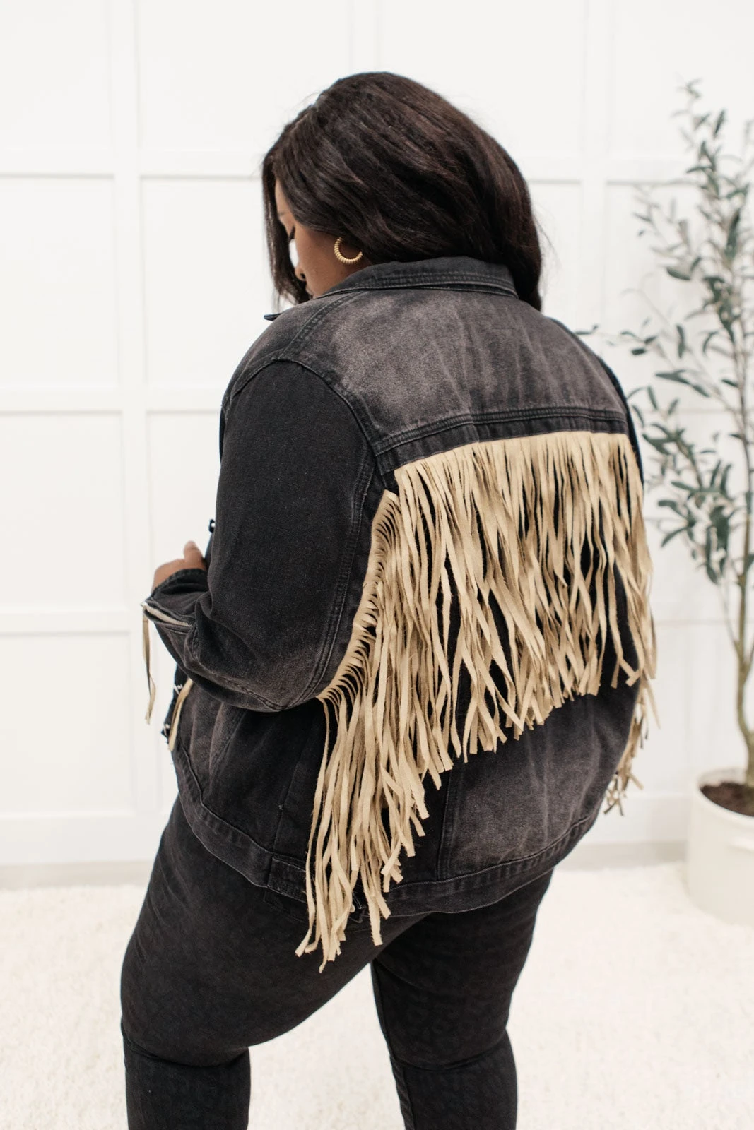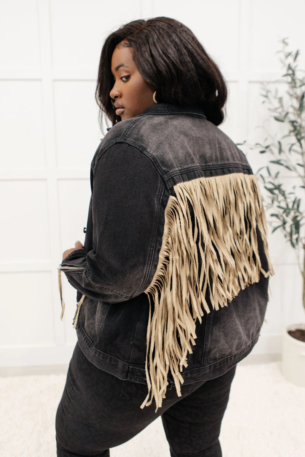 Make sure your look is on-point this season with our On The Fringe Jacket. This durable trendy denim jacket combines a classic feel with amazing fringe, button and zipper details. Pair with high-rise jeans and a graphic tee to be extra trendy!