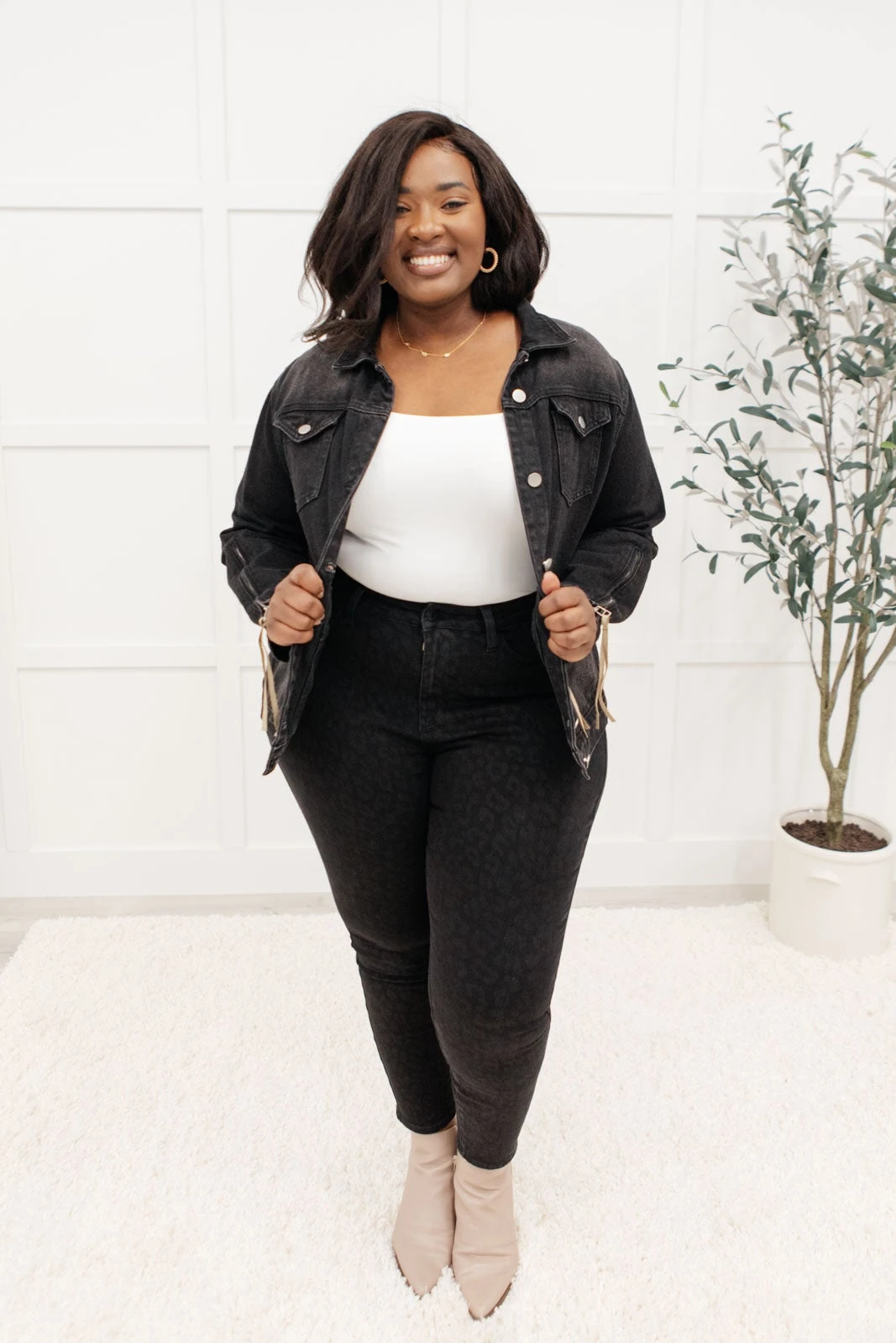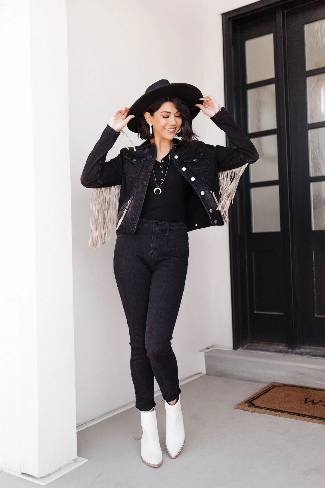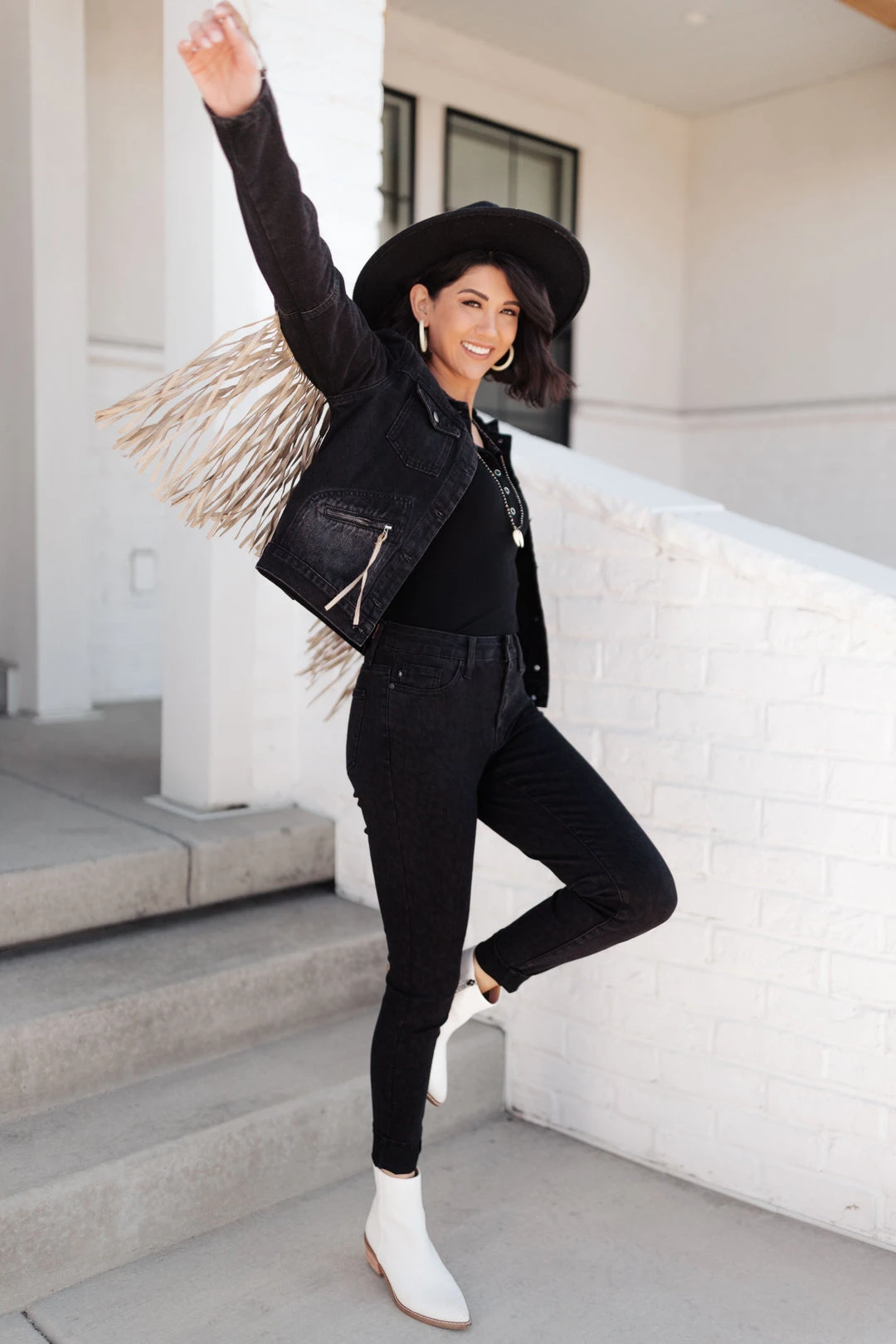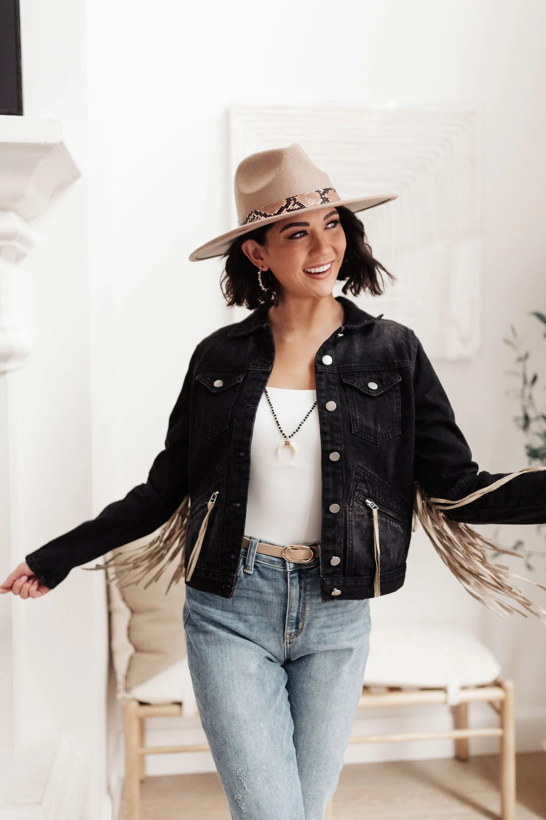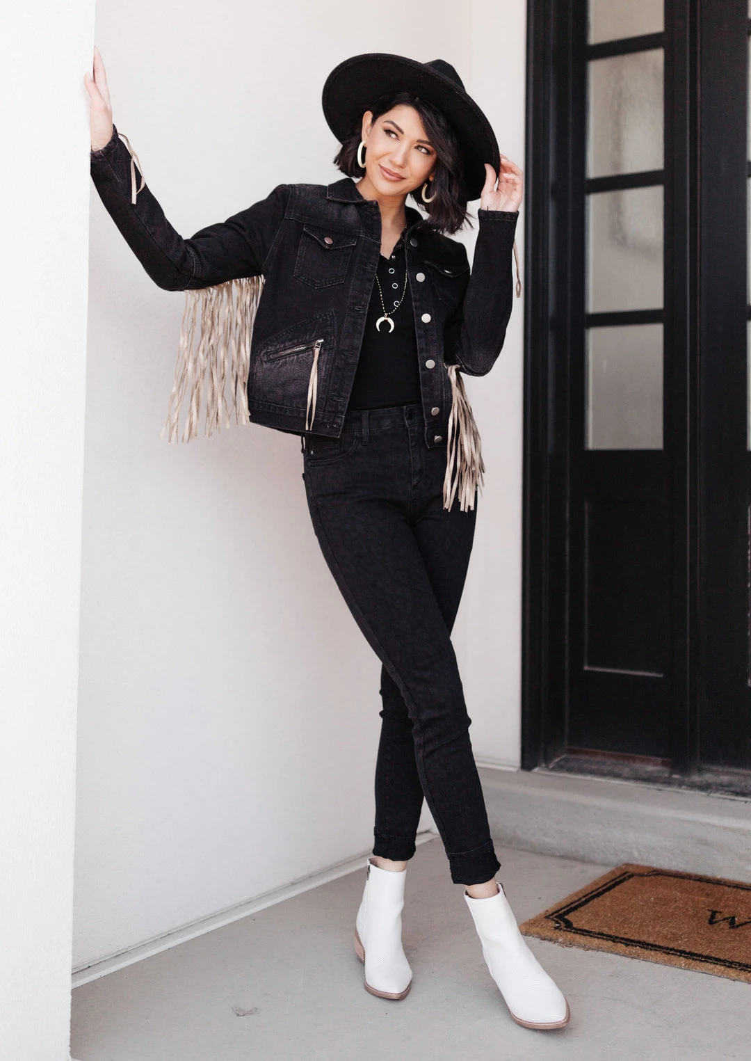 Make sure your look is on-point this season with our On The Fringe Jacket. This durable trendy denim jacket combines a classic feel with amazing fringe, button and zipper details. Pair with high-rise jeans and a graphic tee to be extra trendy!