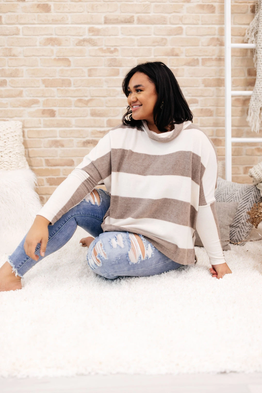 All the best memories are made cuddling up in the On The Stripes Cowl Neck Sweater! Cozy lightweight knit is perfect for those cozy days/nights as it creates a cowl neck and dolman long sleeves with drop shoulders. Relaxed bodice. Contrasting stripes creating the most flattering fit!