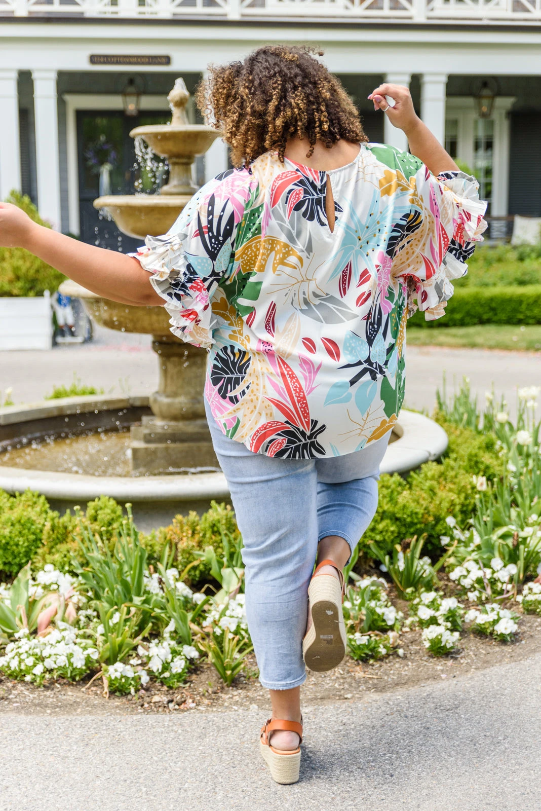 You’ll always attract attention in the One More Time Shirt! Featuring a leaf print and dolman half sleeves with pleated ruffle detail. Whether it’s for a lunch or a vacation look, this shirt will be successful in making you the best dressed in the room!