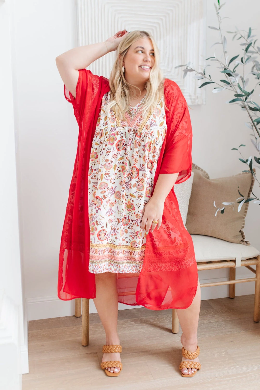 We’re wearing this kimono with everything this spring/summer season! The One Way Trip Kimono Is sure to become a staple, in a lightweight, sheer fabric, shaping a midi silhouette, with three quarter length sleeves. Pair this bold kimono with denim, a white tank, and white sandals for a casual and chic look!