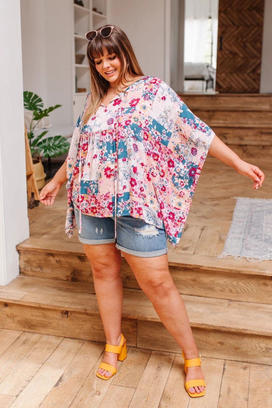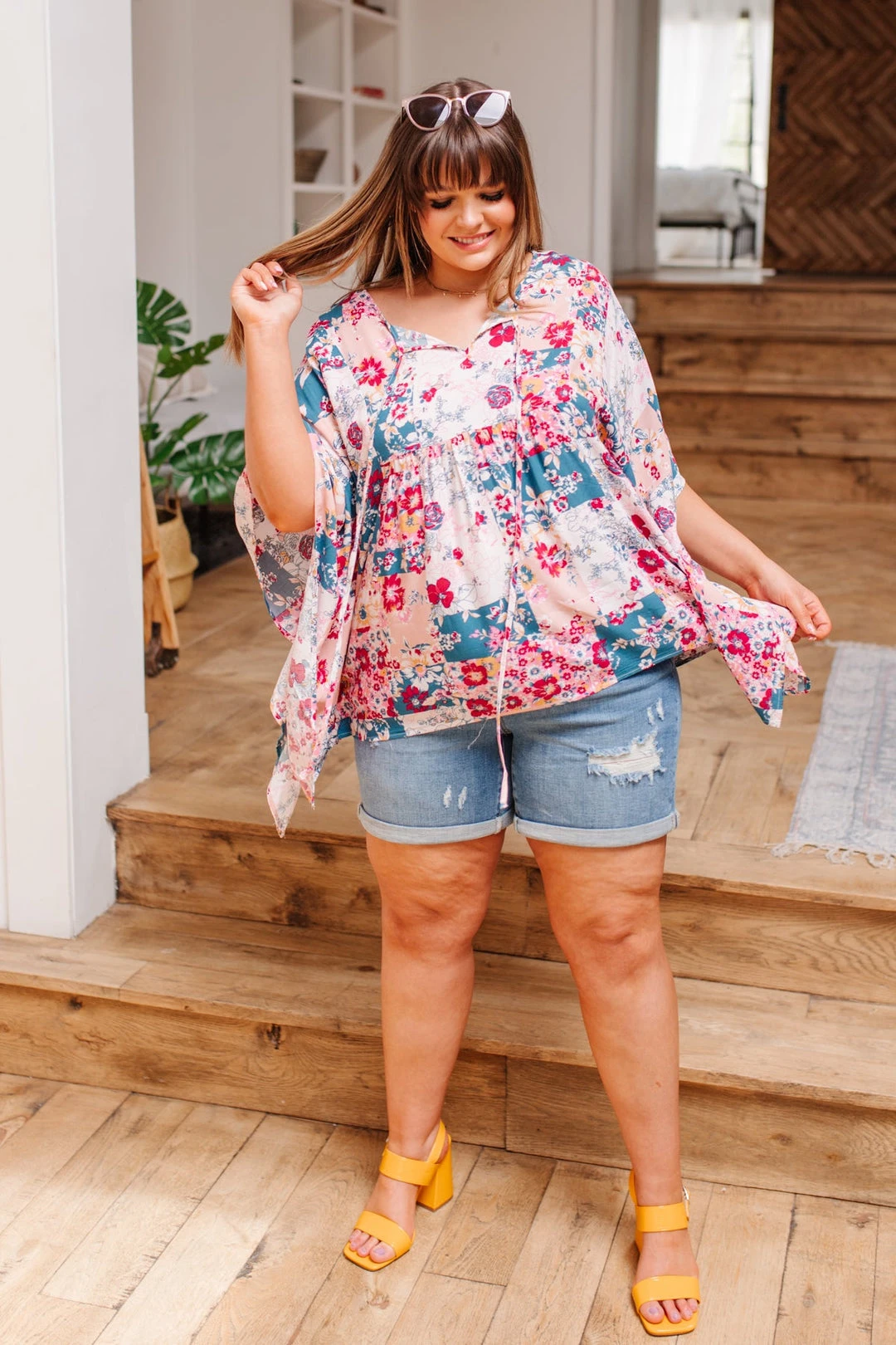 We are so in love with all of the elements of the Peace On Earth Top! The boxy dolman sleeves and neck tie detail give us all of the boho feels. Not to mention it’s made out of a gorgeous floral printed flowy fabric. It’ll be perfect for hot summer days!