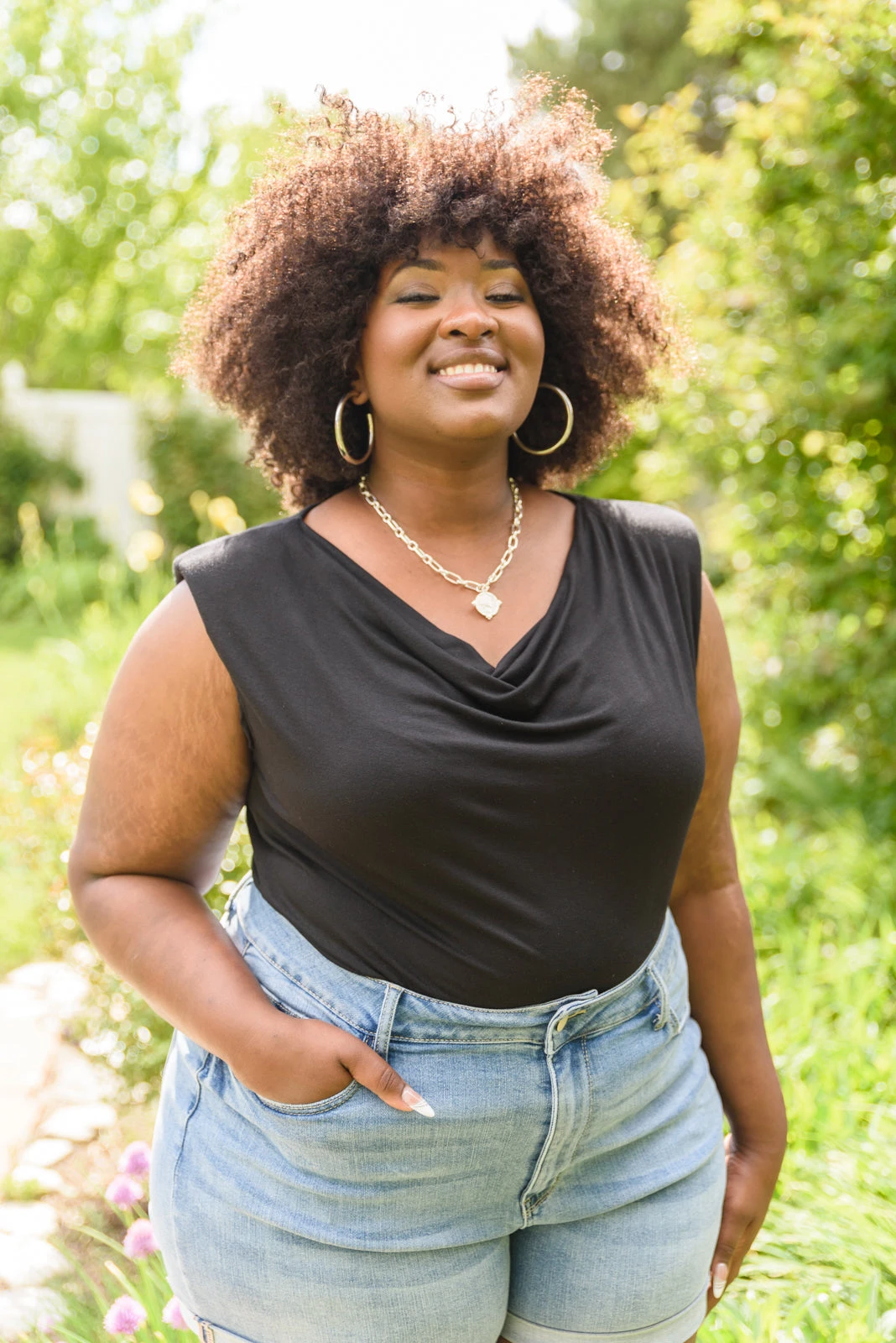 To feel good is to look good and with the Pink Promise Bodysuit you will achieve that with ease! This staple piece features a cowl neckline, a shoulder padded sleeveless cut, and a bodysuit silhouette with a snap closure that looks flawless!