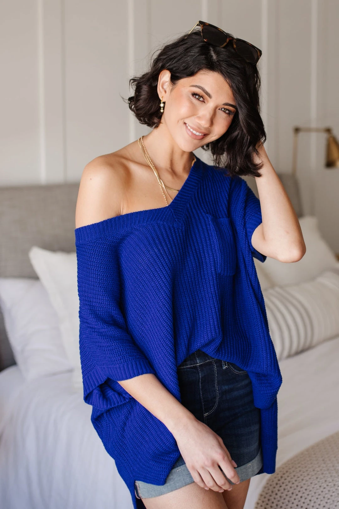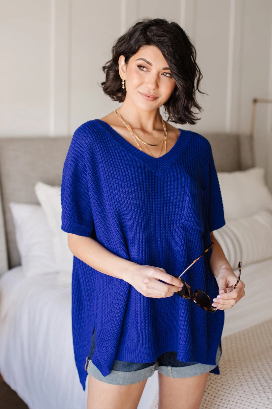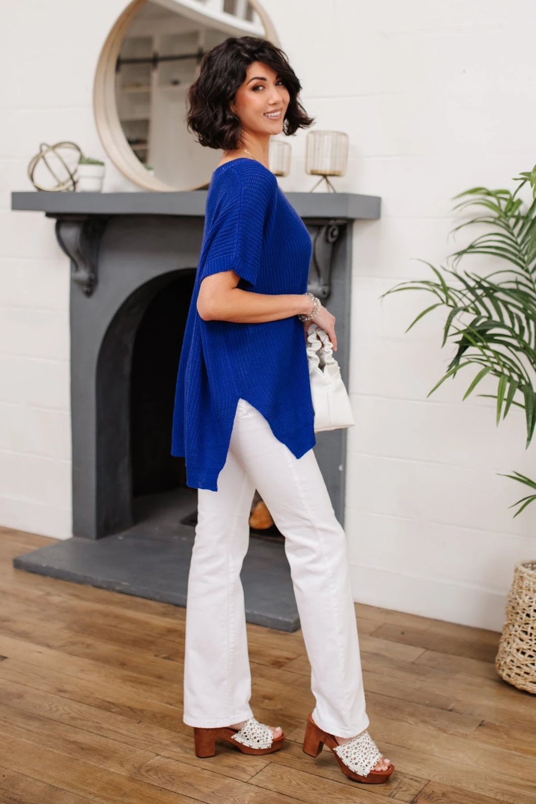 We are on the hunt for the perfect transition top into spring and we just found it! The Pure Bliss Knit Top is composed of a ribbed knit fabric, that shapes a v-neck line, dolman short sleeve, split side seam, and front patch pocket. This stunning royal blue color will look amazing paired with white skinnies, nude sandals, and gold accessories!