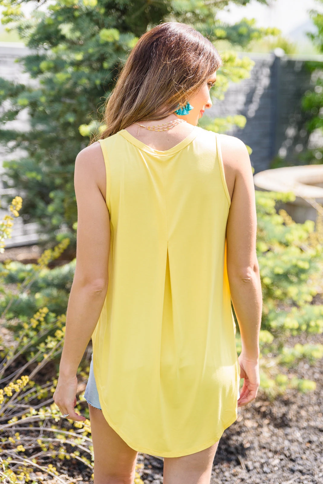 Create a casual look you’ll absolutely love in the Pure Sunshine Top! This lightweight, flowy top is bound to keep you cool and cute in the summer sun! Featuring a round neckline, sleeveless cut, and slight high-low hem. Pair with light wash denim shorts and white sneakers for a casual & stylish look!