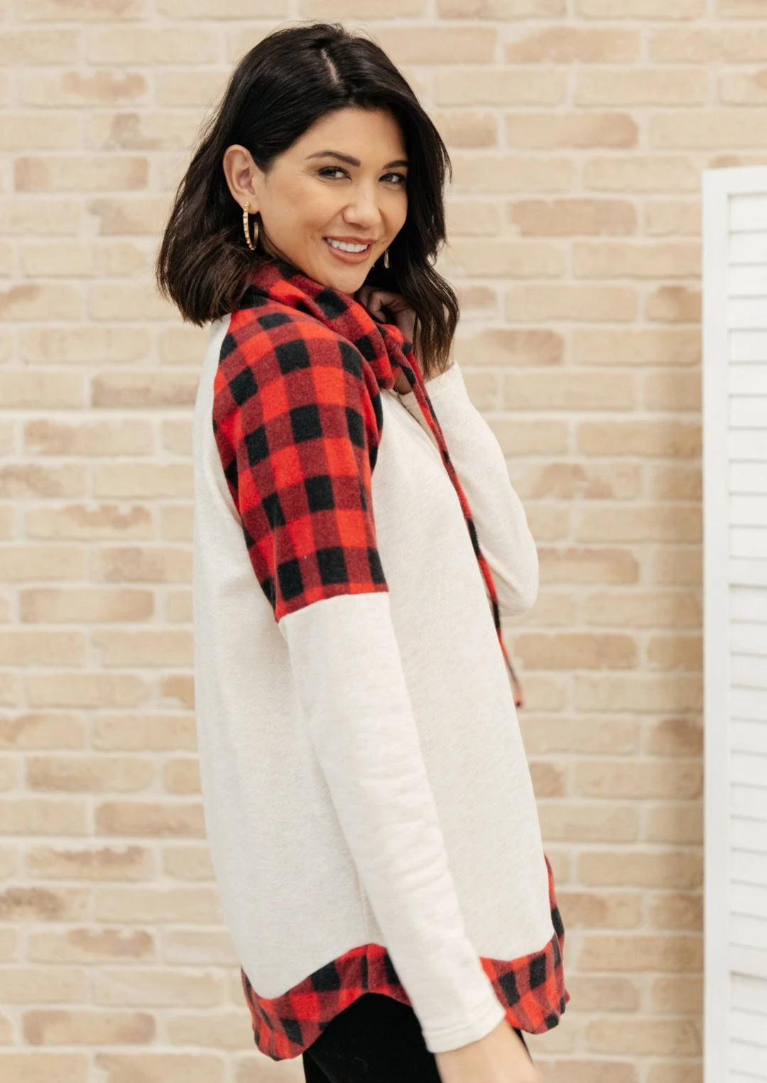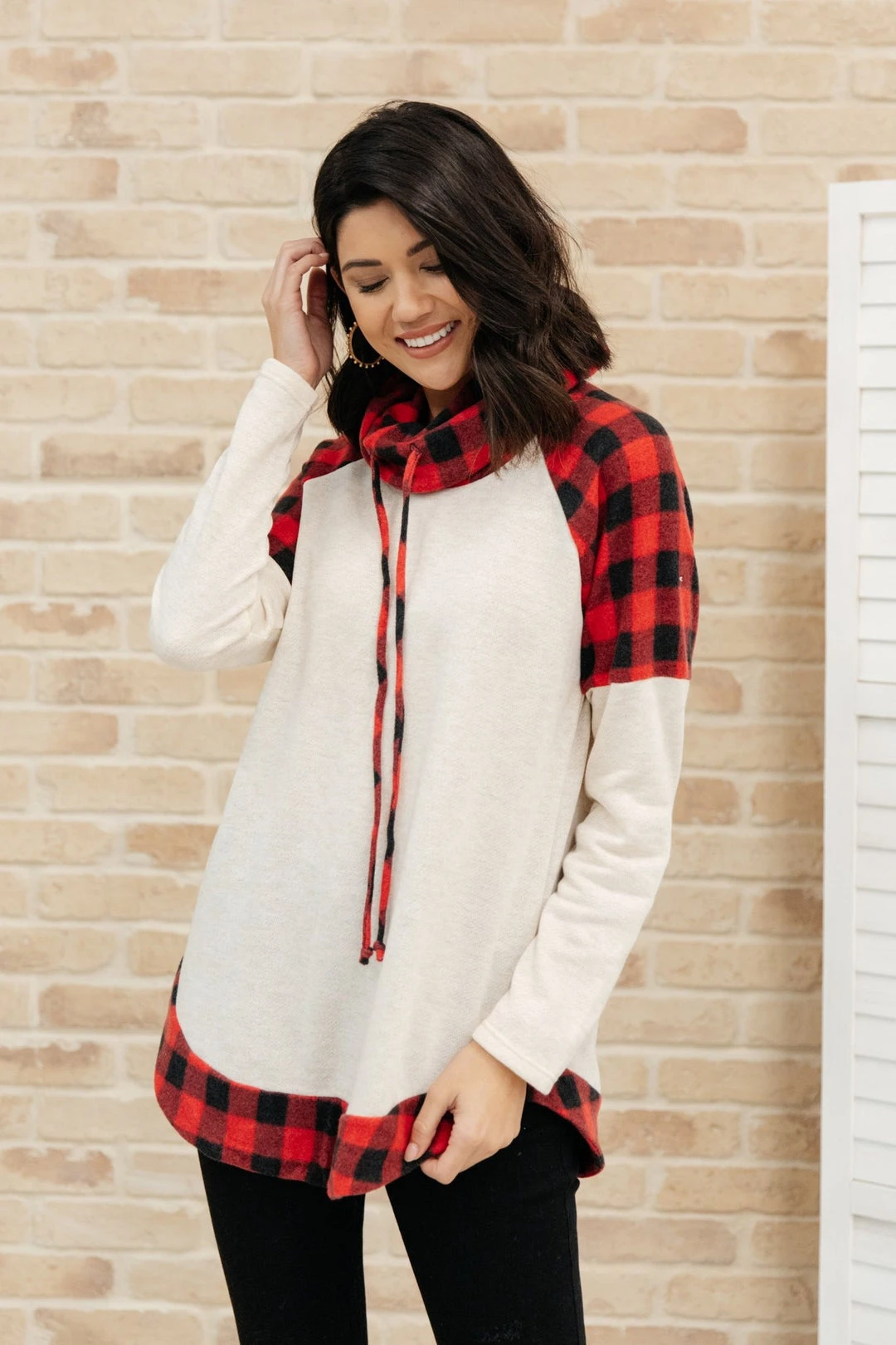We all know that those hints of plaid details make you feel the warm fuzzy holiday feelings! This cowl neck features an adjustable drawstring to tighten it or loosen it. It’s so soft and cozy it’ll be just what you needed this winter season.