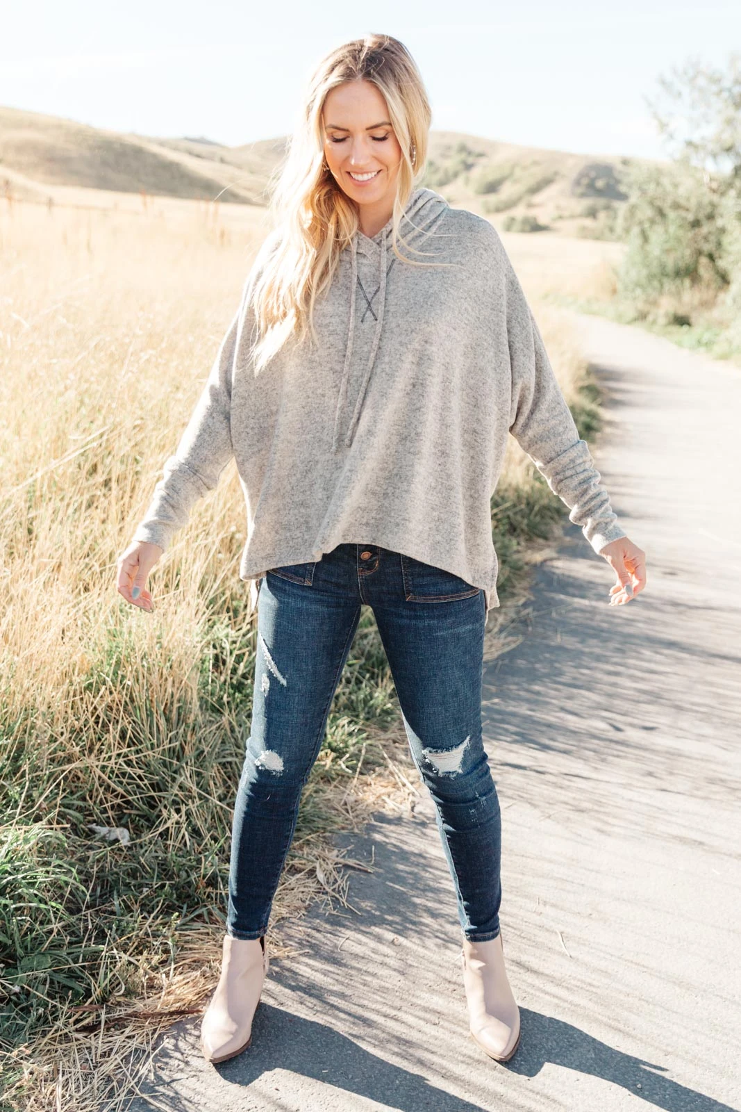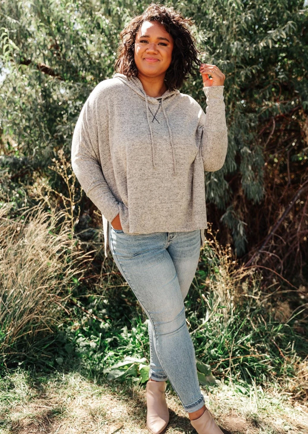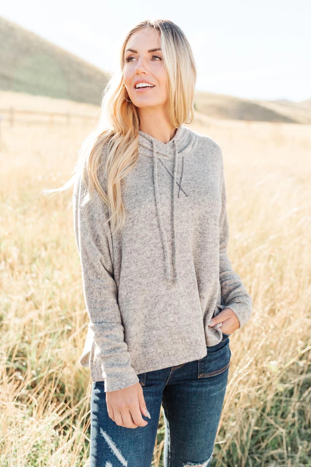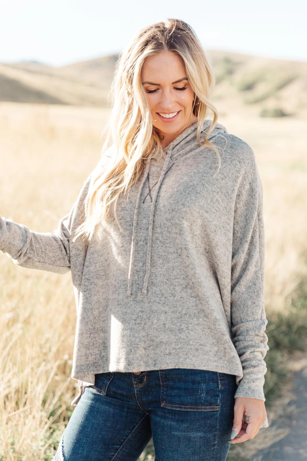 The Rolling Hills Top is the oversized hoodie of your dreams! This ultra soft top is so easy to throw on with jeans or joggers and will keep you feeling cozy all day long. Wear this hoodie and cuddle up at home or pair it with jeans and sneakers for a day out.