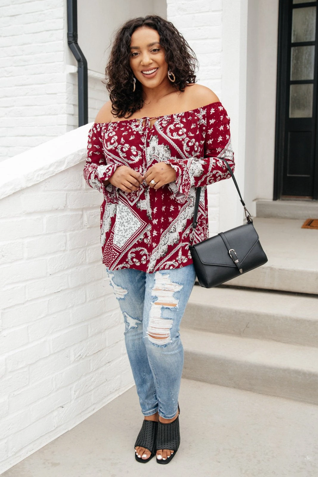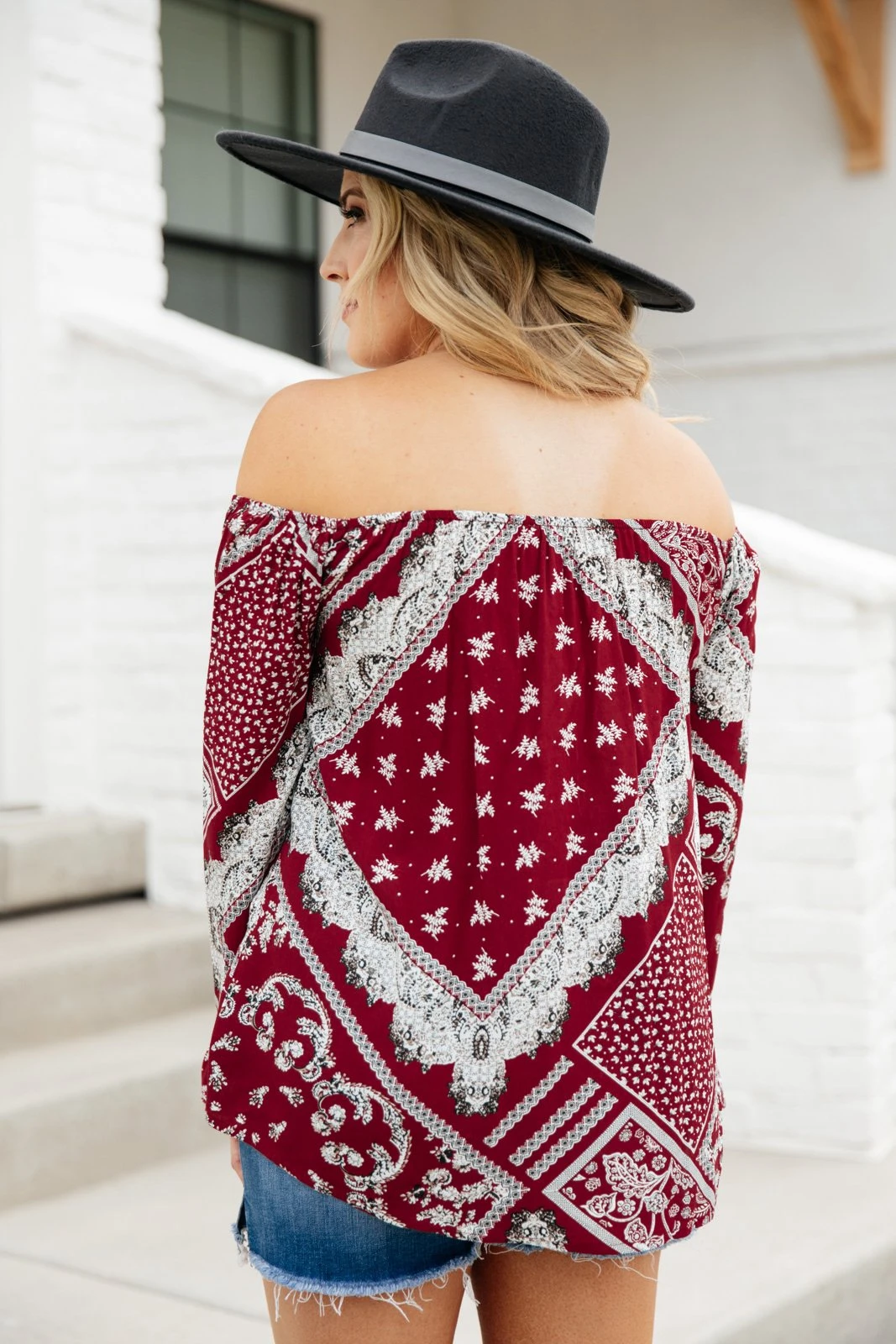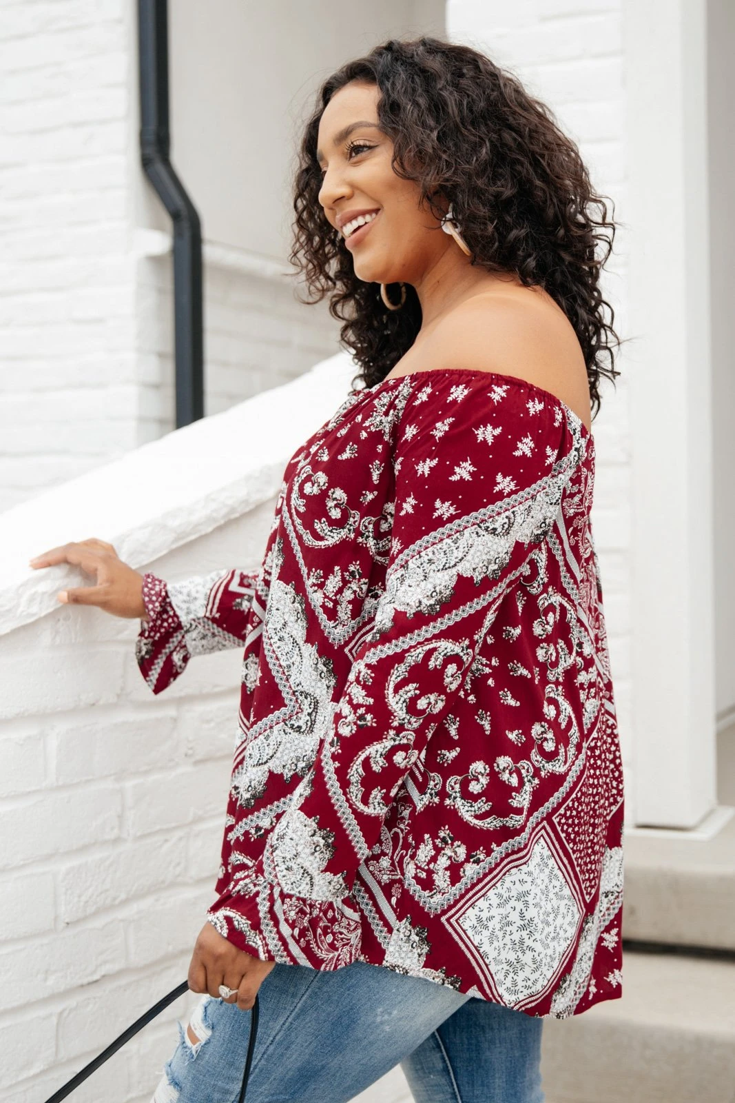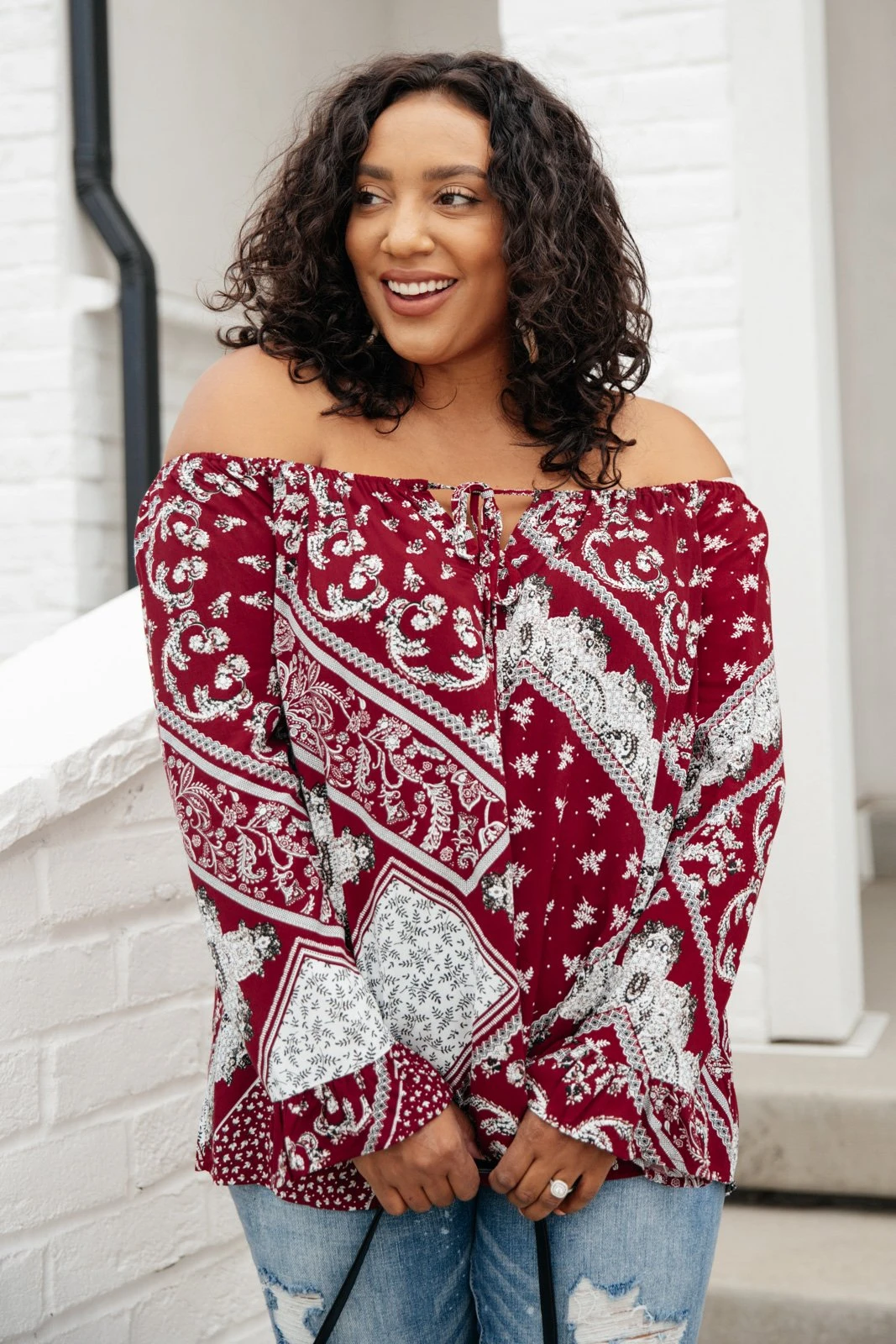 Keywords: Burgundy Top, Red Top, Off The Shoulder Top