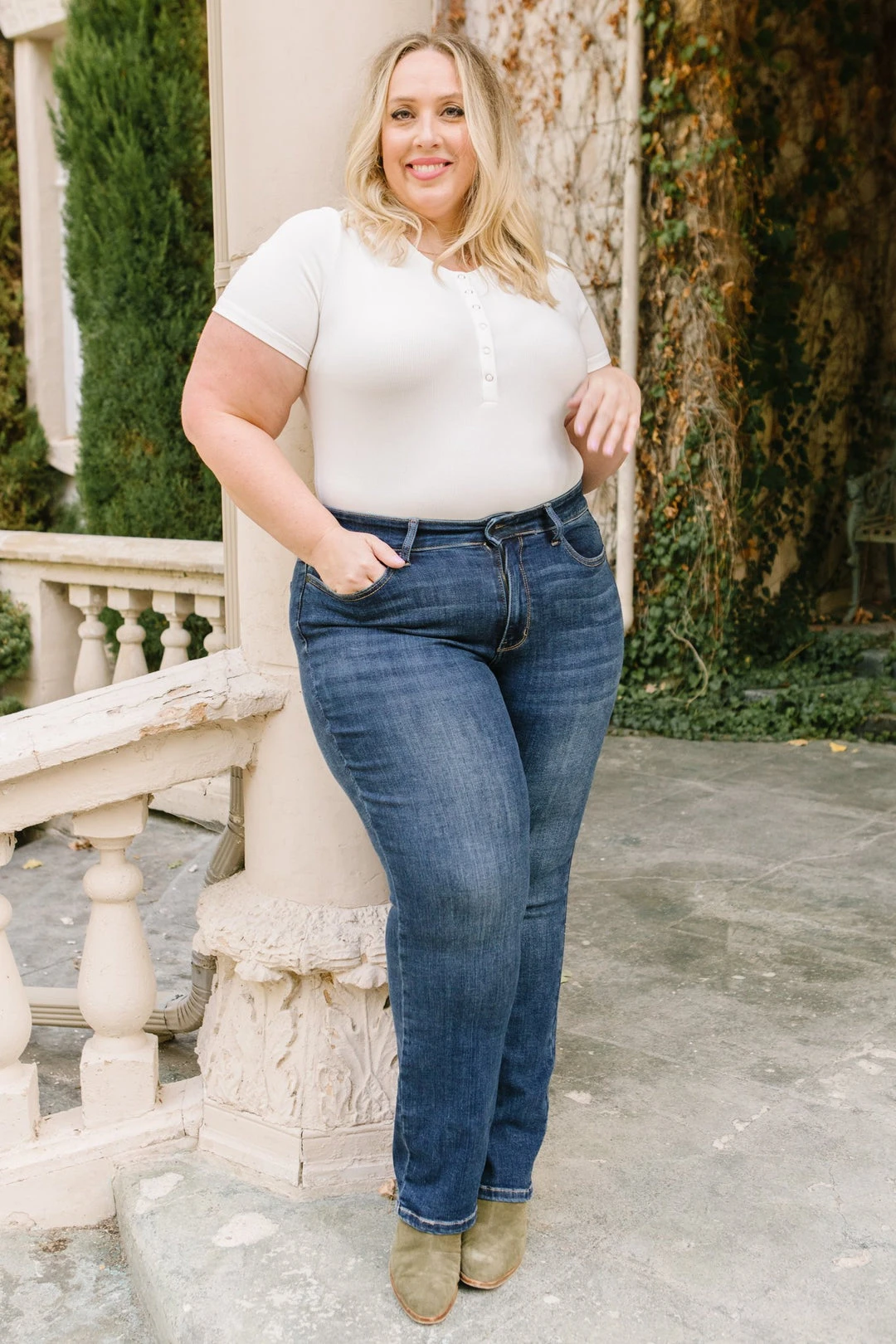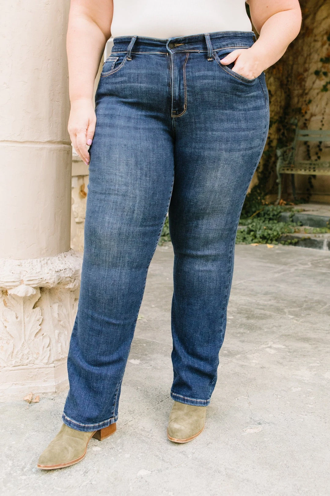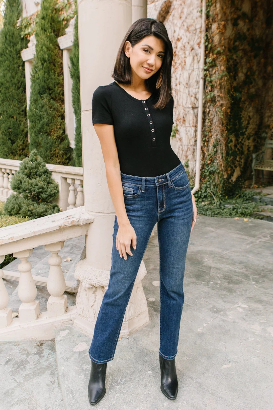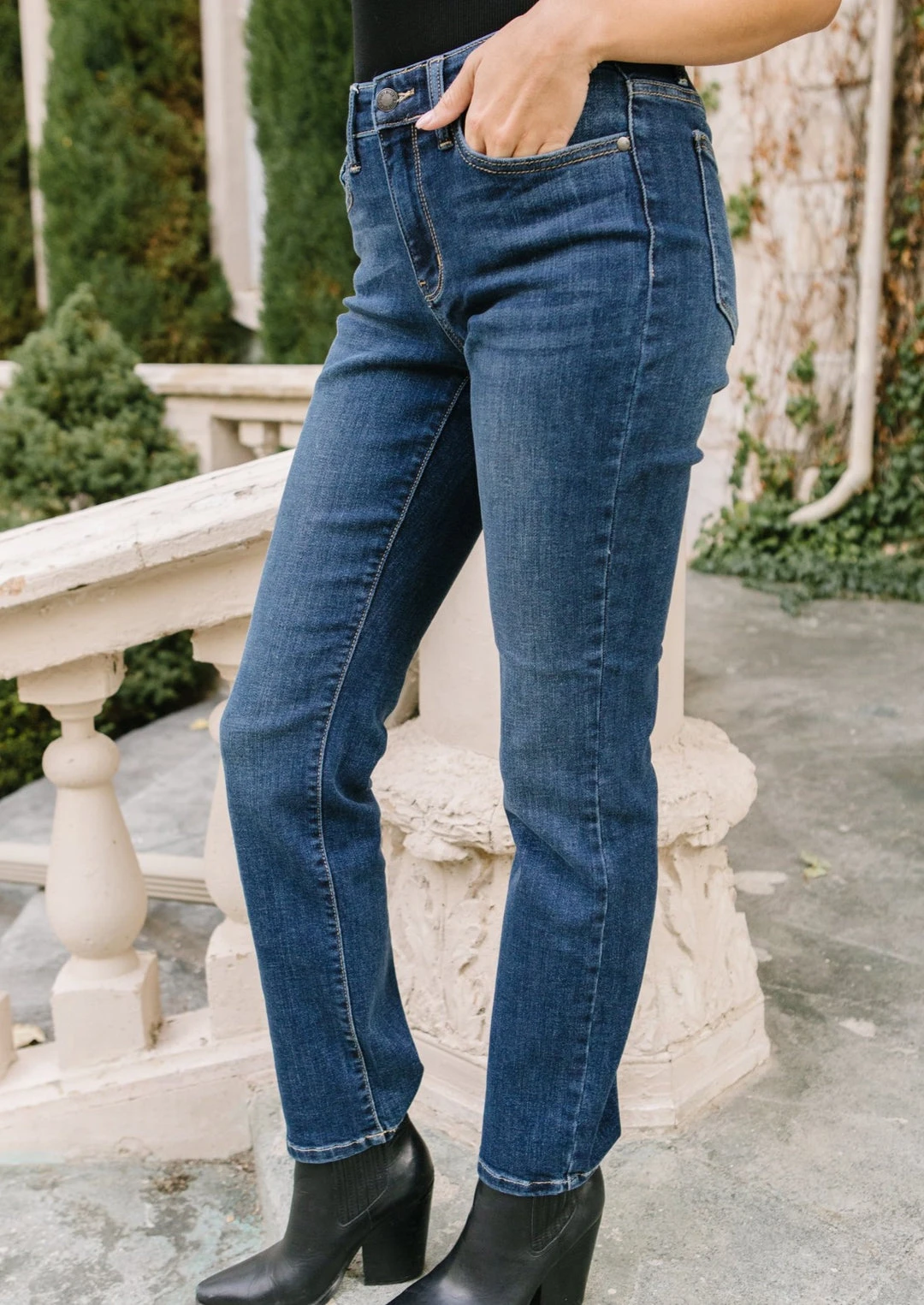 The Set The Record Straight Jeans are a straight leg jean with four way stretch. These adorable jeans are perfect for pairing with your favorite sweaters and ankle boots.