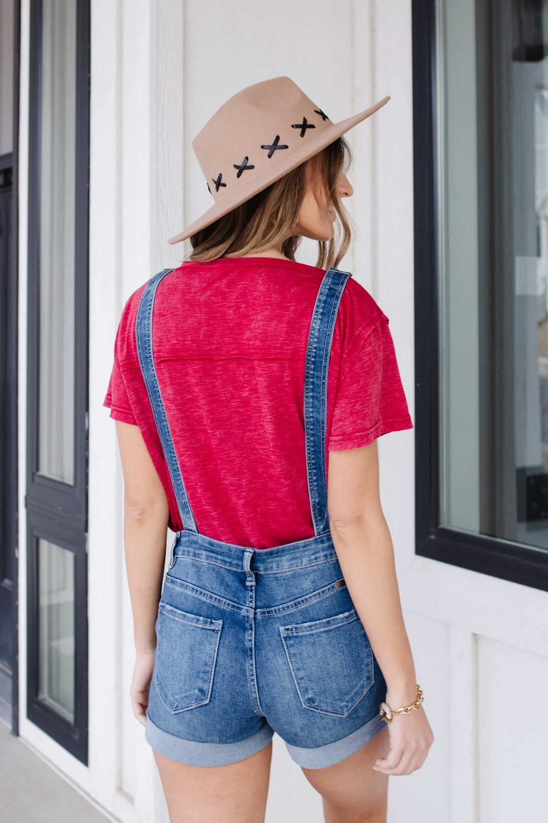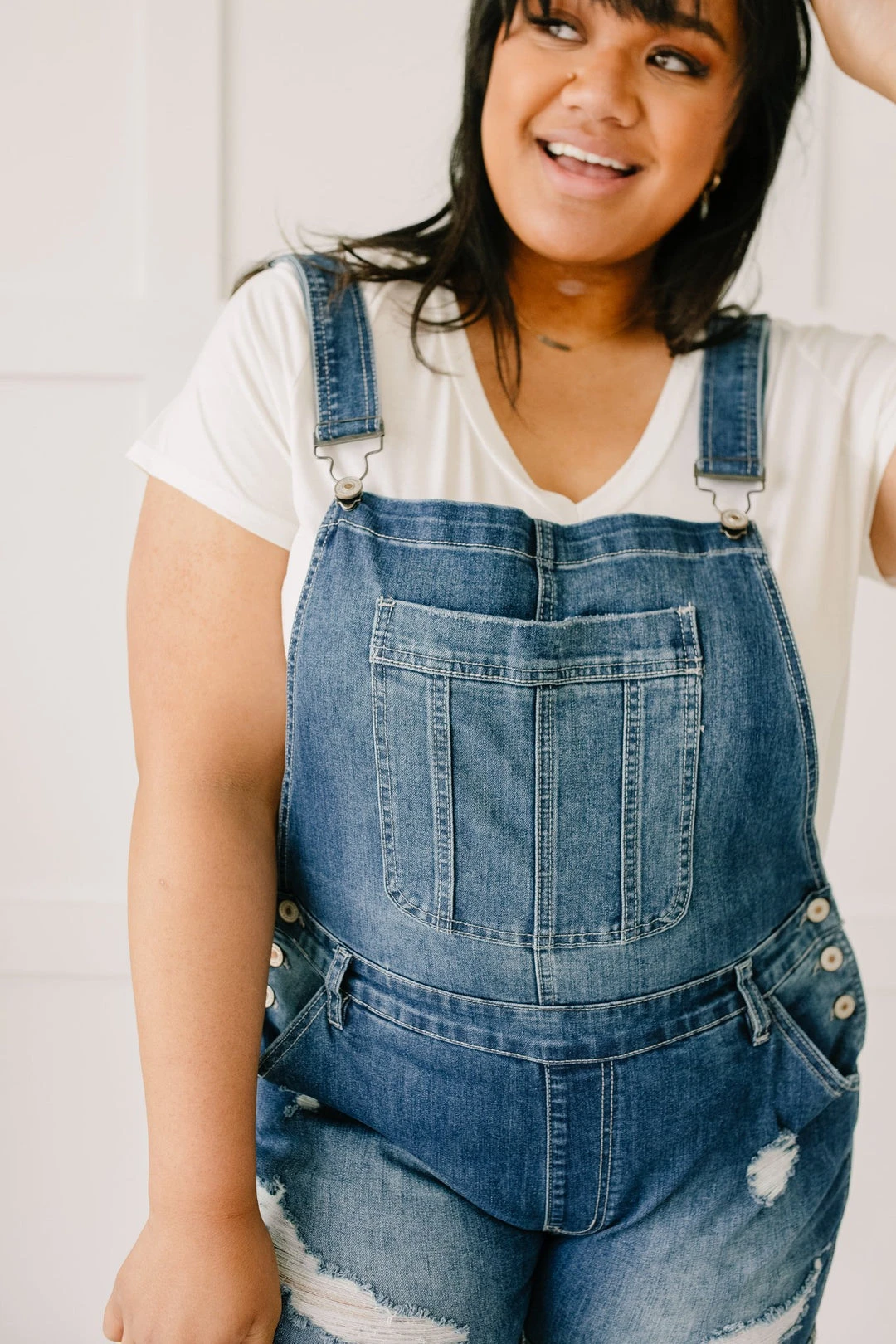 Denim shortalls are a staple piece for summer! These are from KanCan, which means they are stretchy and will also hug your curves in the best ways! The medium wash is with distressing detail is perfect for styling numerous ways. Add a little kick to your look with this super fun style!