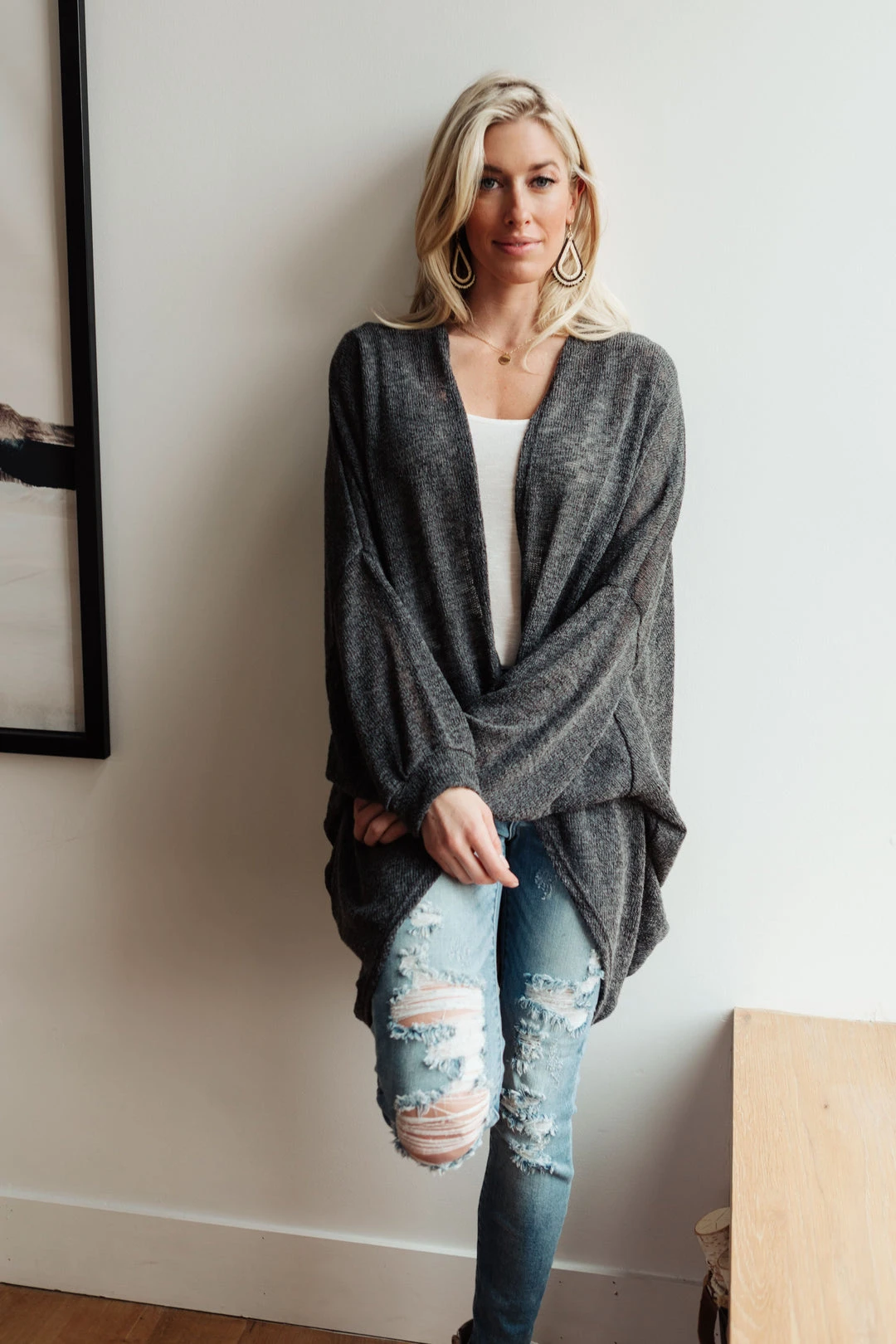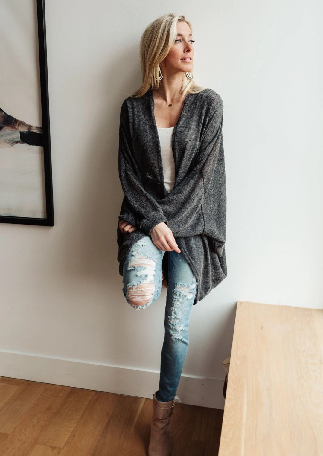 - Crafted from high-quality materials, this Charcoal Cardigan offers warmth and durability. The slouchy design adds a trendy, laid-back vibe to your look.