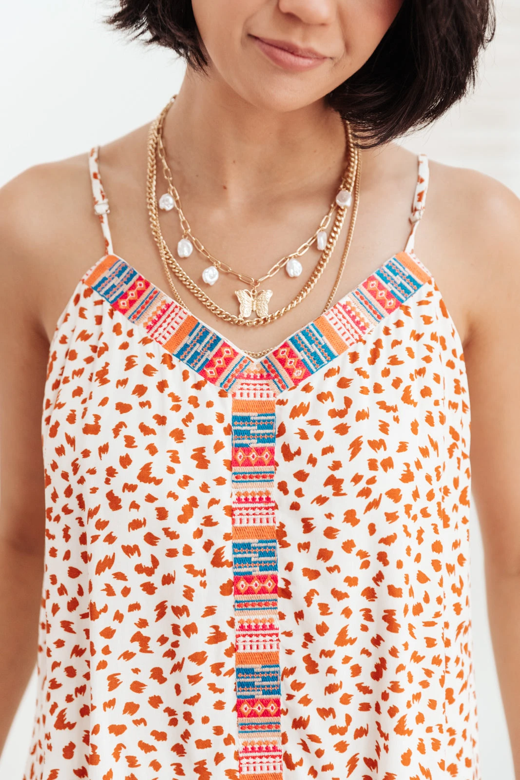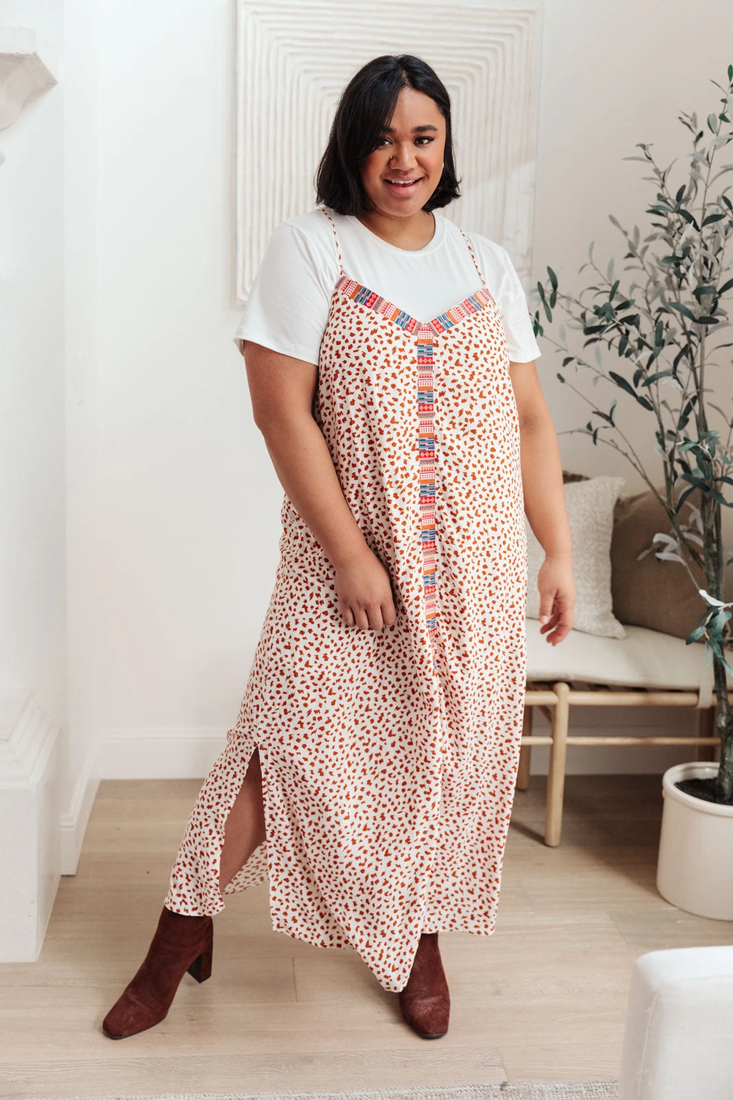 Keywords: Maxi Dress, Spaghetti Straps, Side Slit, Animal Print, Embroidery