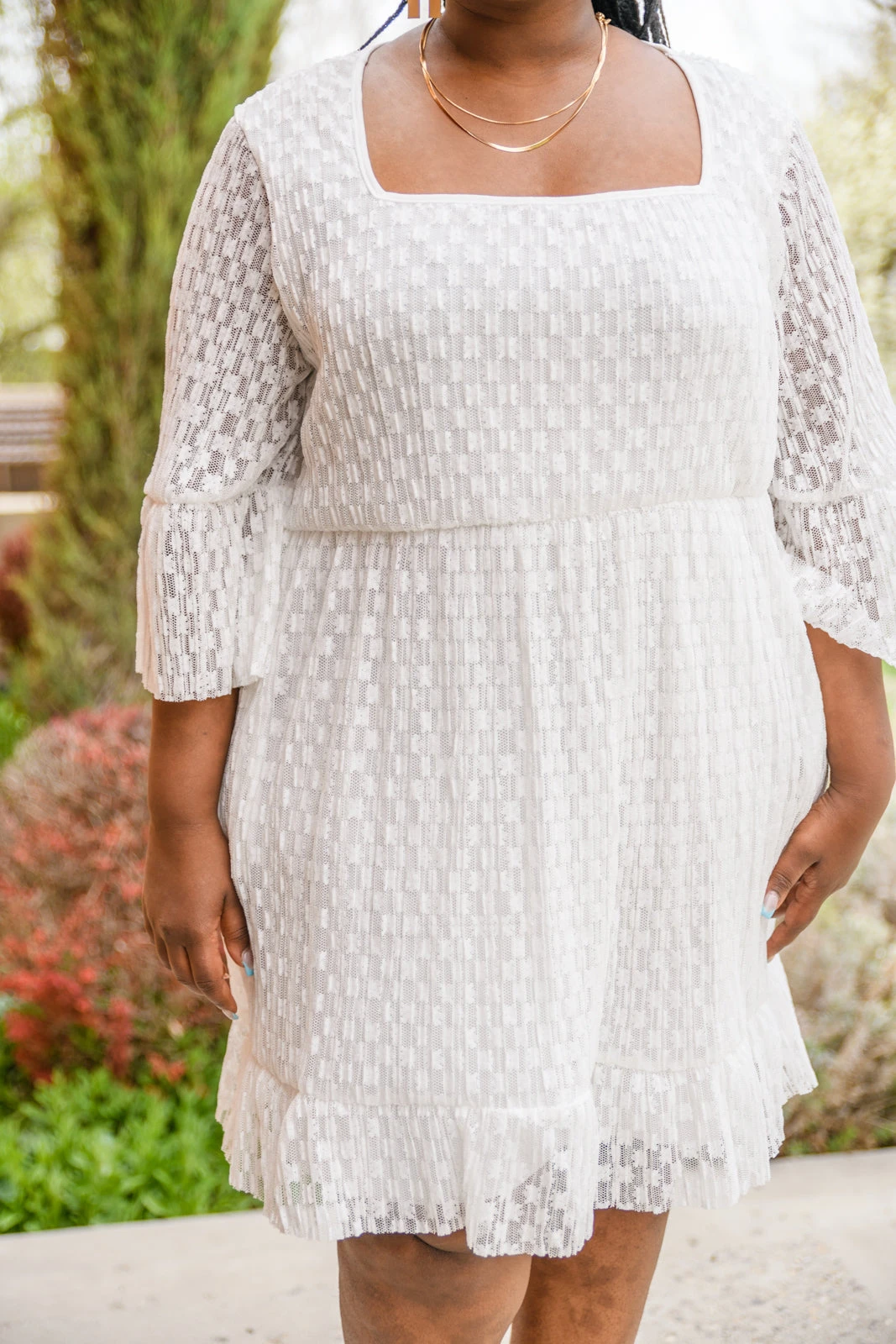 Make your entrance one to remember in the So Peaceful White Dress! We’re obsessing over this accordion floral lace fabric that shapes a square neckline, three quarter sleeve with ruffle cuffs, side pockets, and ruffle hem. These details have created the perfect dress that people will never forget!
