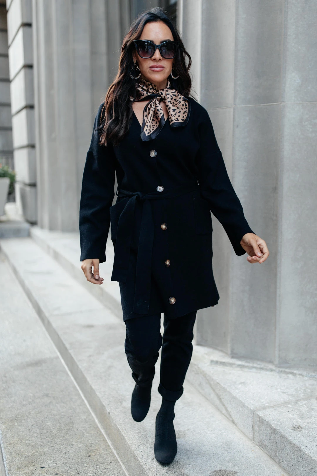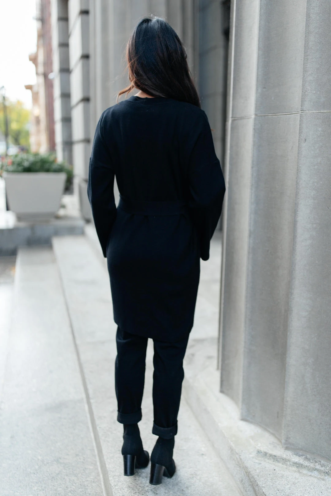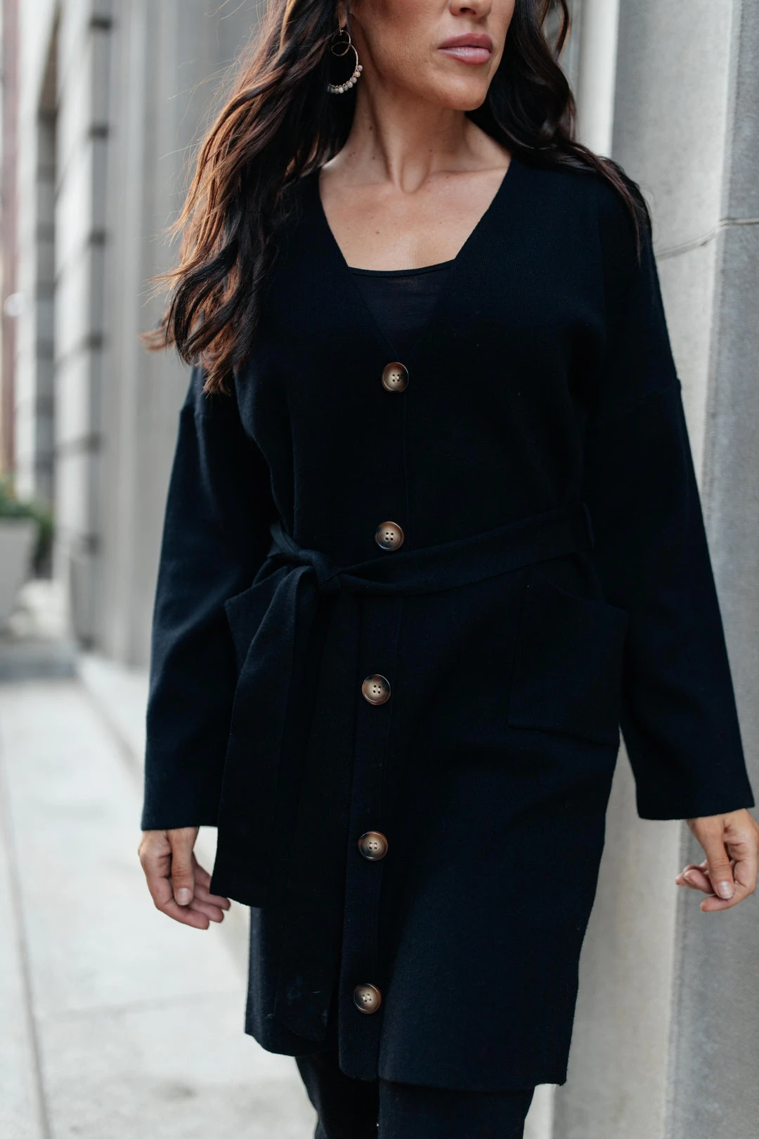 Keywords: Black Cardigan, Long Cardigan, Button Up Cardigan