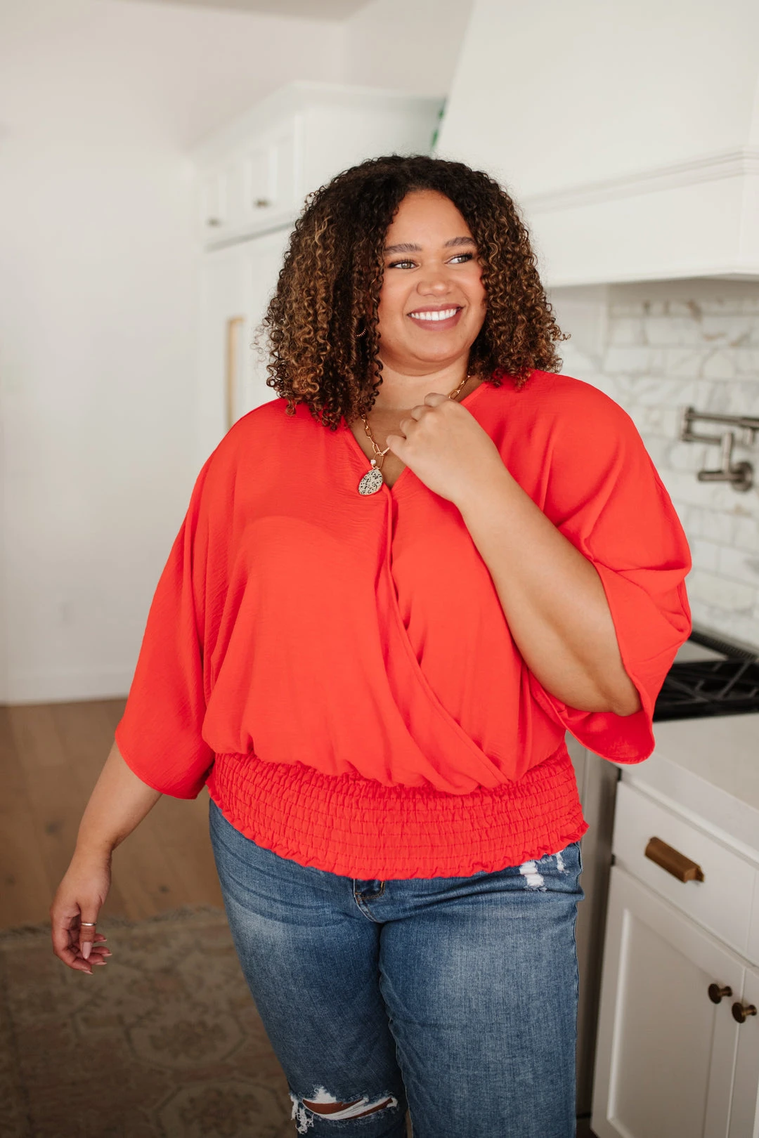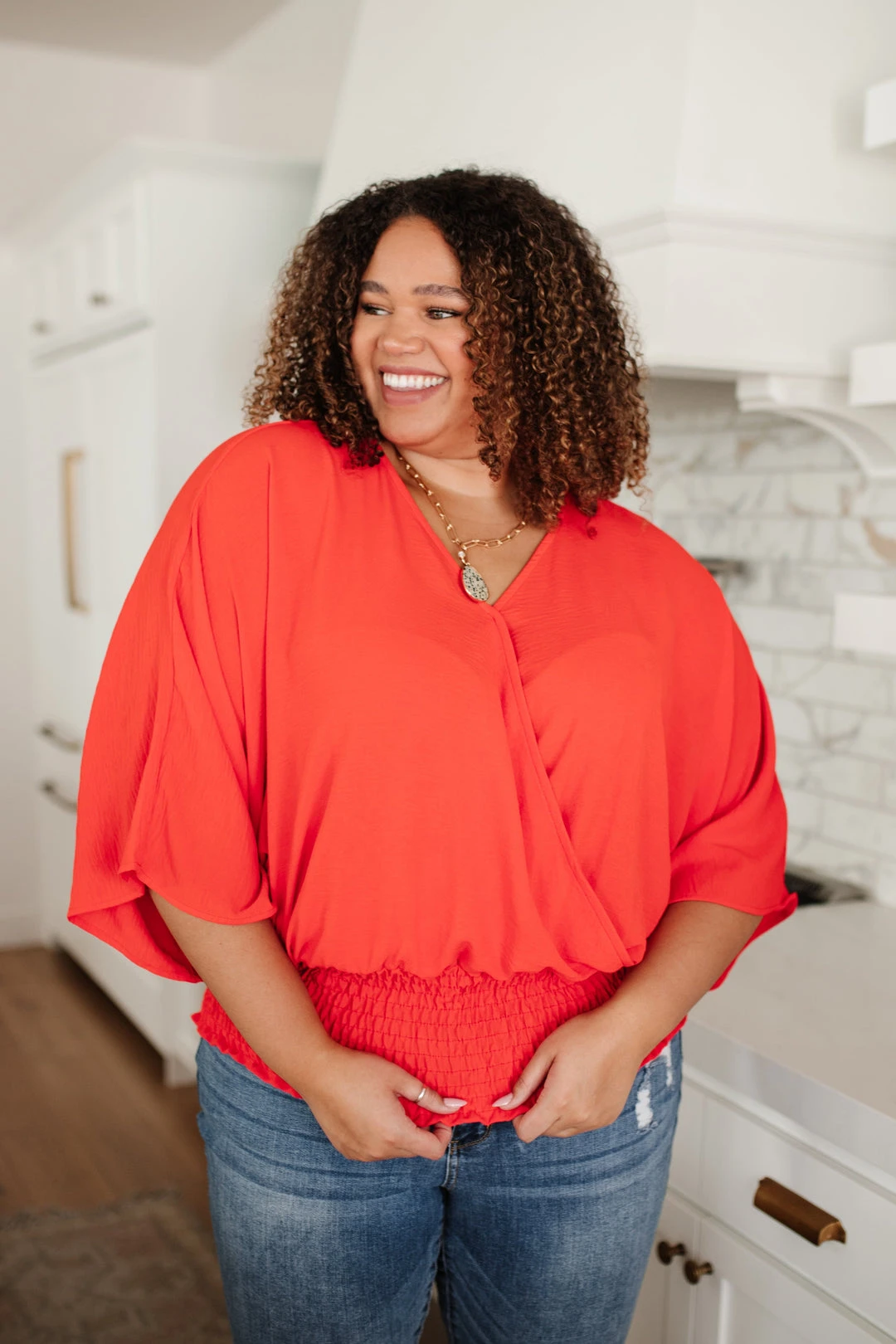 Can’t find anything to wear to your next outing? Don’t worry the Soul Searching Top has you covered! In a stunning coral, with a surplice neckline, ruched waistband, and kimono style sleeves, this will pair perfect with your fav jean shorts and sandals!