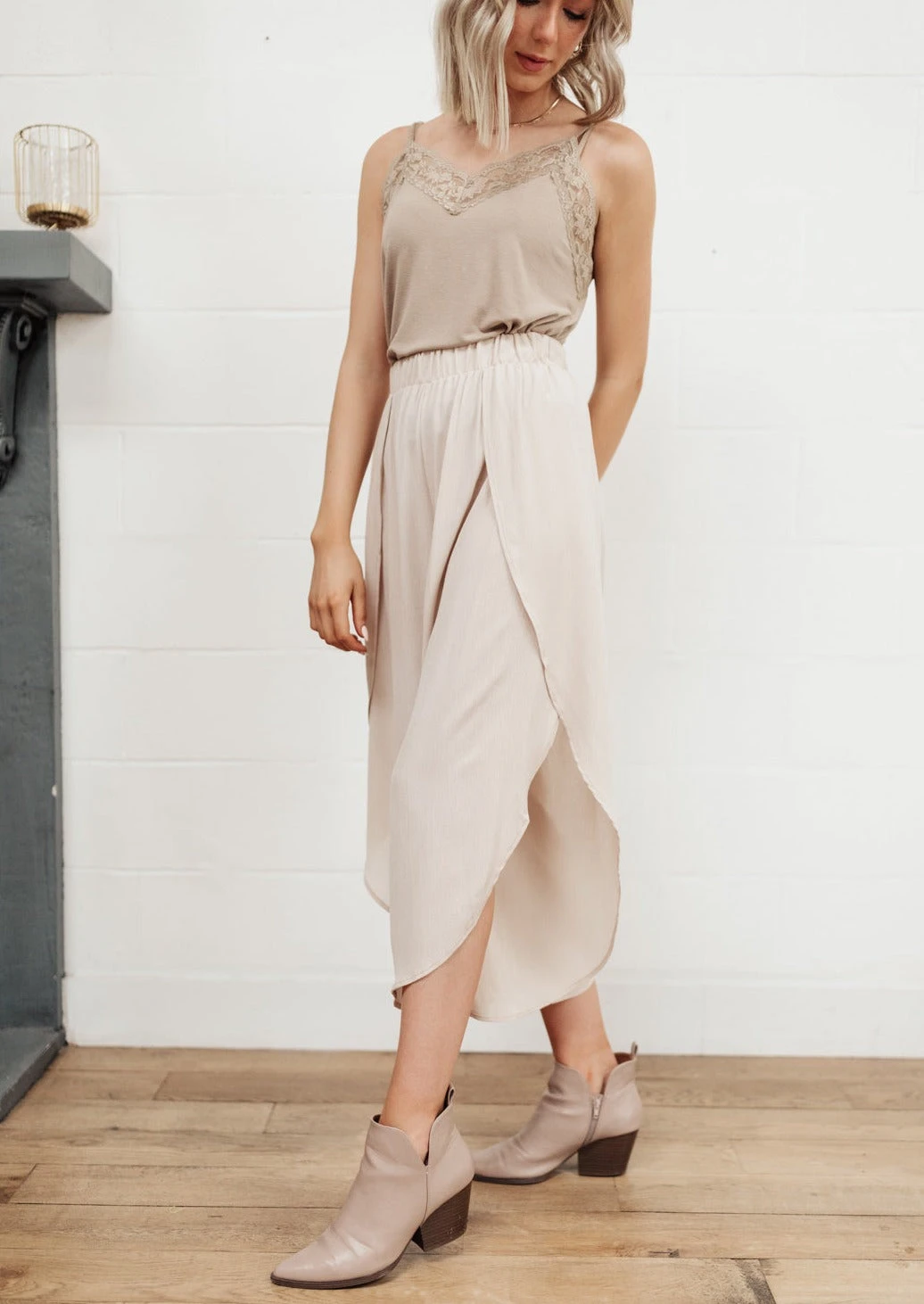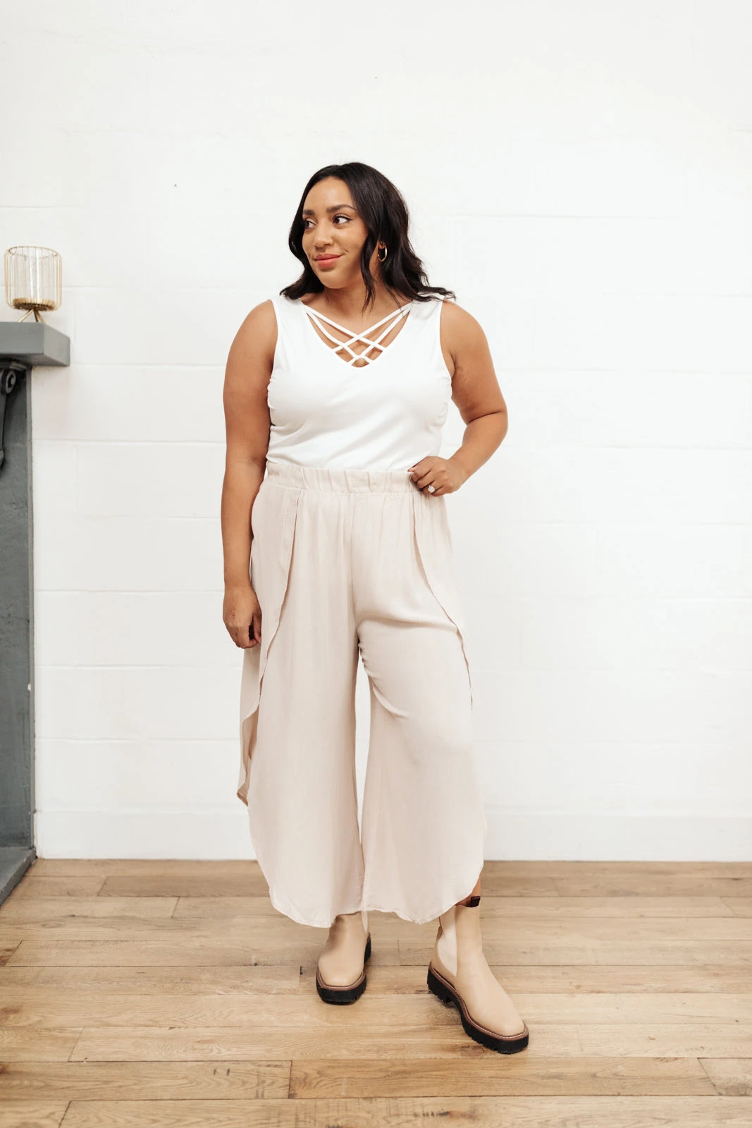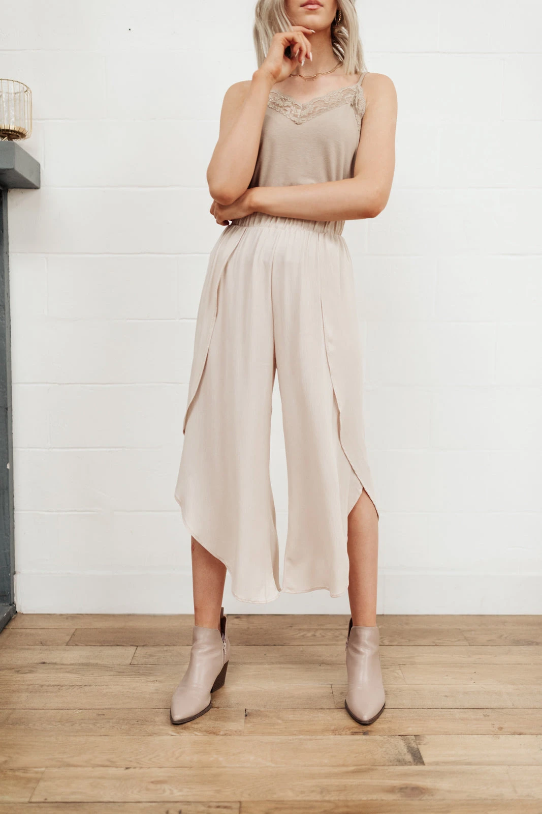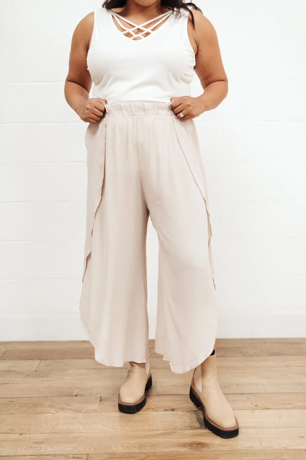 A beach vacay is calling your name, add a little flair to your suitcase with the Spring Dream Pants. Lightweight, woven fabric shapes these flowy pants. Featuring a wide cut, and slits that run all the way up the side and cross over for coverage. We love this paired with your fav bikini or tank and sandals for a beachy, chic fit!