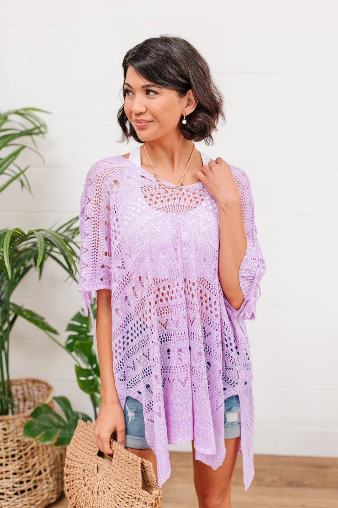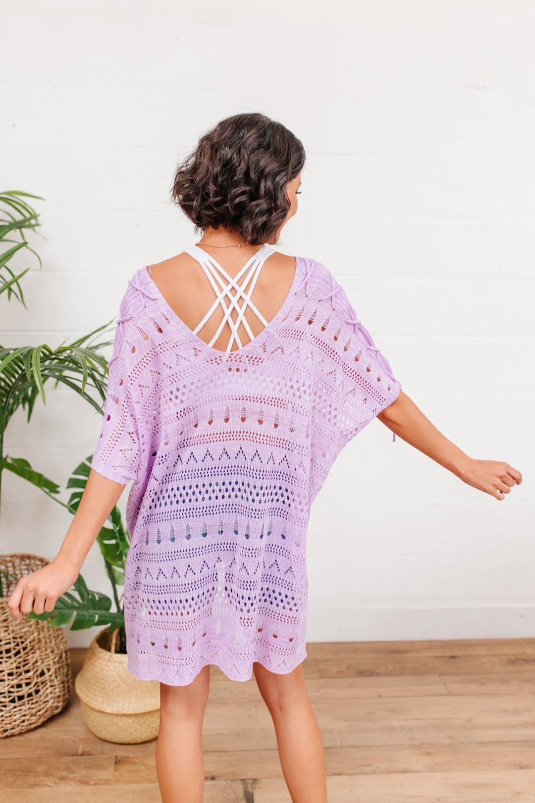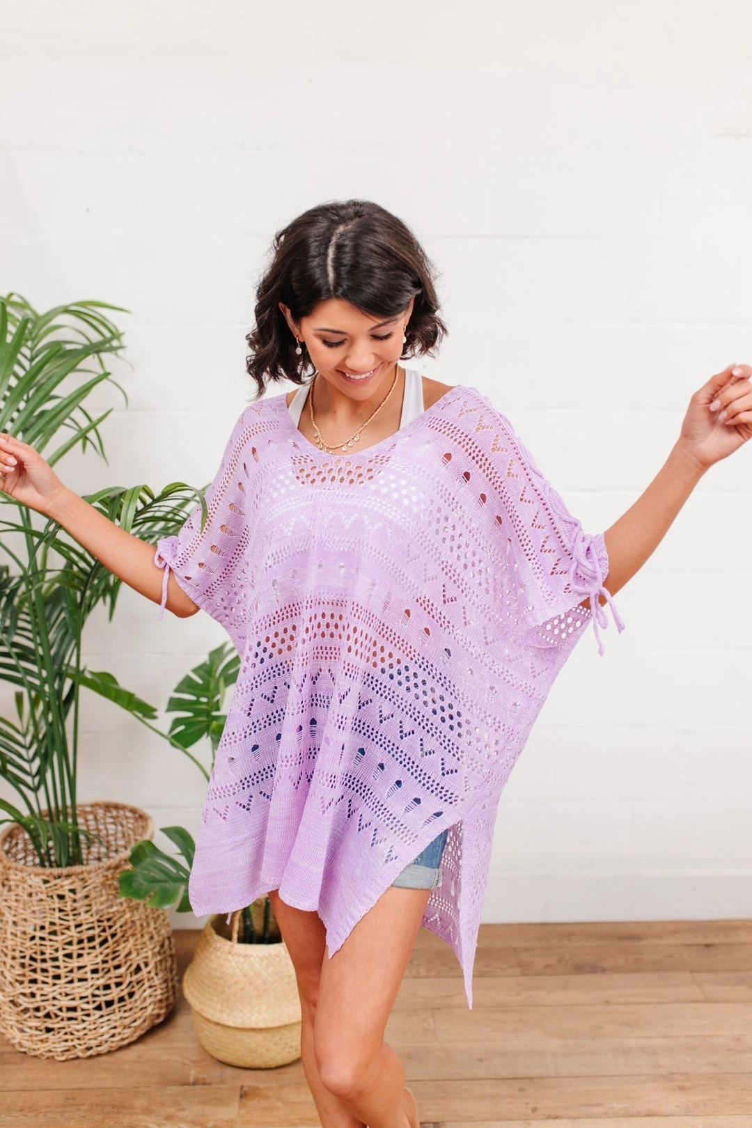 We’re spending all day at the pool in the Sunkissed Cover Up! This knit style cover up features a geometric cut out all over, lace up shoulder detail, and a split hem! Throw it on top of your bikini and head to the pool!