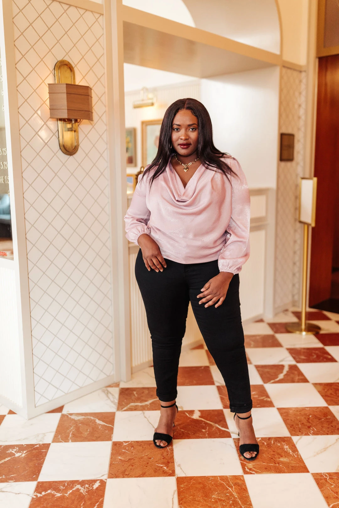 Keep your style up to date with The Swift Elegance Blouse! Soft and silky fabric are featured in this flirty top with a cowl neckline, blousy bodice and long balloon sleeves. Pair with leather pants and your favorite jewelry!