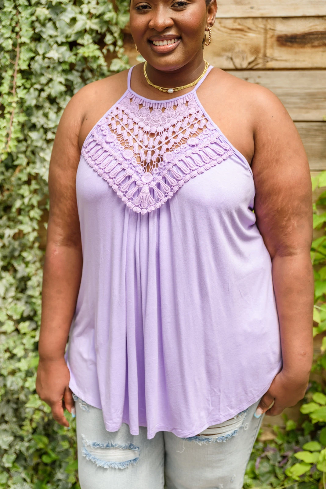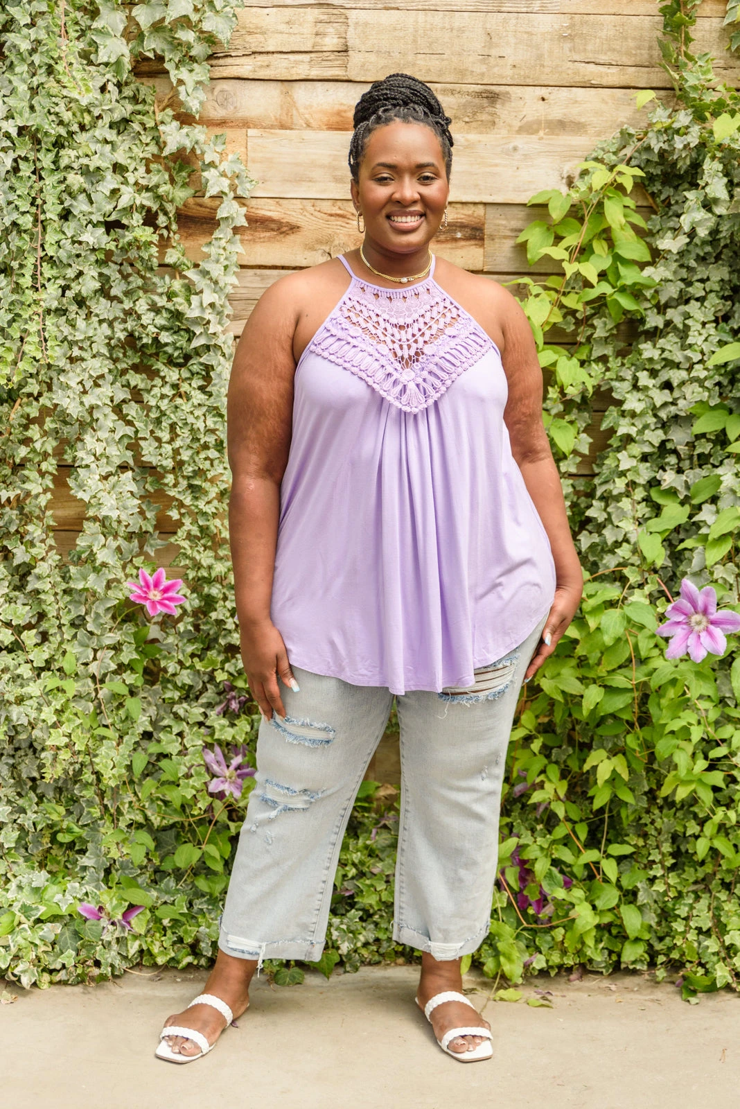 This halter neck style tank is going to be our go-to for summer parties! The gorgeous crochet neck detail and a-line silhouette gives us a classy yet boho vibe. Throw this on with your favorite white denim and you’ll be ready for your day!