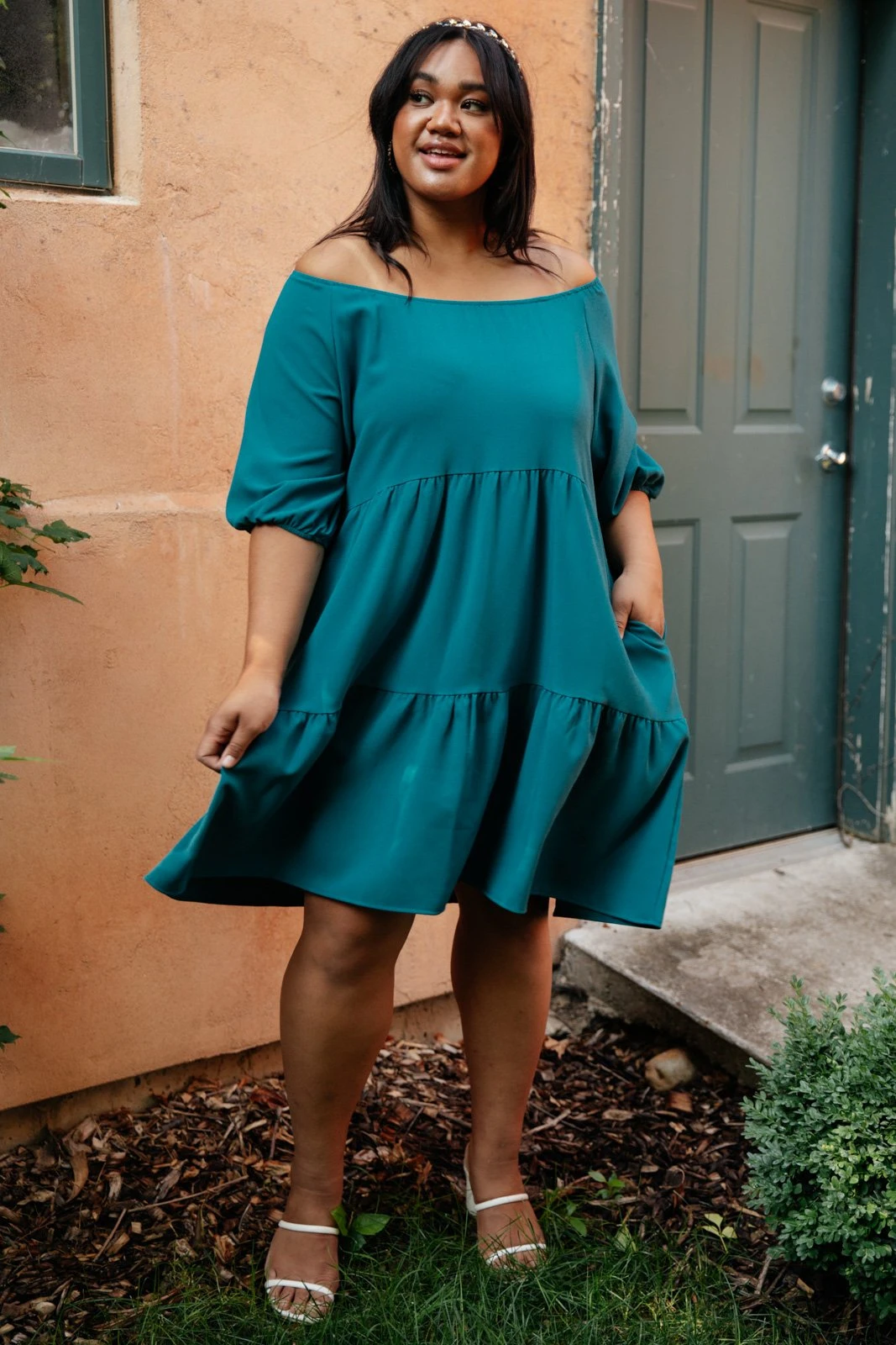 Keywords: Teal Dress, Blue Dress, Off The Shoulder Dress, Short Dress