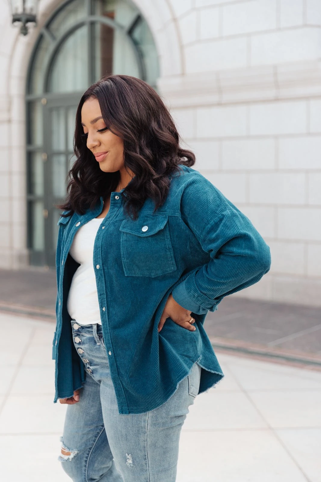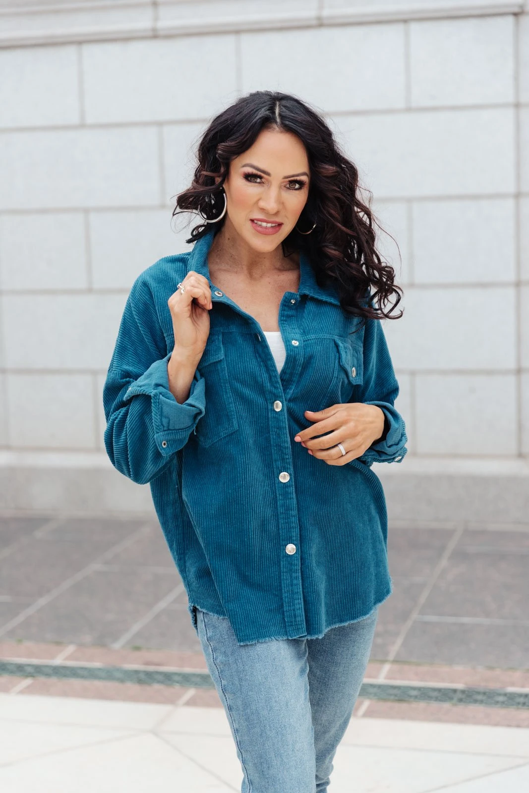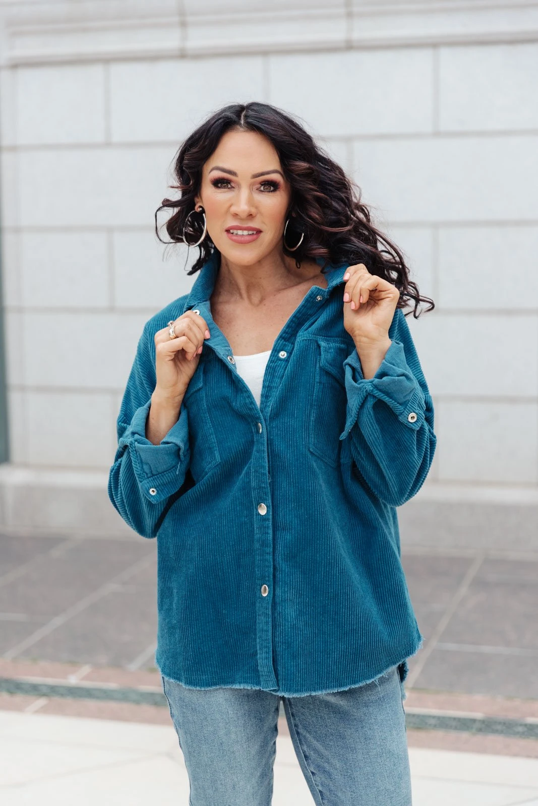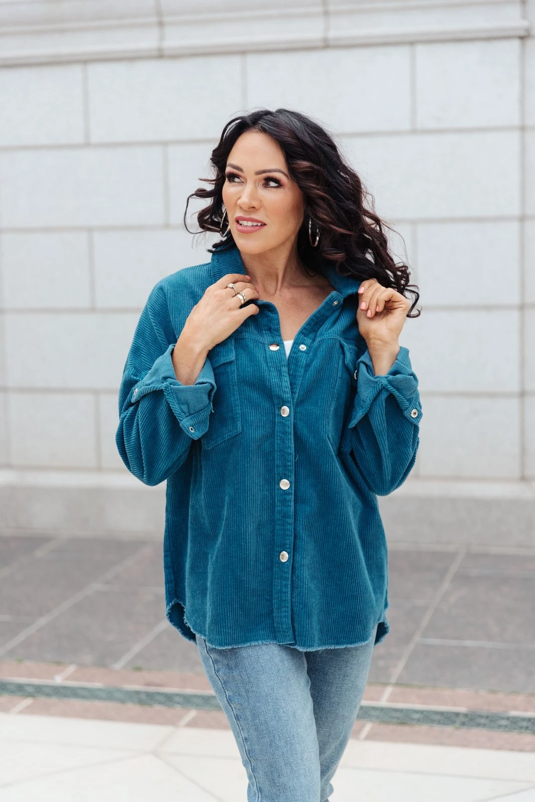 We’re so excited to share with you the The Tell Me After School Shacket! It’s our favorite layering item this season for casual days. You can pair it over a simple pair of jeans & a t-shirt or throw it on over a casual maxi dress! This classic corduroy shacket is complete with a button down front closure, front patch pockets, and a relaxed fit, through the body.
