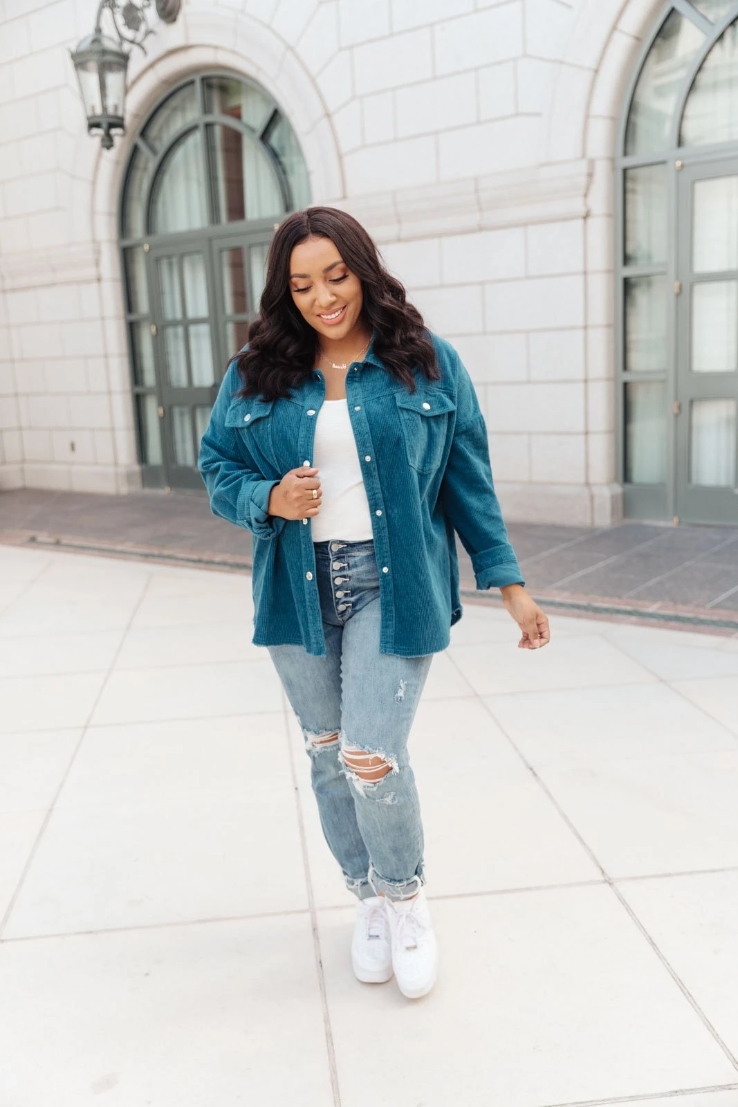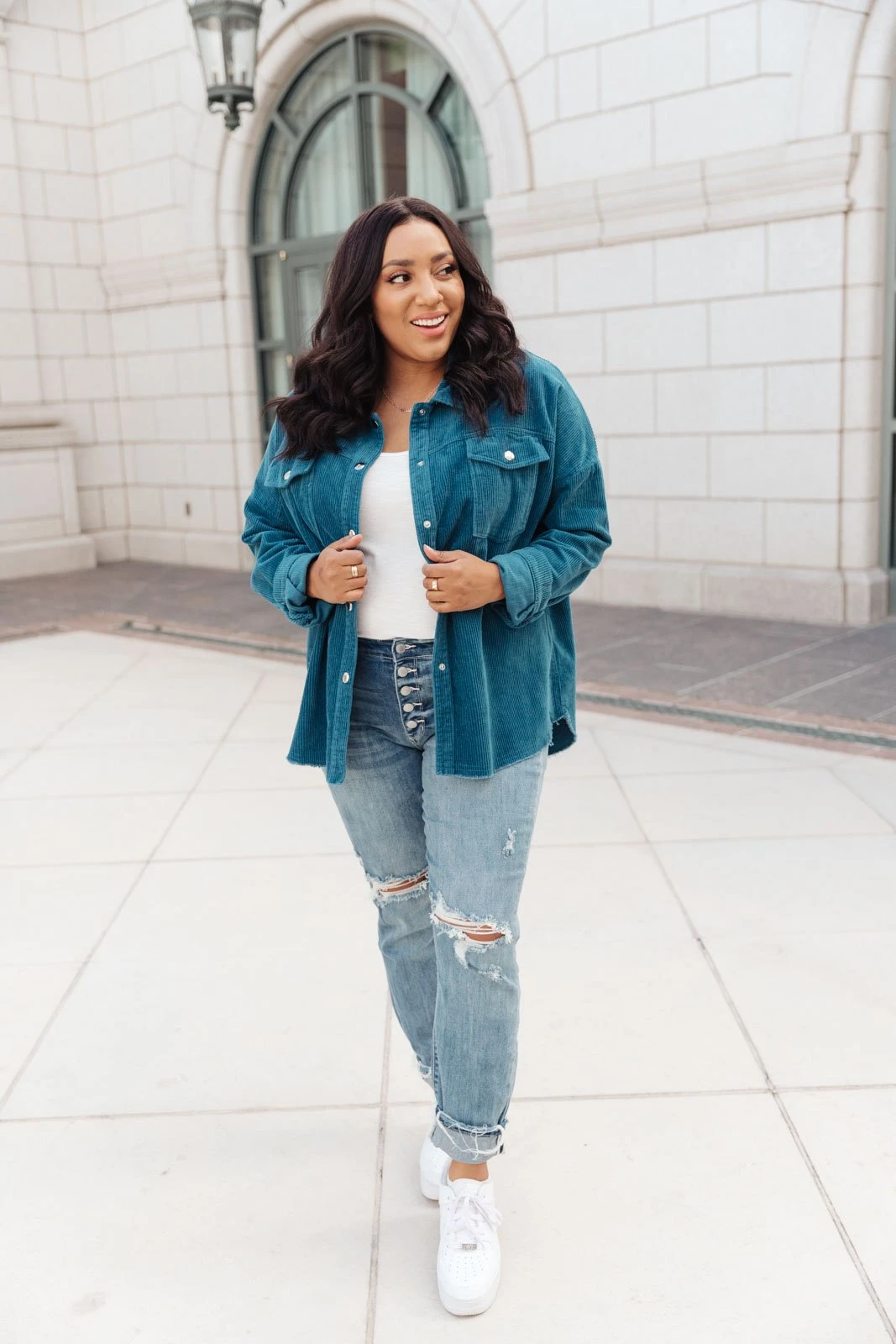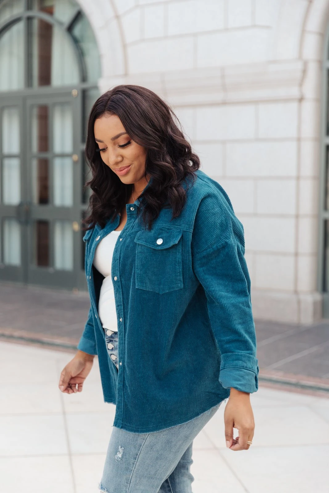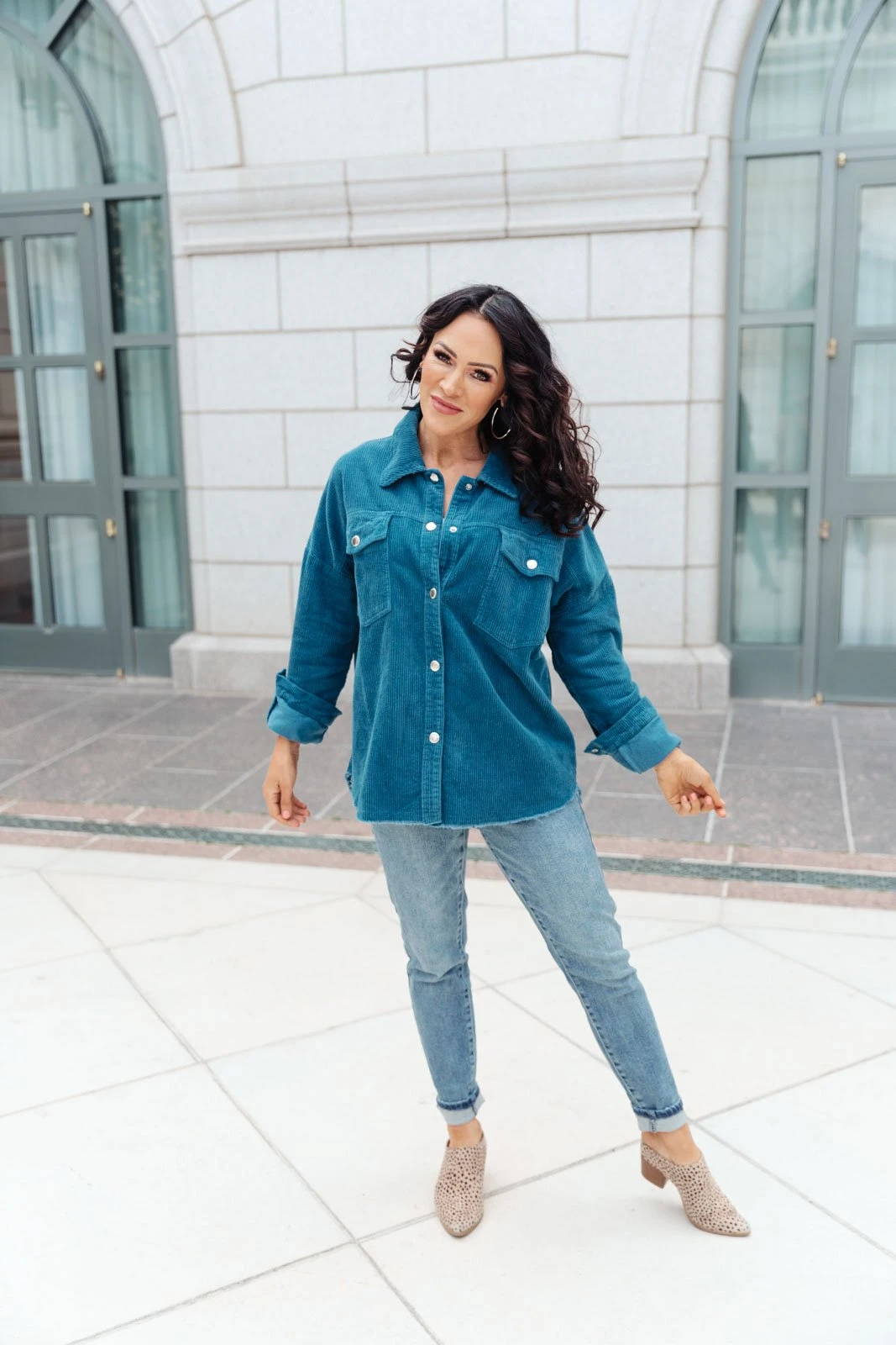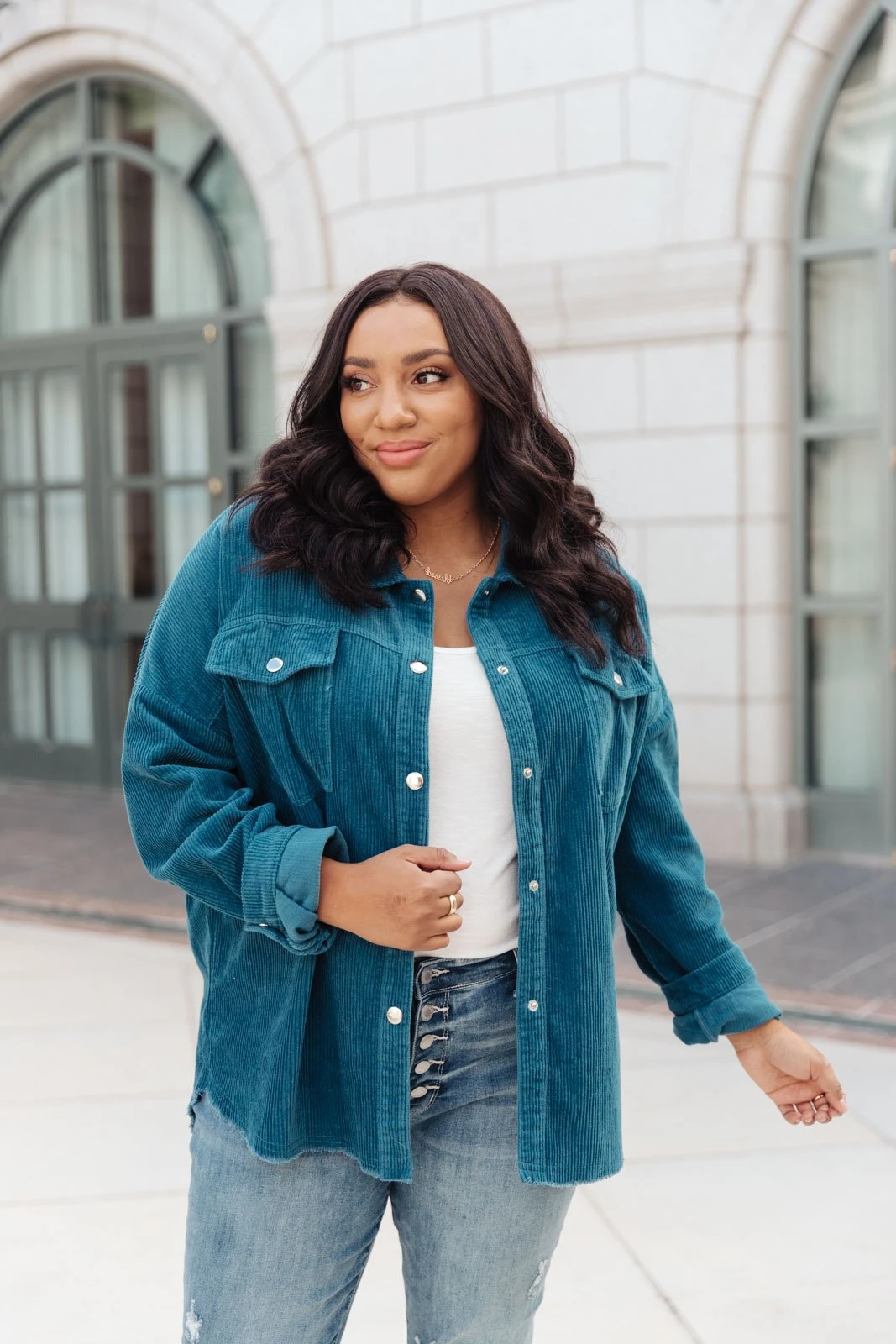 We’re so excited to share with you the The Tell Me After School Shacket! It’s our favorite layering item this season for casual days. You can pair it over a simple pair of jeans & a t-shirt or throw it on over a casual maxi dress! This classic corduroy shacket is complete with a button down front closure, front patch pockets, and a relaxed fit, through the body.