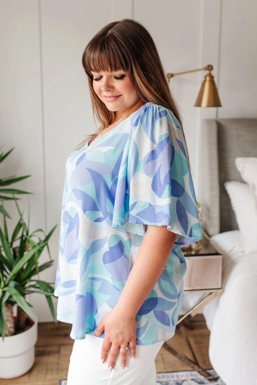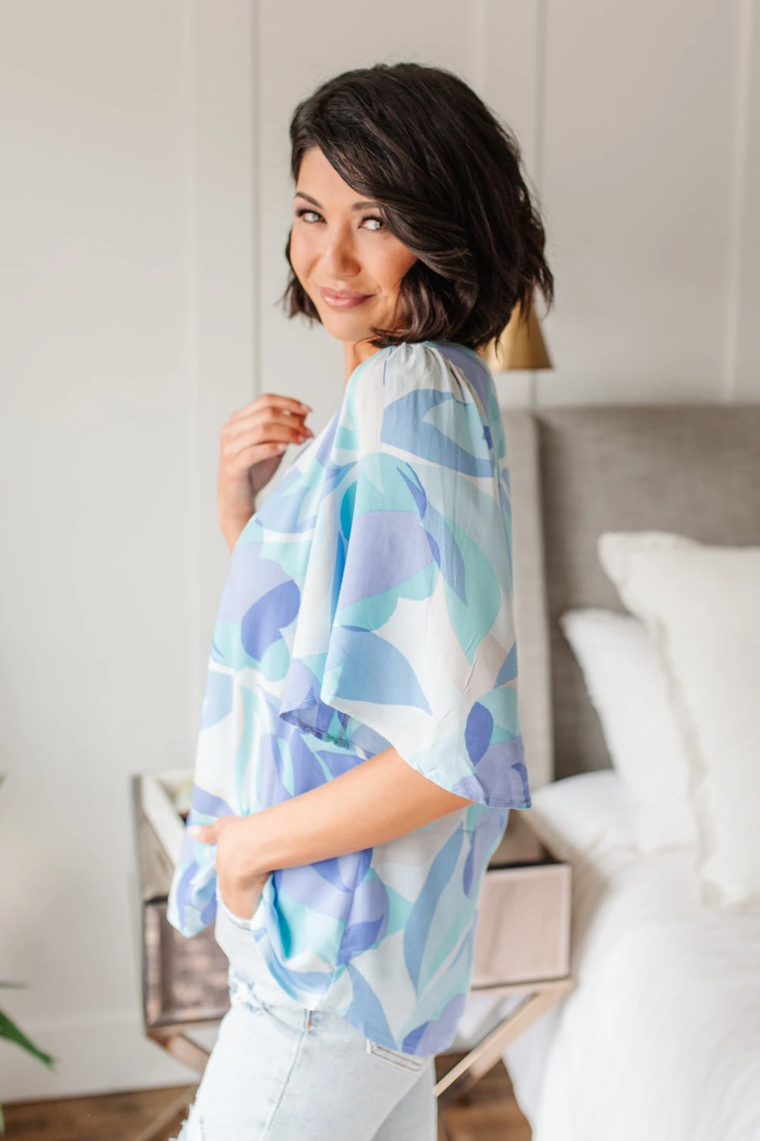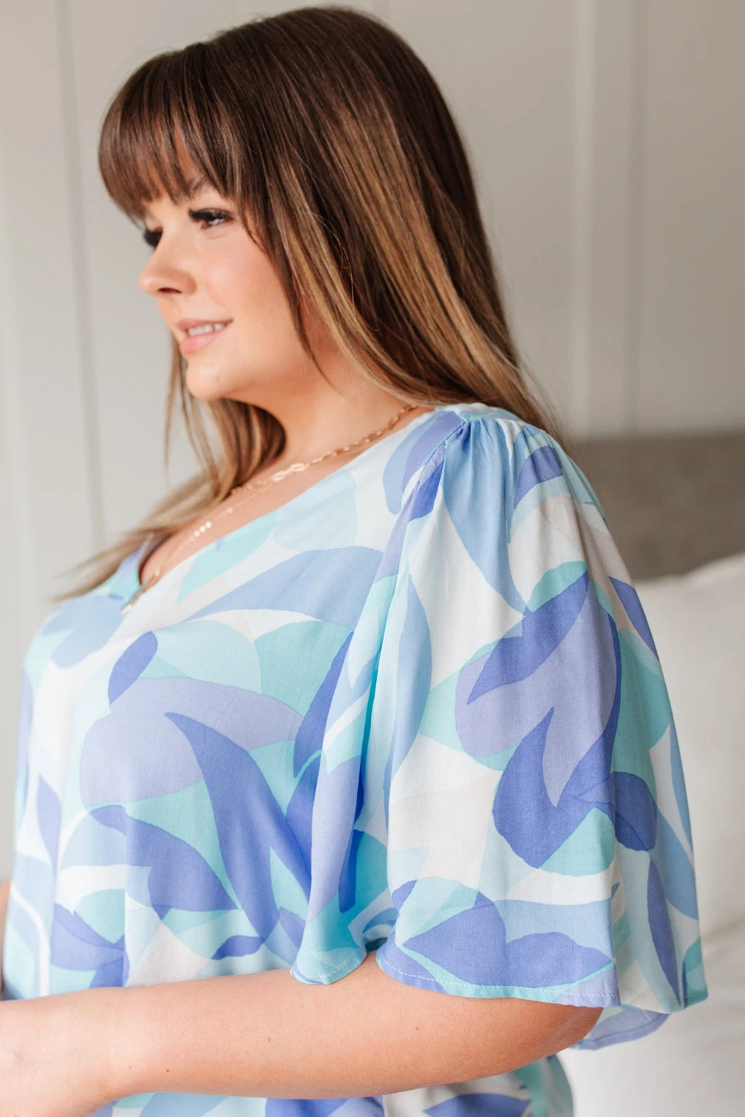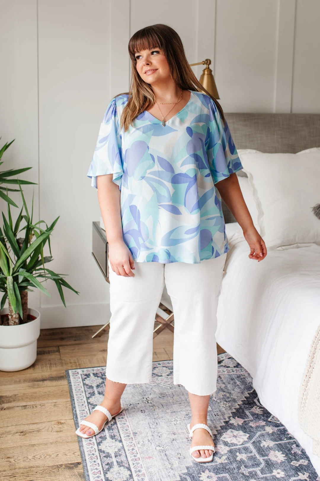 The Tropics Top has us craving the summer sun! This refreshing, colorful top features a v-neckline, flared circle sleeves, and a cool abstract leaf print all over. Pair this cute top with white denim and nude sandals for a darling summer look!