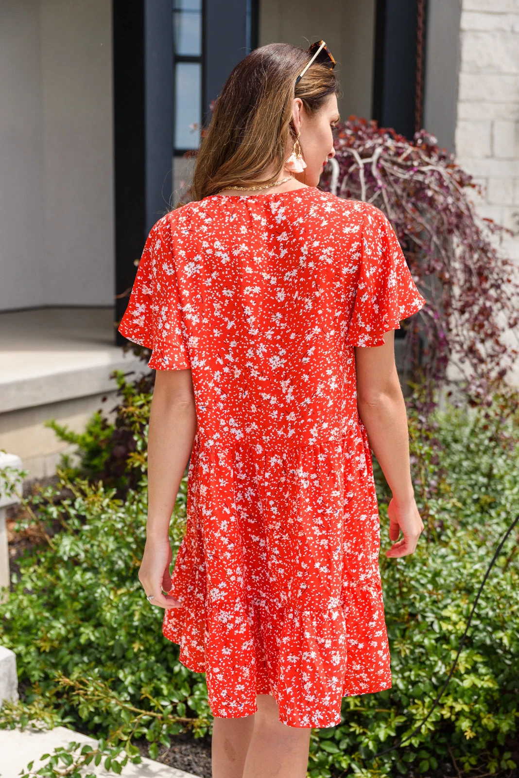 Keywords: Dress, Flowy, Red, Floral, Mini