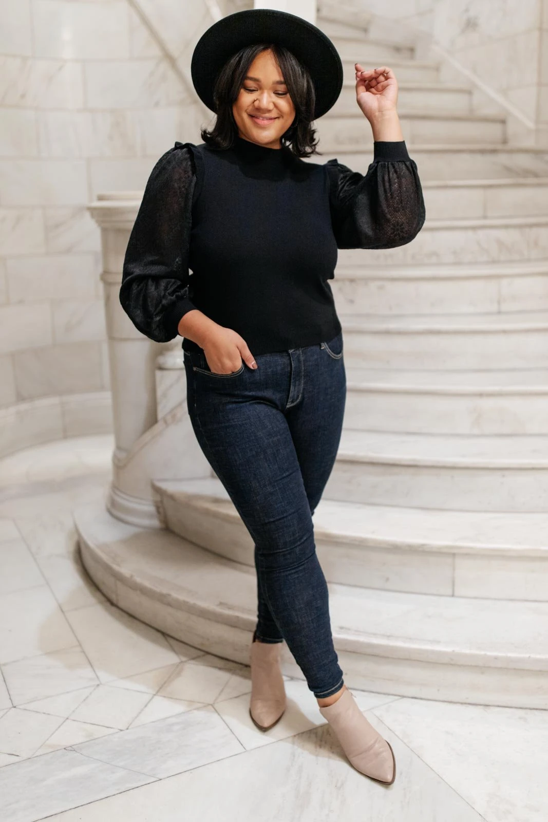 Keywords: Black Top, Long Sleeve Top, Puff Sleeve