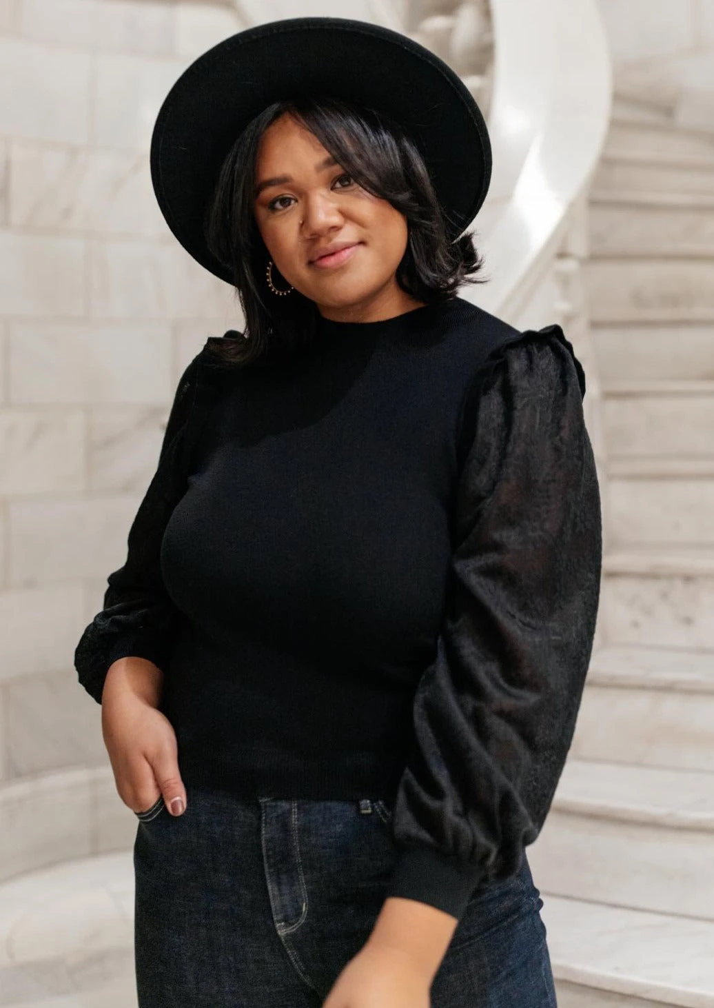 The Thrills And Frills Mock Neck Sweater has so many details to love! This top makes a statement with semi-sheer balloon sleeves that have a floral overlay-we can’t stop staring! The form fitting bodice compliments the puff sleeves so well, and the length is perfect for pairing with high waisted trousers.