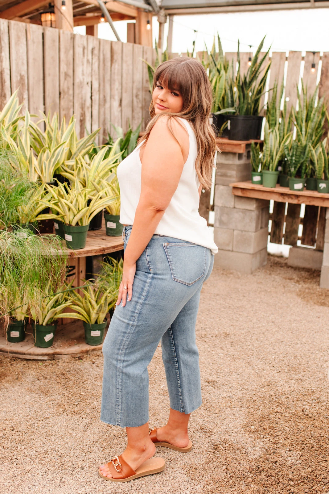 Were trading our skinny jeans for the Tilly Hi-Waisted Wide Leg Jeans! This cute summer staple features a light wash, stretchy denim that shapes a hi-waist, wide leg silhouette, with an ankle length cut. Pair these cute jeans with a summer blouse, and sandals for an adorable summer look!