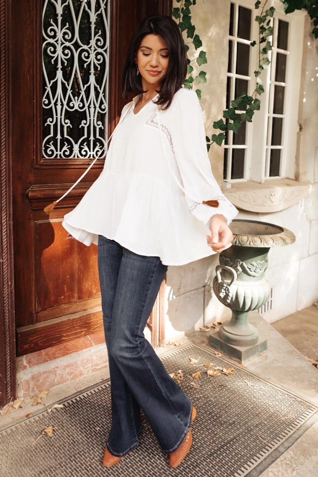 Keywords: Boho Top, Long Sleeve Top, White Top