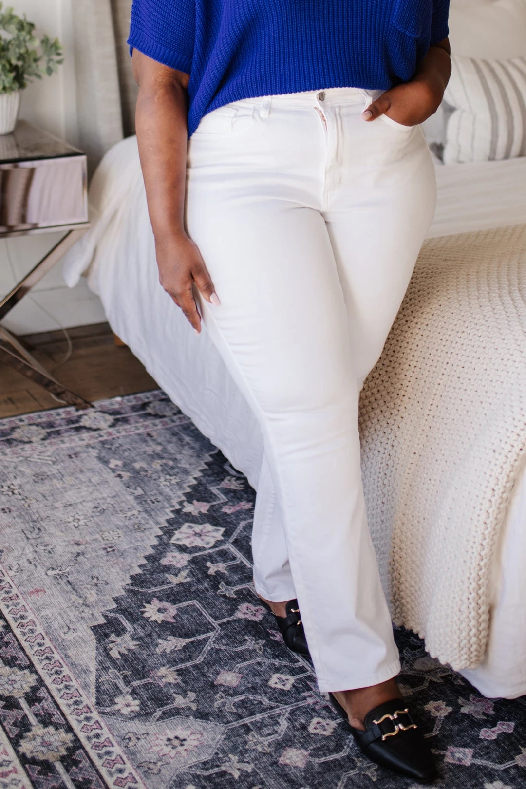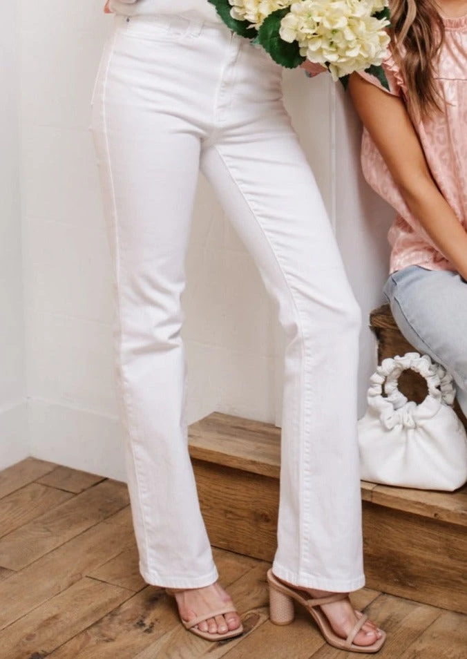 White jeans for spring/summer are an absolute must and the Pure White High Waist Boot Cut Jeans are the perfect pair! Pair this with your fav booties and a colorful top for an adorable spring look!