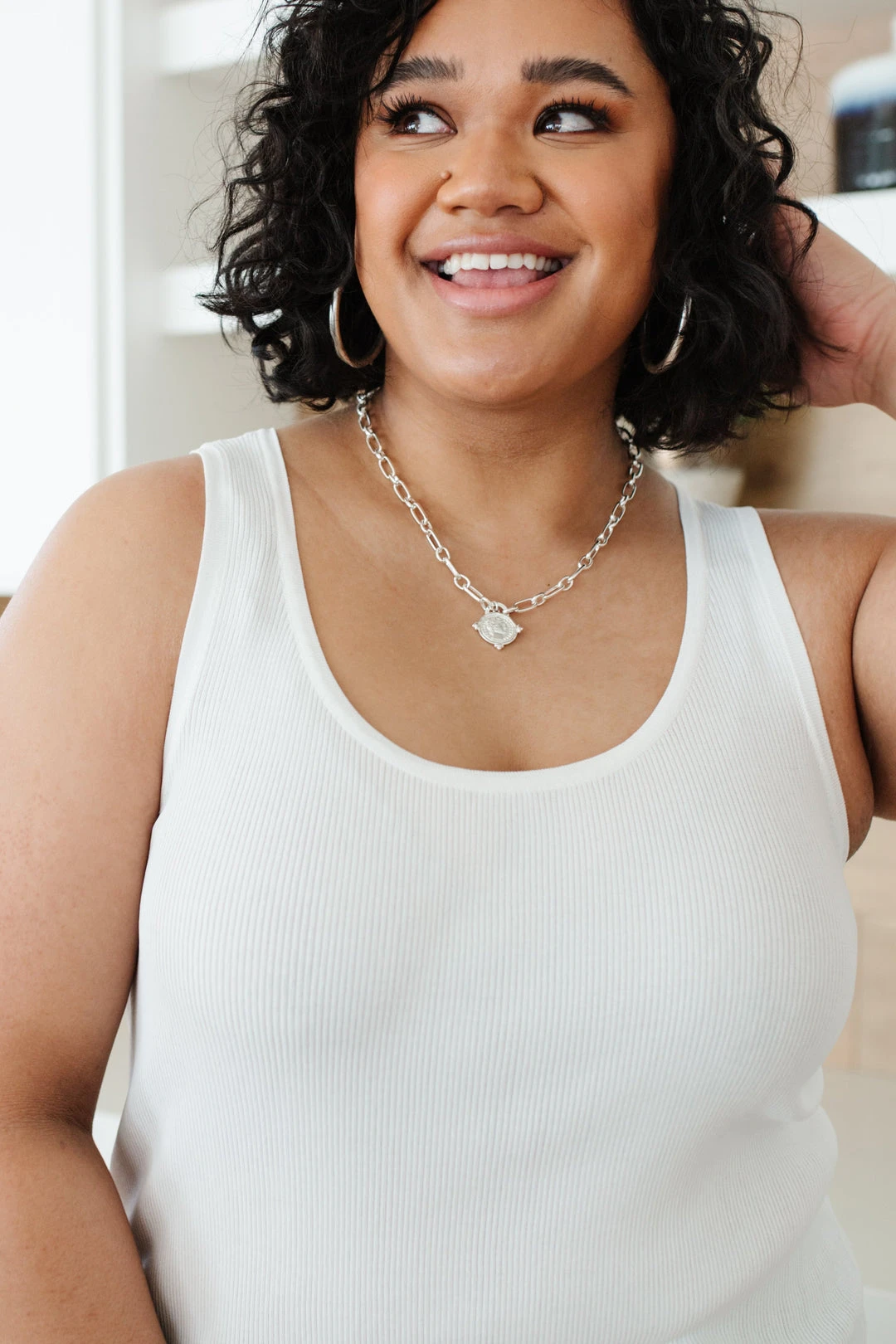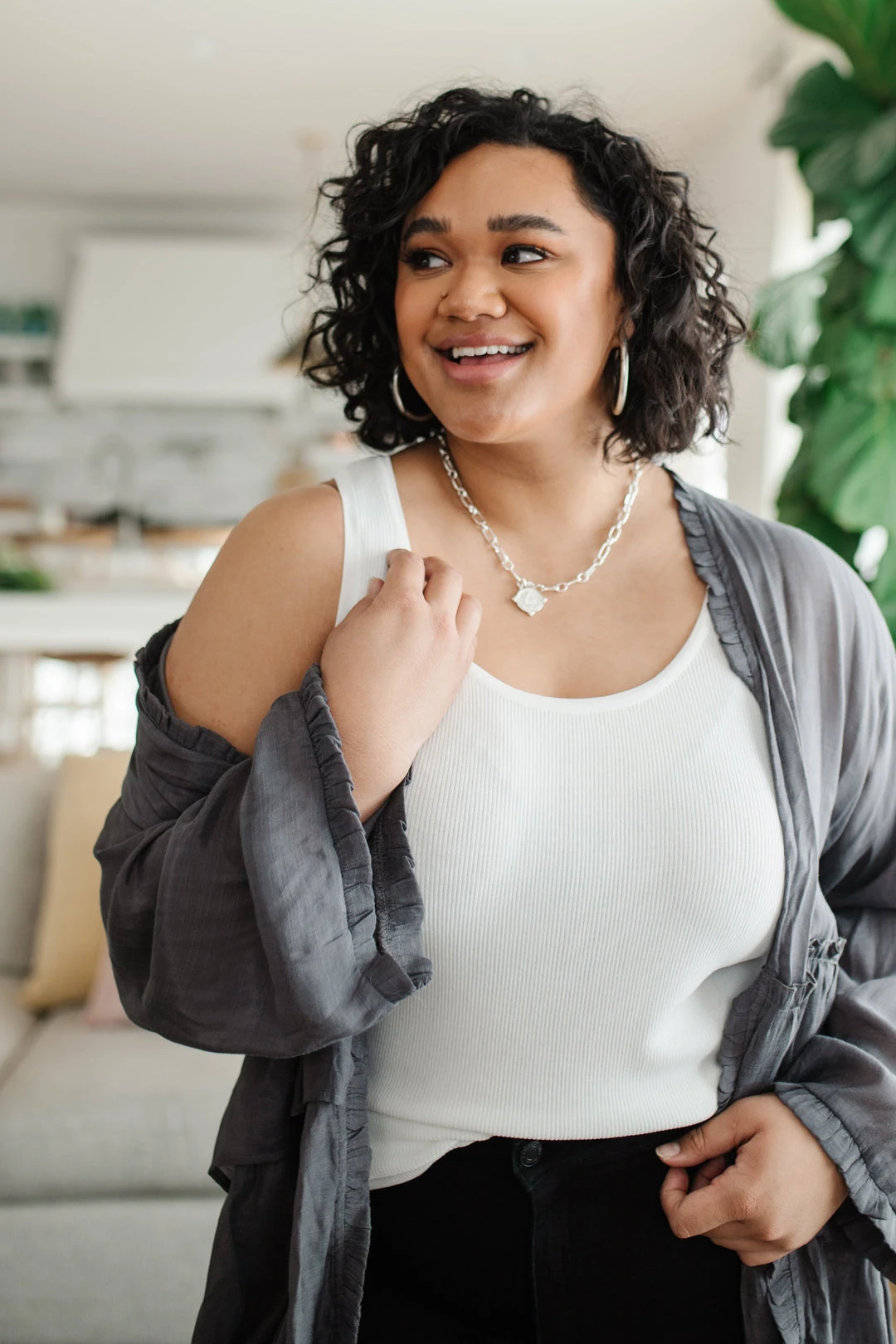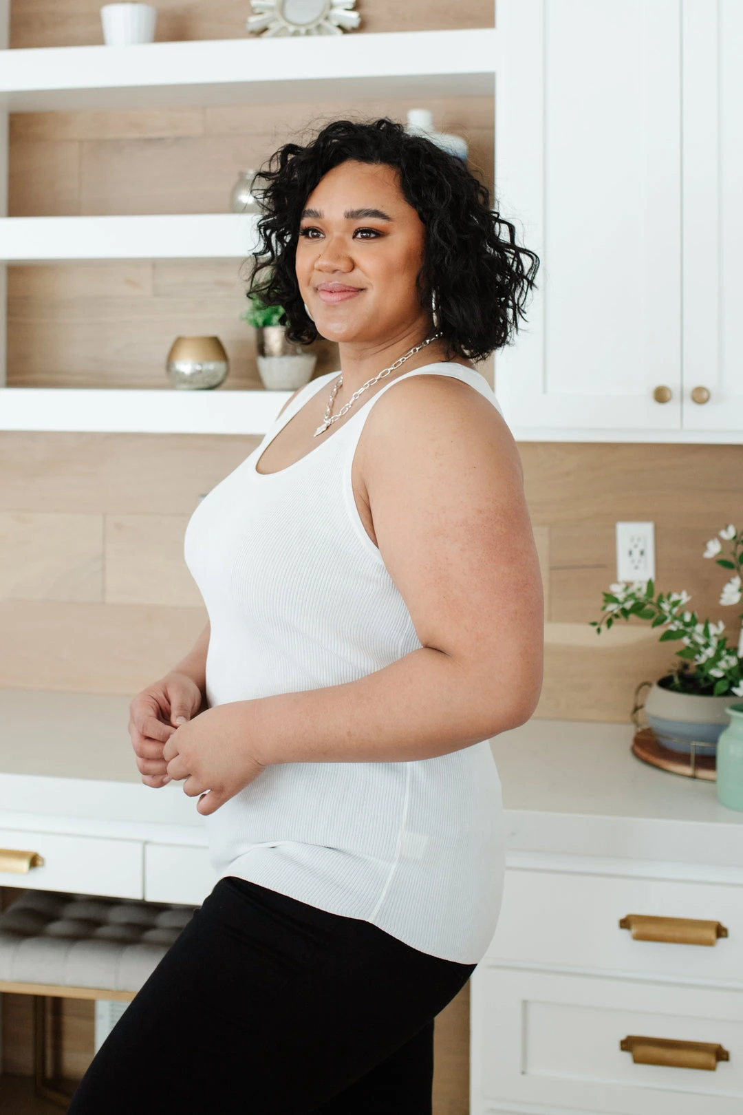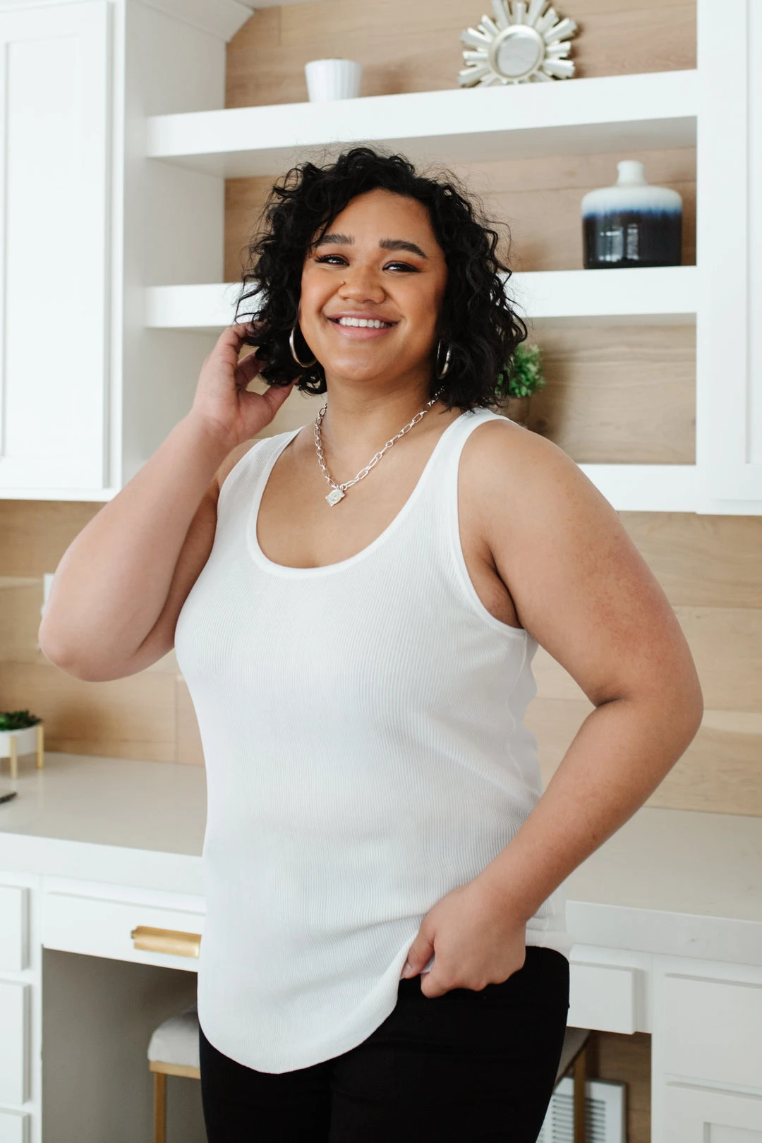 If you like the finer things in life you won’t be settling for anything less than the Take U There Tank. This elevated wardrobe essential is for the fashionista who knows her tools. Start with this top, designed with a perfect fit & scoop neck, then add your statement pieces and select accessories. You’ll find yourself obsessed with the versatility of this exquisite base layer. We love this top styled with blazers and slacks, Paper Bag waistline shorts, skirts, styled with open button up tops, under spaghetti strapped jumpsuits & dresses and more! Even when worn simply with a great pair of denim, slides and a simple bracelet, this top keeps you looking fresh, polished & put together. The engineered knit construction means the ribbed fabric texture through the body and edges are finished seamlessly. Whatever look you have in mind the Take U There Tank is it!